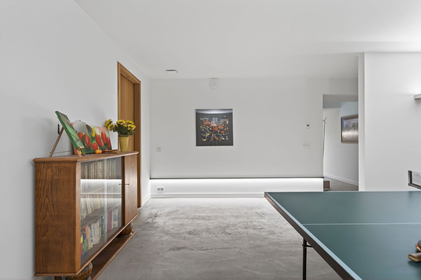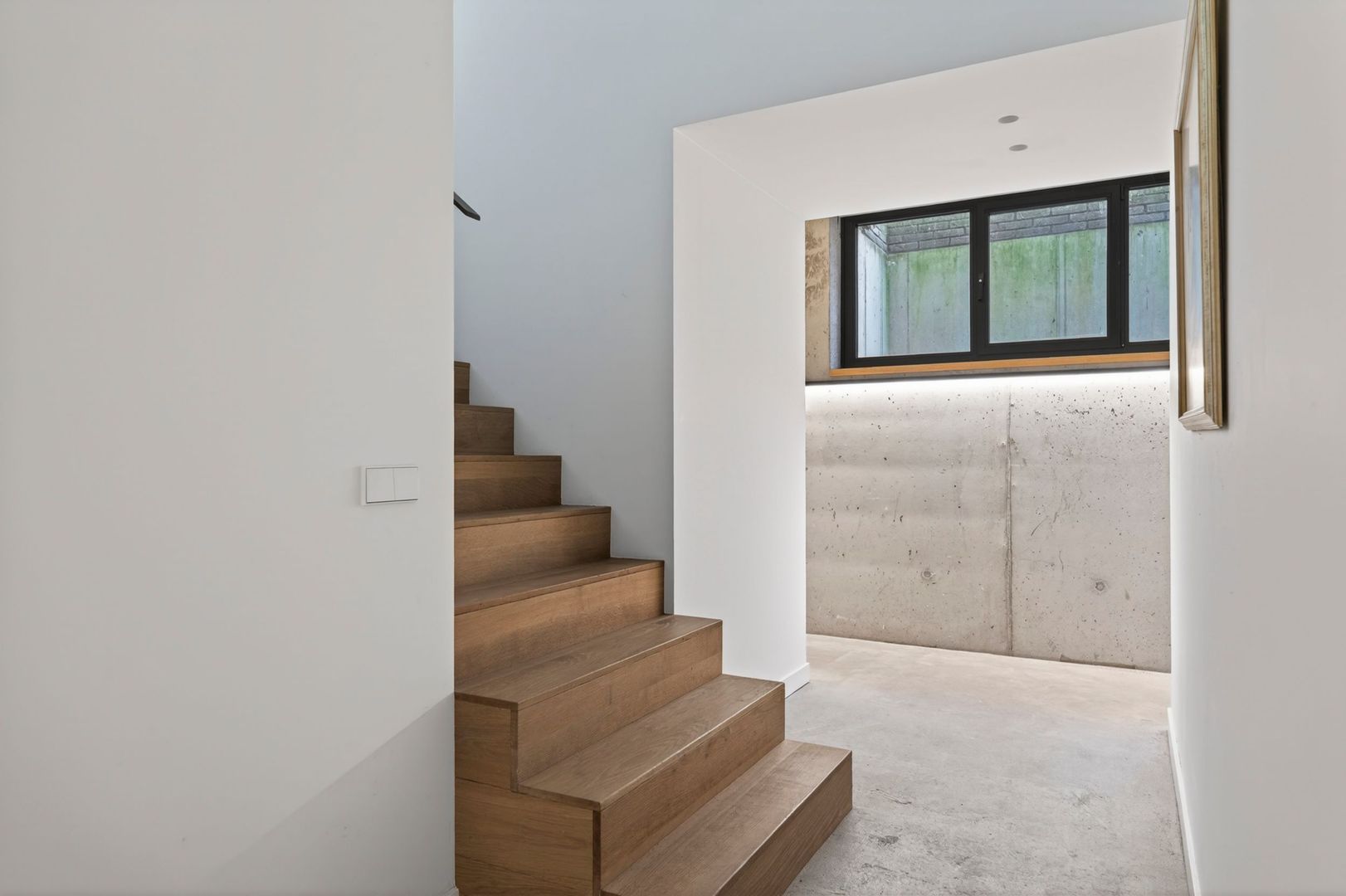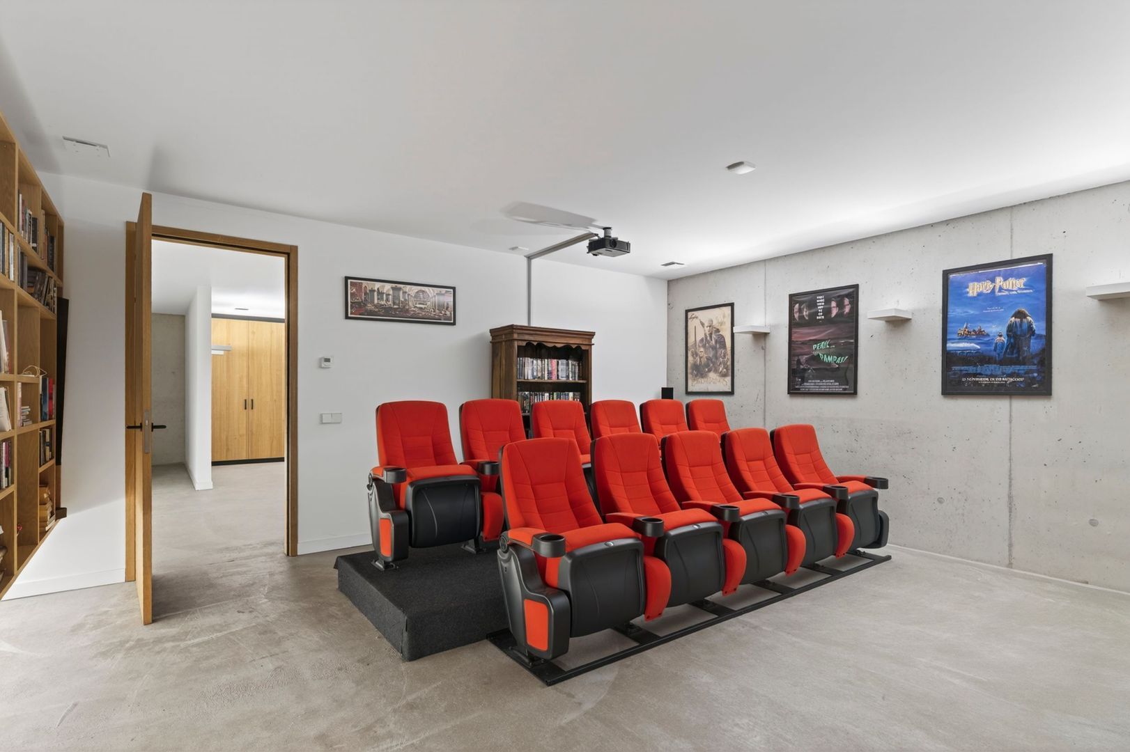Fraai trappenhuis vanuit de entreehal naar souterrain (2.60 m plafondhoogte) met 2 grote multifunctionele ruimtes waarvan één voorzien van inbouwkasten, volledig ingerichte bioscoop met B&O Dolby surround geluidssysteem, inloopkast, technische ruimte t.b.v. warmtepomp en boiler.