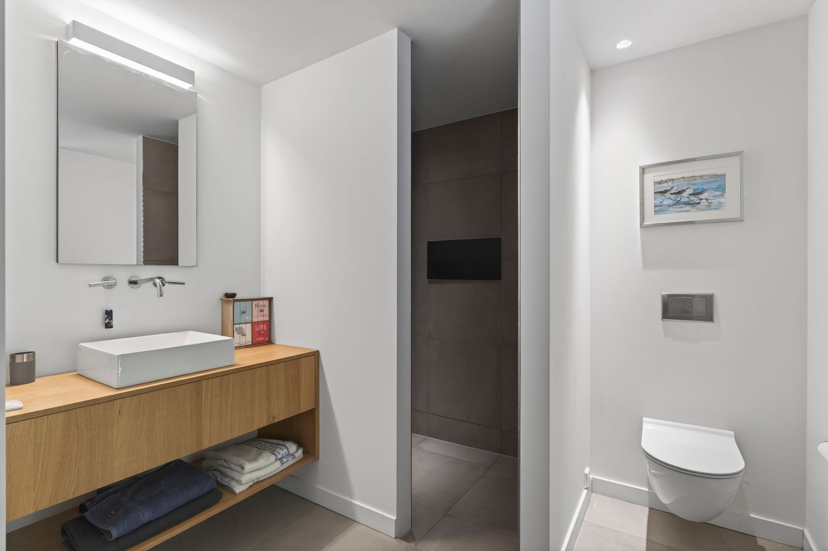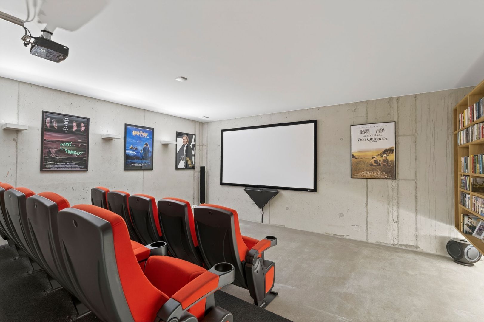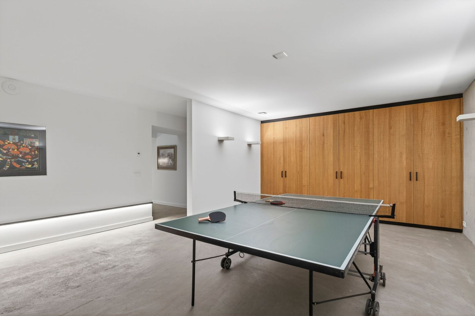 Fraai trappenhuis vanuit de entreehal naar souterrain (2.60 m plafondhoogte) met 2 grote multifunctionele ruimtes waarvan één voorzien van inbouwkasten, volledig ingerichte bioscoop met B&O Dolby surround geluidssysteem, inloopkast, technische ruimte t.b.v. warmtepomp en boiler.