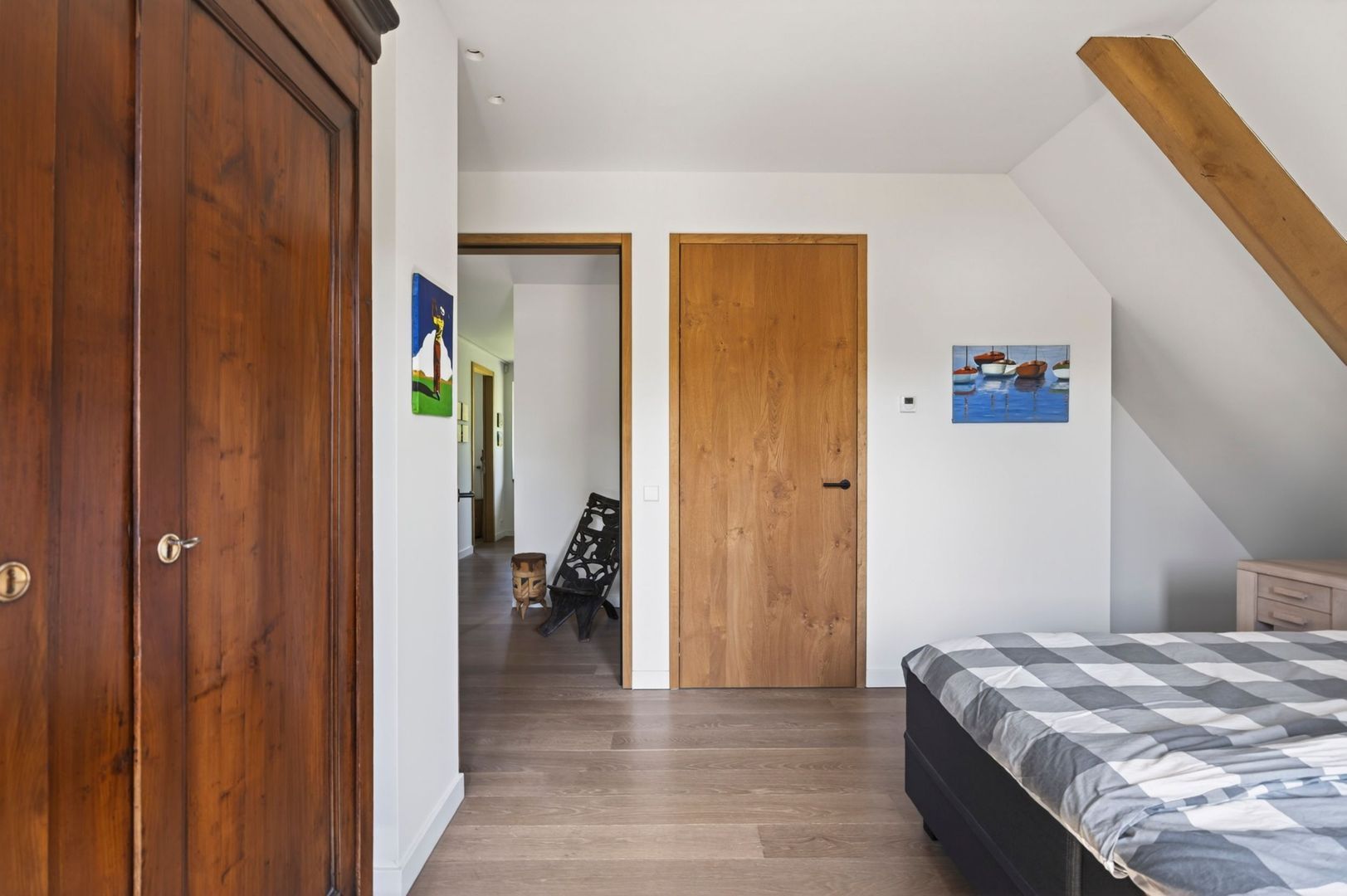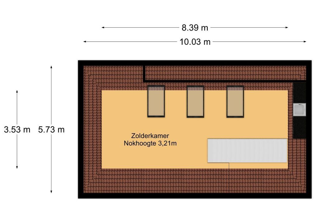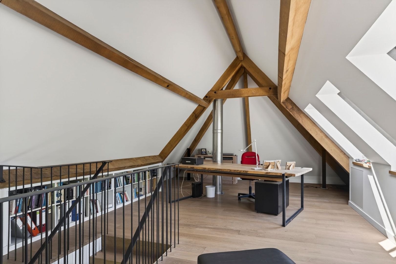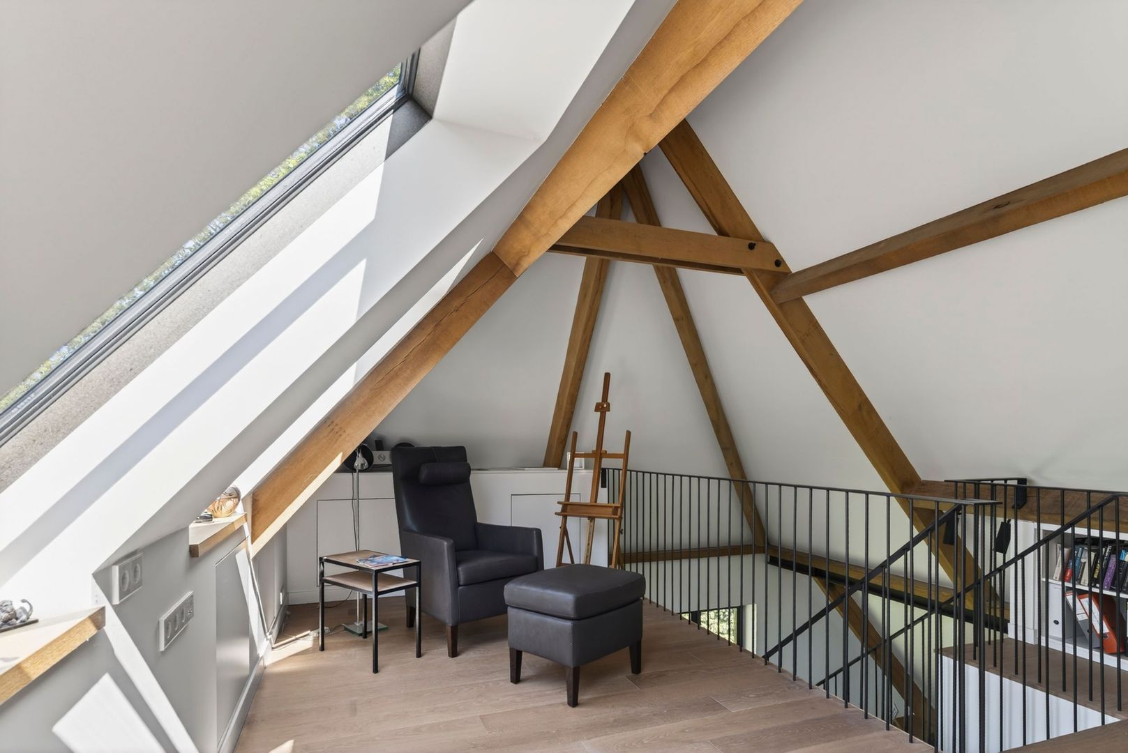 Vaste trap naar 4e slaapkamer c.q. werk-/logeerkamer met vrije hoogte tot in de nok (3.21 m) v.v. 3 Franse dakramen.