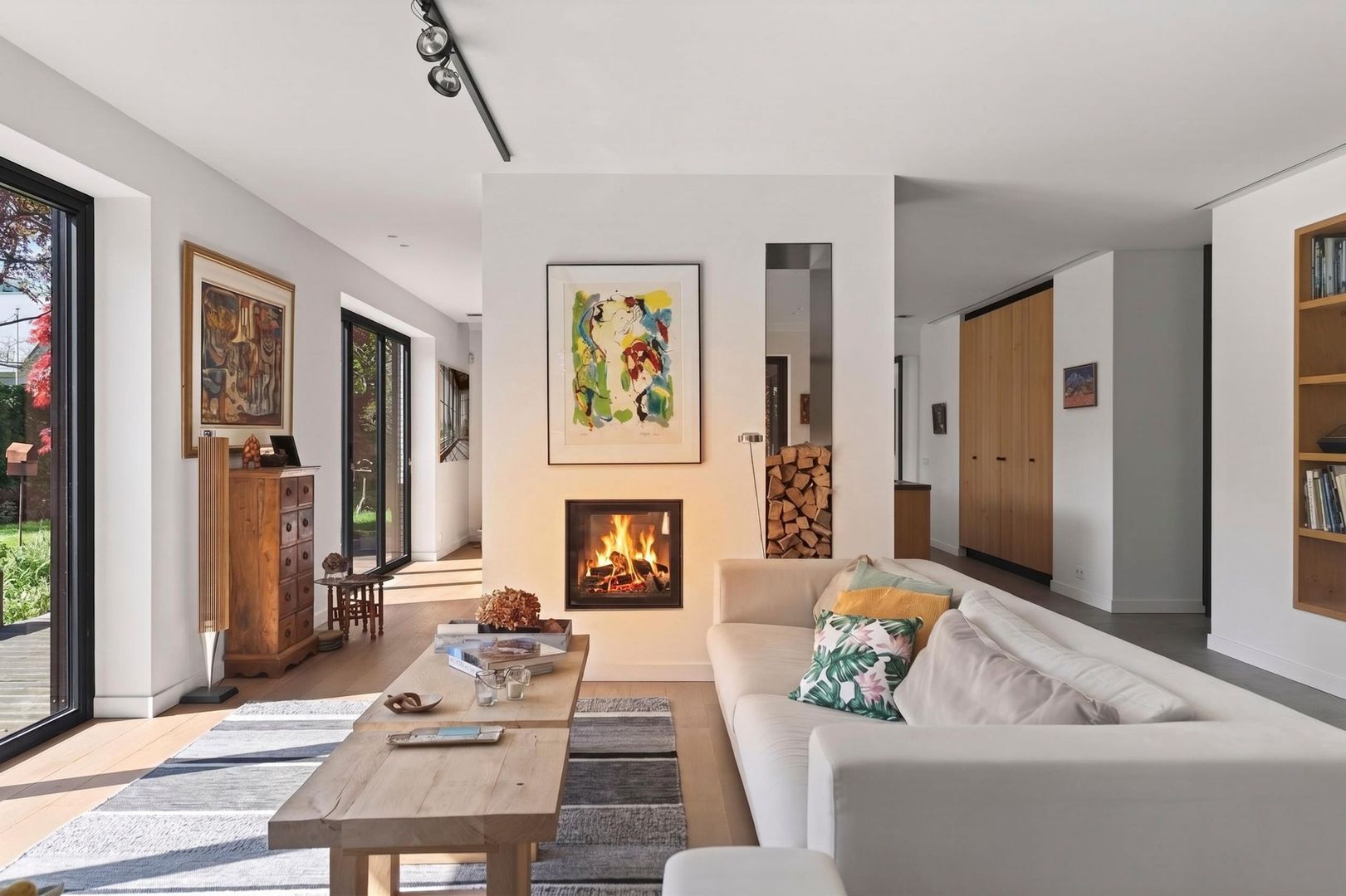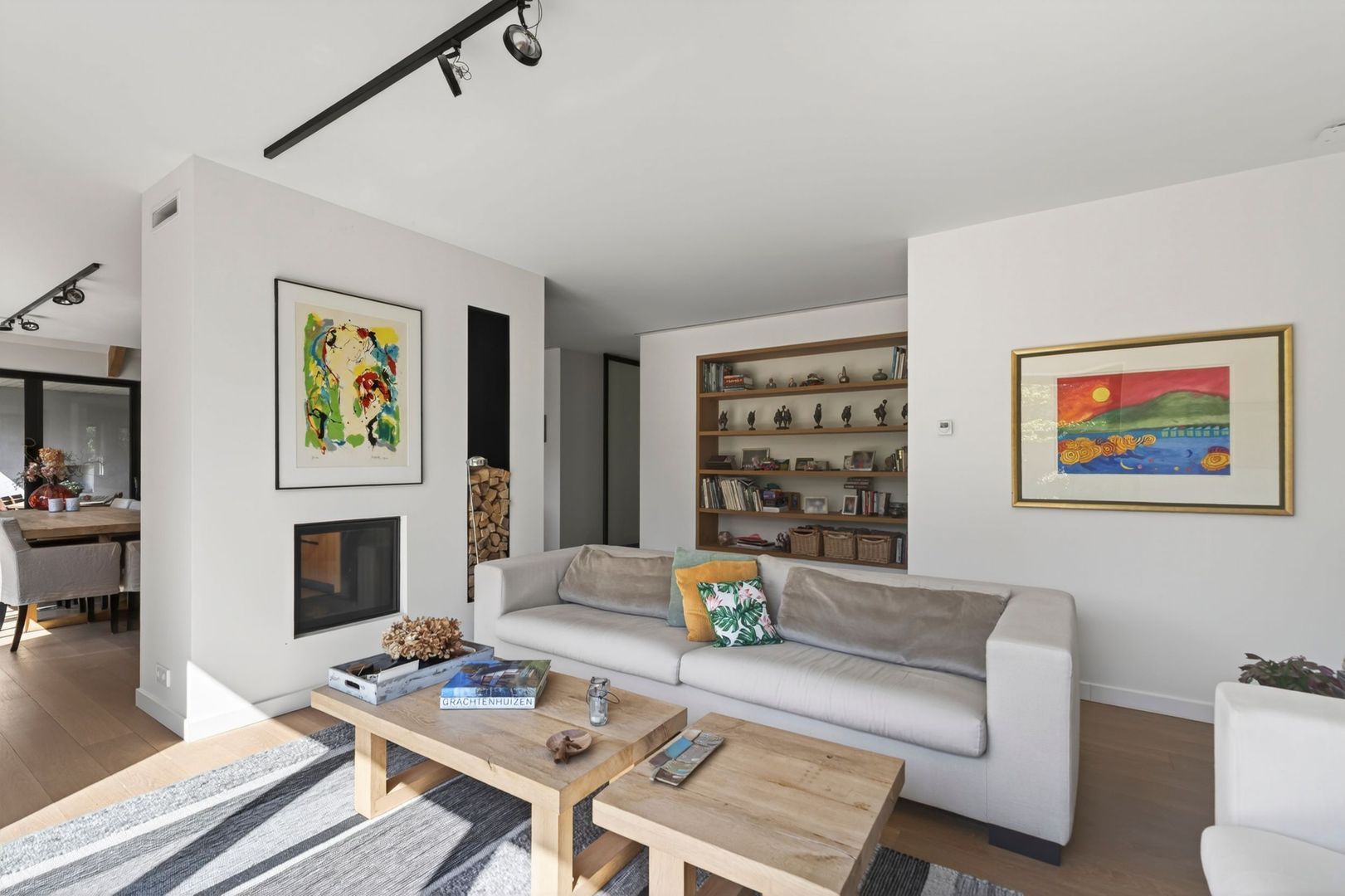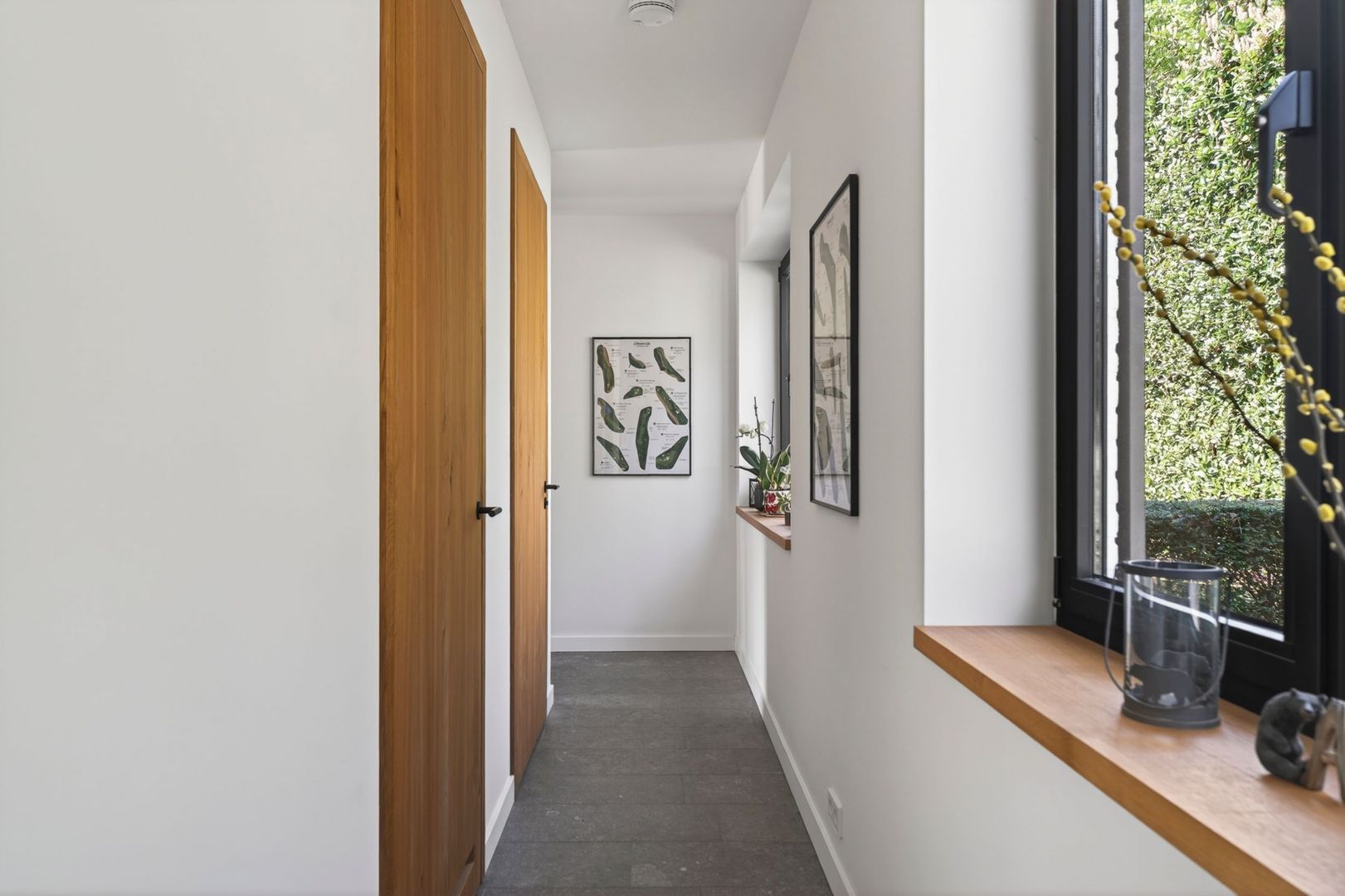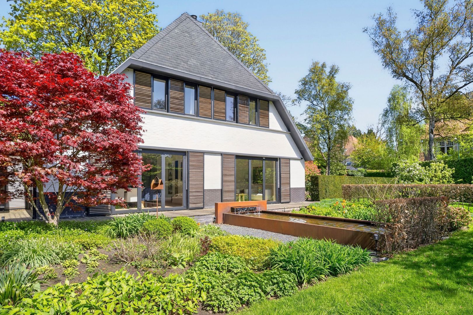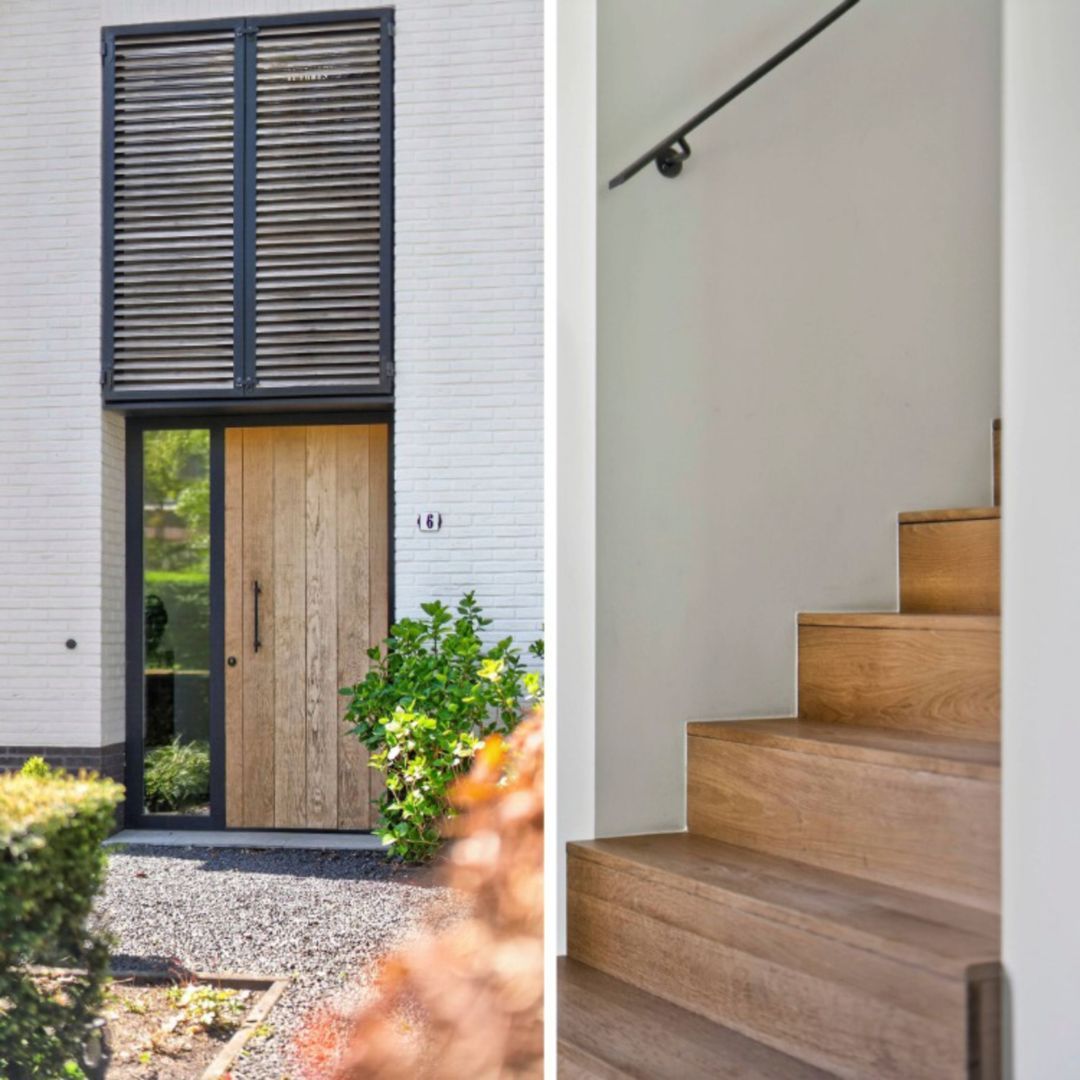 De bijzondere stijl van deze villa wordt mede-bepaald door de wit-gekeimde gevels, donkergrijze stalen (geïsoleerde en gepoedercoate) kozijnen en puien, louvre-luiken en de met vlakke, grijze leipannen gedekte kap. Binnen bepalen met name de natuurstenen en eiken vloeren/deuren, zwart-stalen taatsdeuren en de vlak gestucte wanden en plafonds de fijne sfeer. In samenwerking met de architecten heeft Frans van Hooijdonk Lichtontwerp speciaal voor deze woningen het lichtplan ontworpen. Alle ruimtes zijn uitgevoerd met lage-temperatuur-vloerverwarming, dus comfortabel en energiezuinig!
