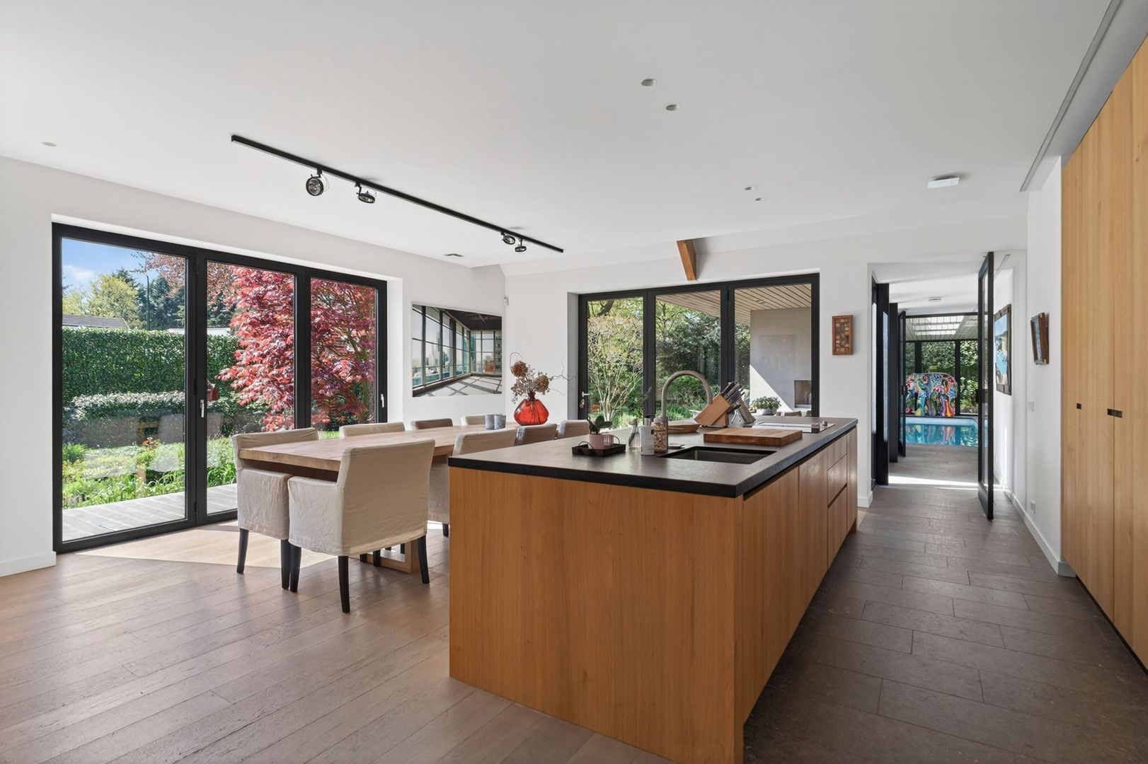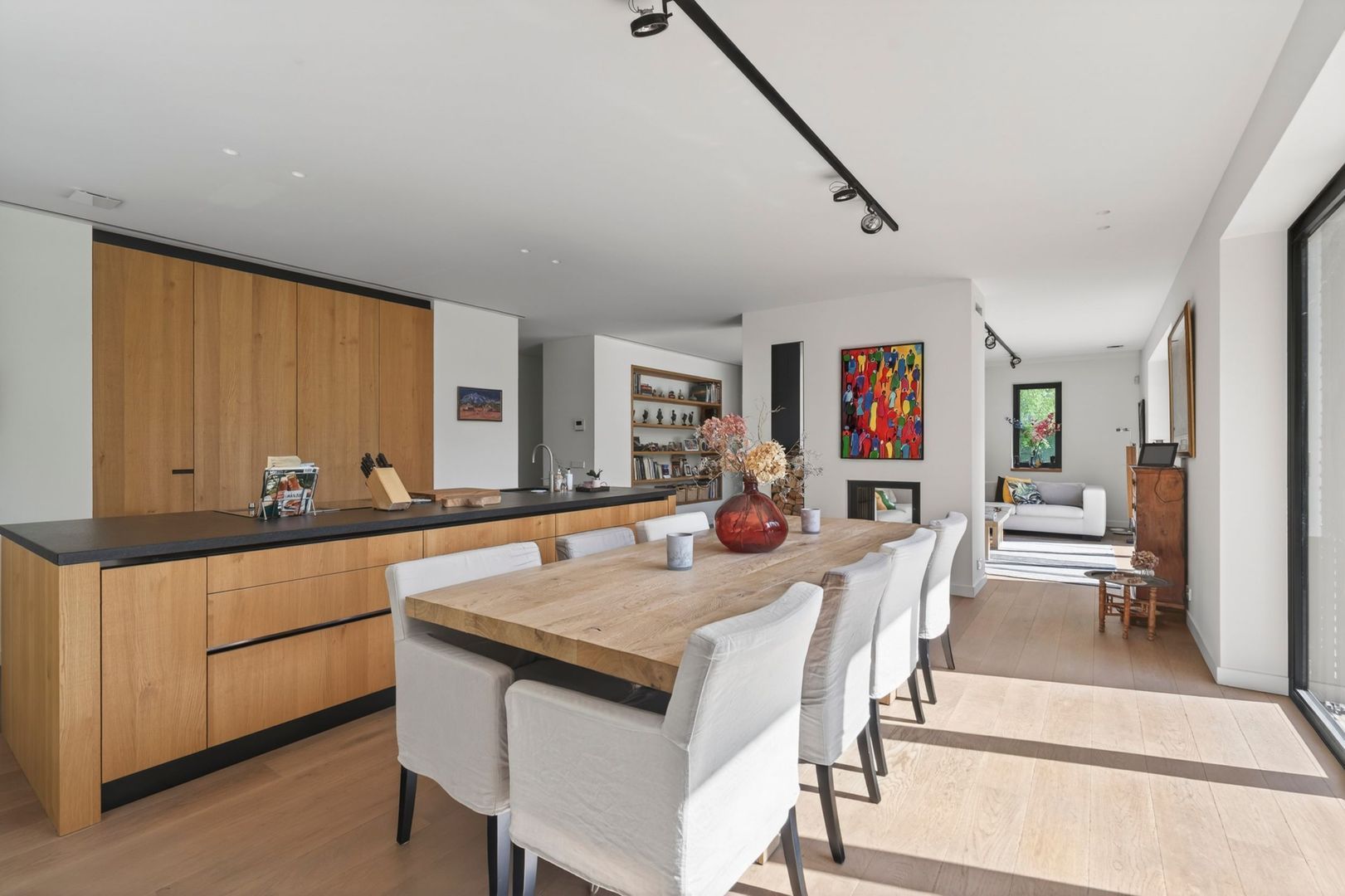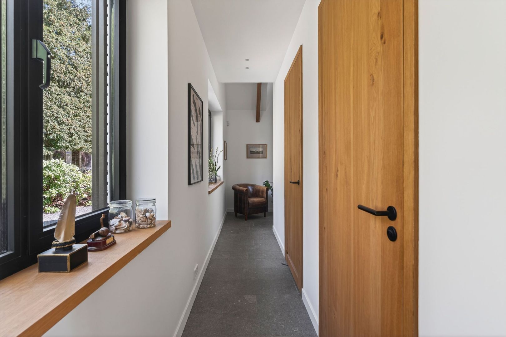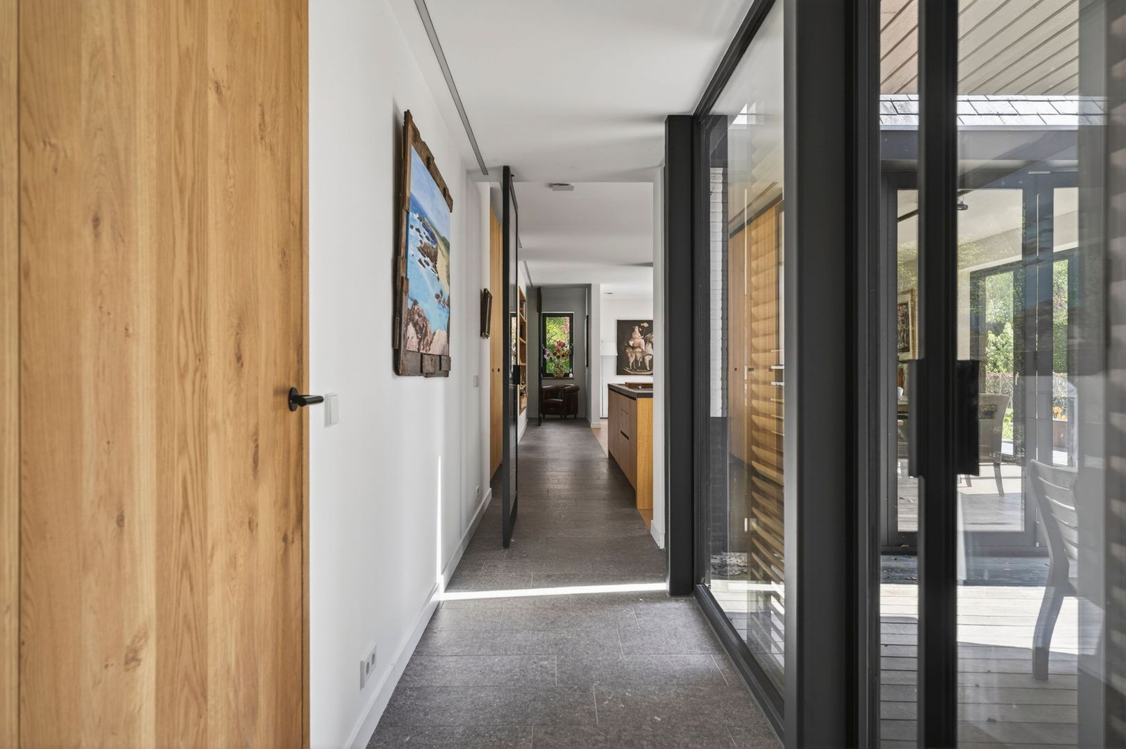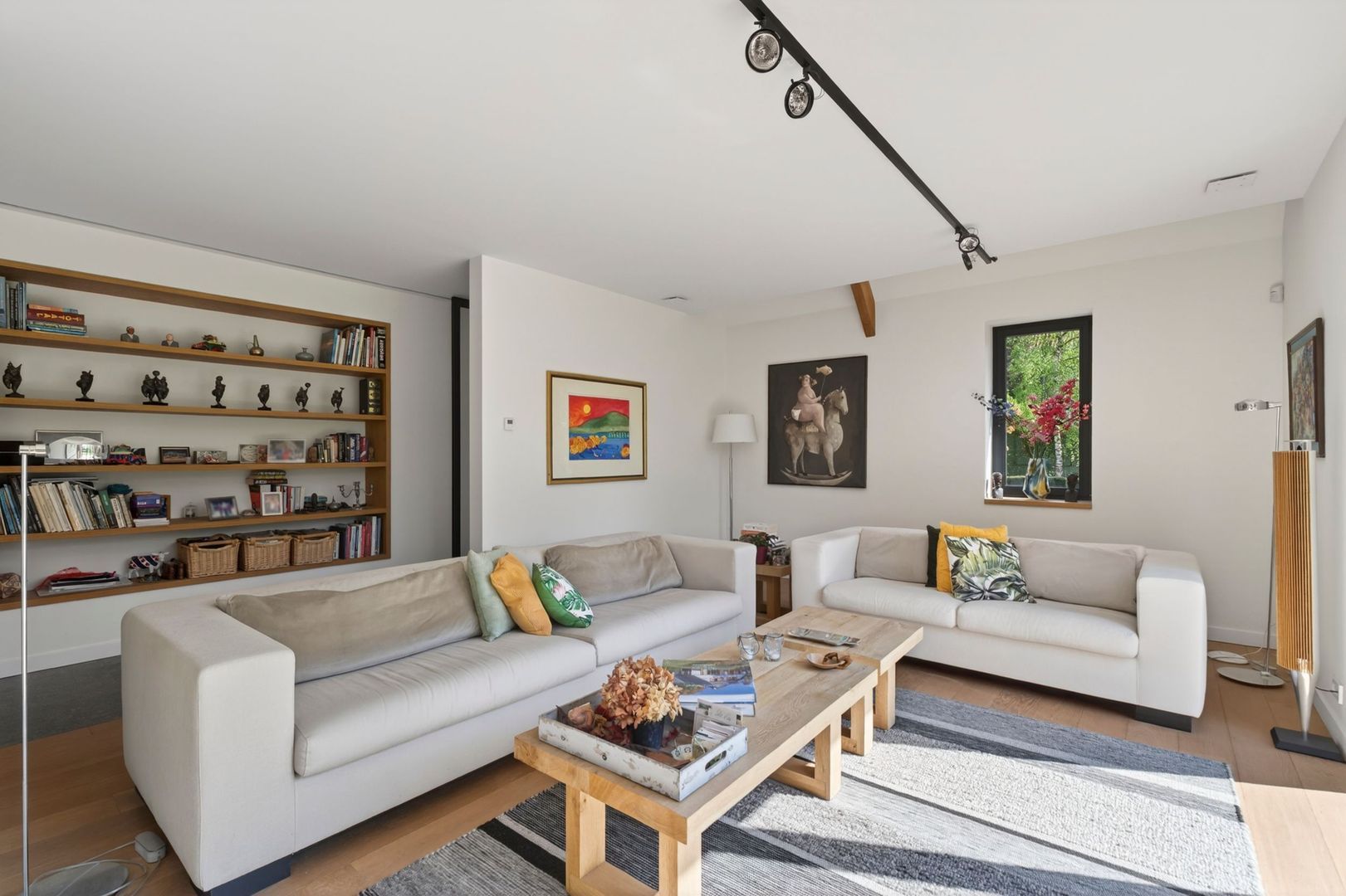 De bijzondere stijl van deze villa wordt mede-bepaald door de wit-gekeimde gevels, donkergrijze stalen (geïsoleerde en gepoedercoate) kozijnen en puien, louvre-luiken en de met vlakke, grijze leipannen gedekte kap. Binnen bepalen met name de natuurstenen en eiken vloeren/deuren, zwart-stalen taatsdeuren en de vlak gestucte wanden en plafonds de fijne sfeer. In samenwerking met de architecten heeft Frans van Hooijdonk Lichtontwerp speciaal voor deze woningen het lichtplan ontworpen. Alle ruimtes zijn uitgevoerd met lage-temperatuur-vloerverwarming, dus comfortabel en energiezuinig!