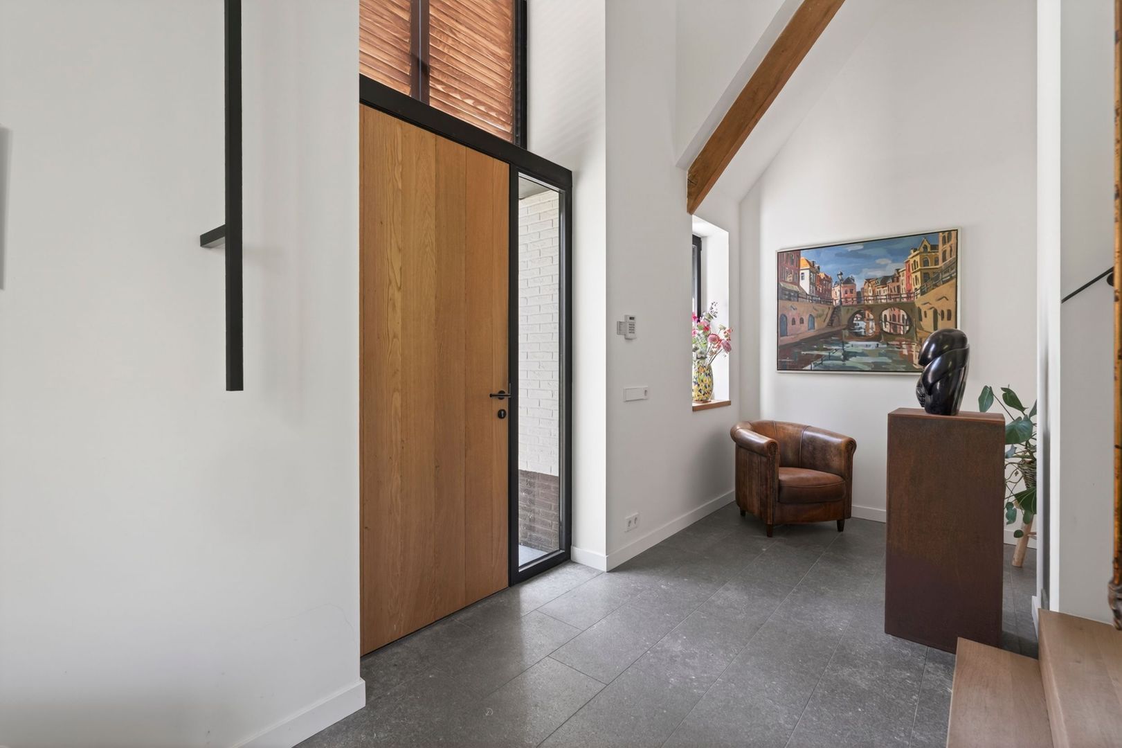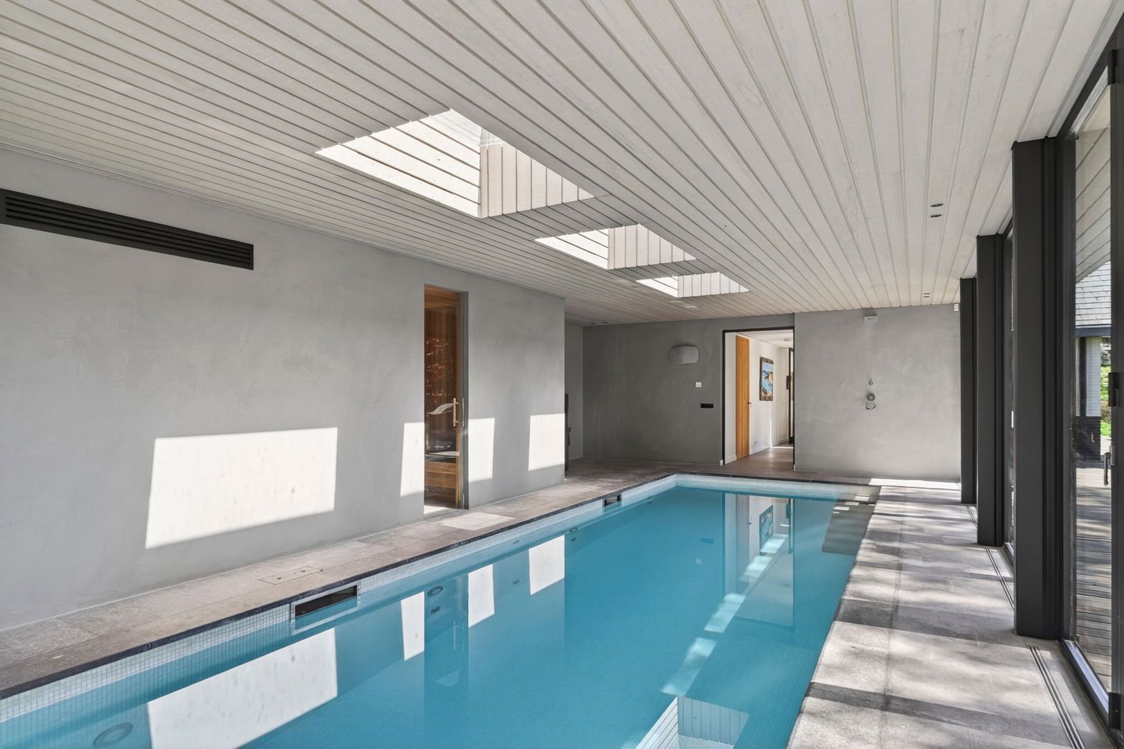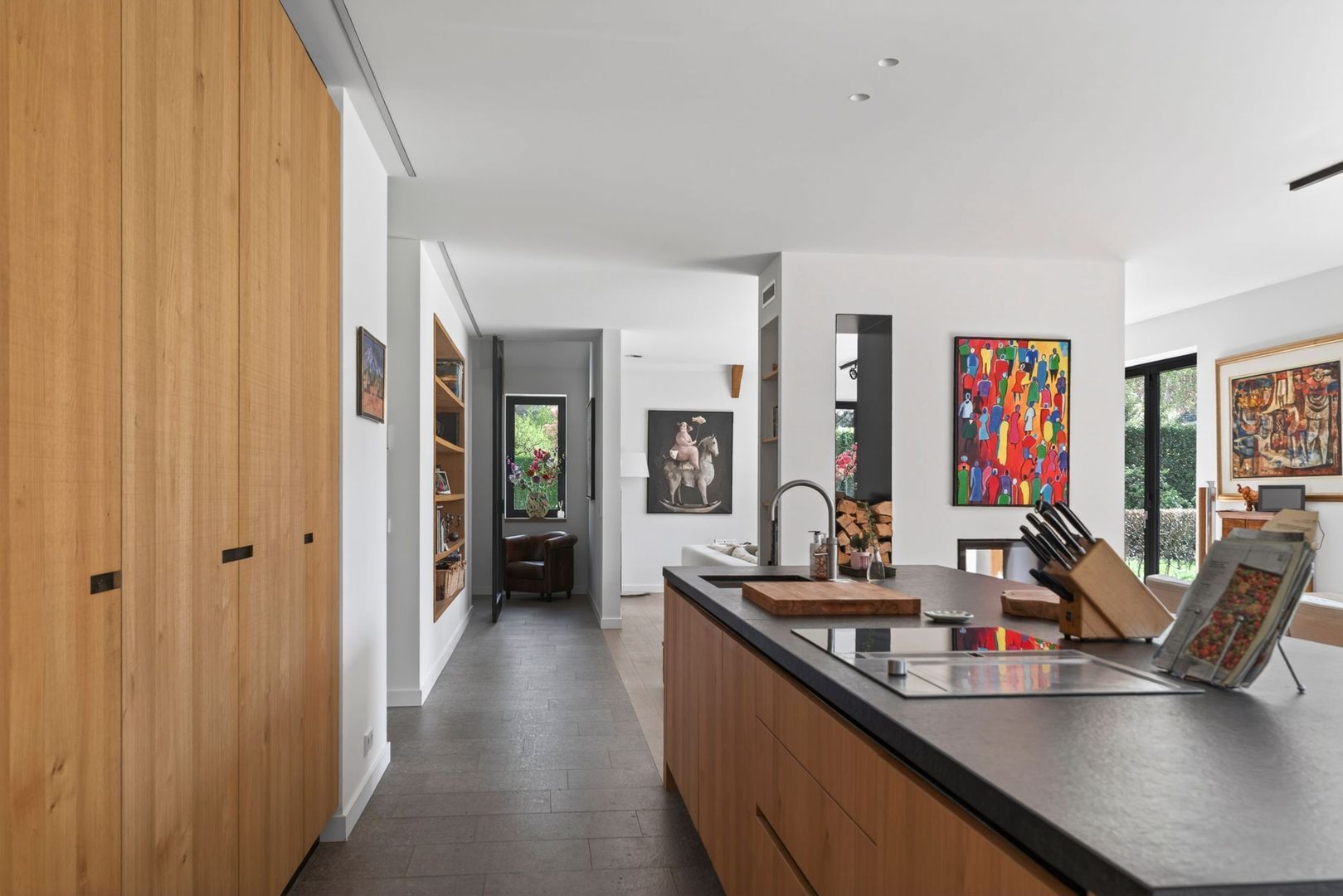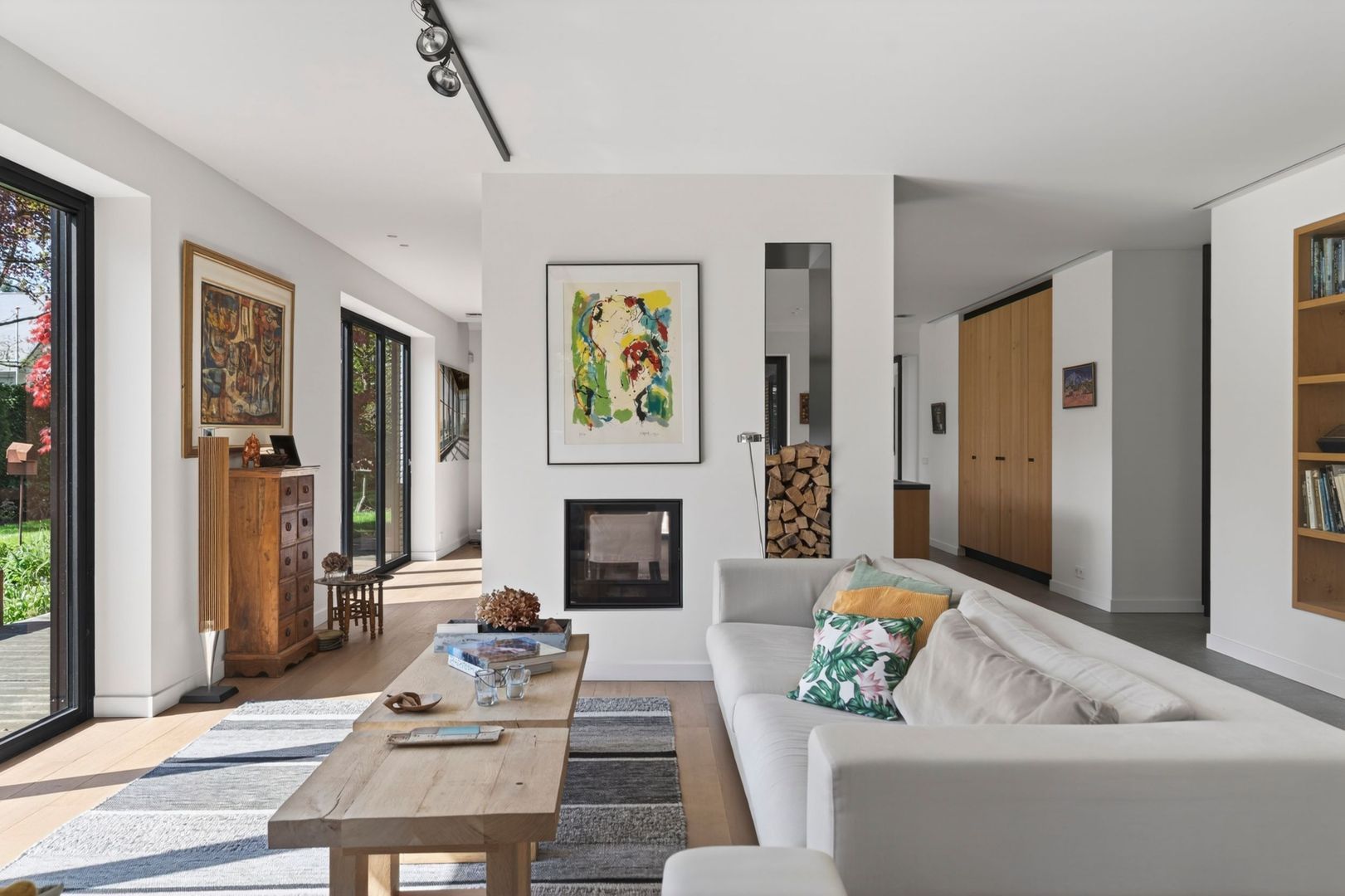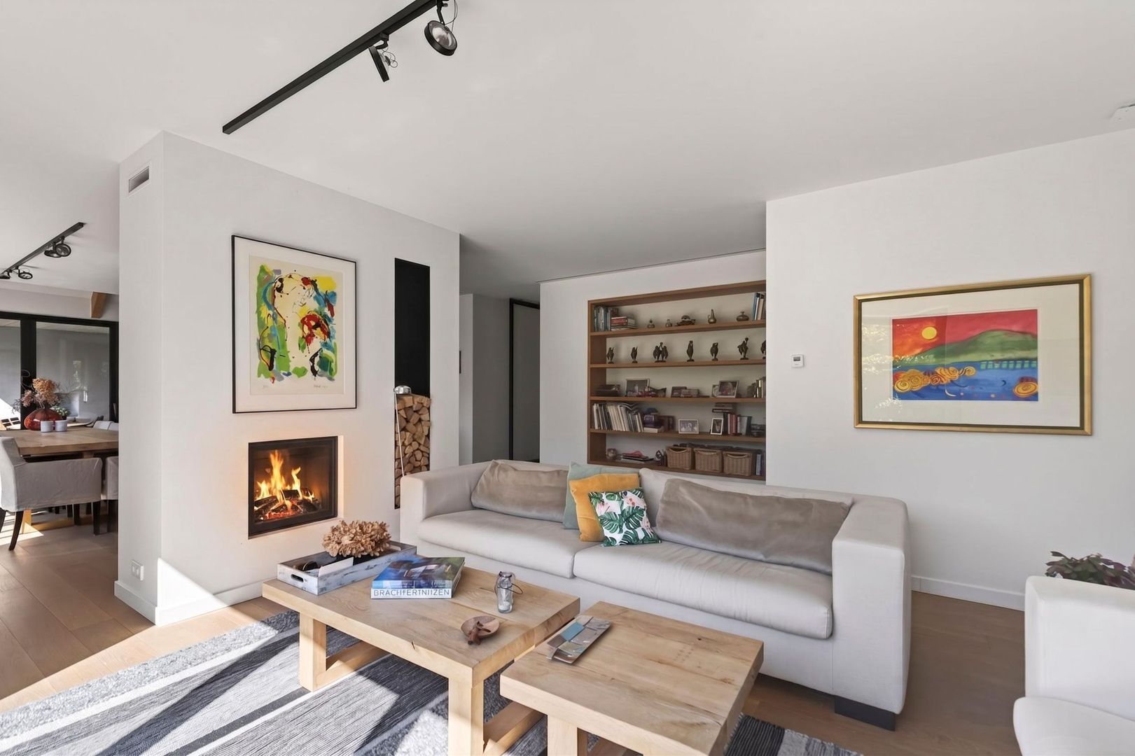 De bijzondere stijl van deze villa wordt mede-bepaald door de wit-gekeimde gevels, donkergrijze stalen (geïsoleerde en gepoedercoate) kozijnen en puien, louvre-luiken en de met vlakke, grijze leipannen gedekte kap. Binnen bepalen met name de natuurstenen en eiken vloeren/deuren, zwart-stalen taatsdeuren en de vlak gestucte wanden en plafonds de fijne sfeer. In samenwerking met de architecten heeft Frans van Hooijdonk Lichtontwerp speciaal voor deze woningen het lichtplan ontworpen. Alle ruimtes zijn uitgevoerd met lage-temperatuur-vloerverwarming, dus comfortabel en energiezuinig!