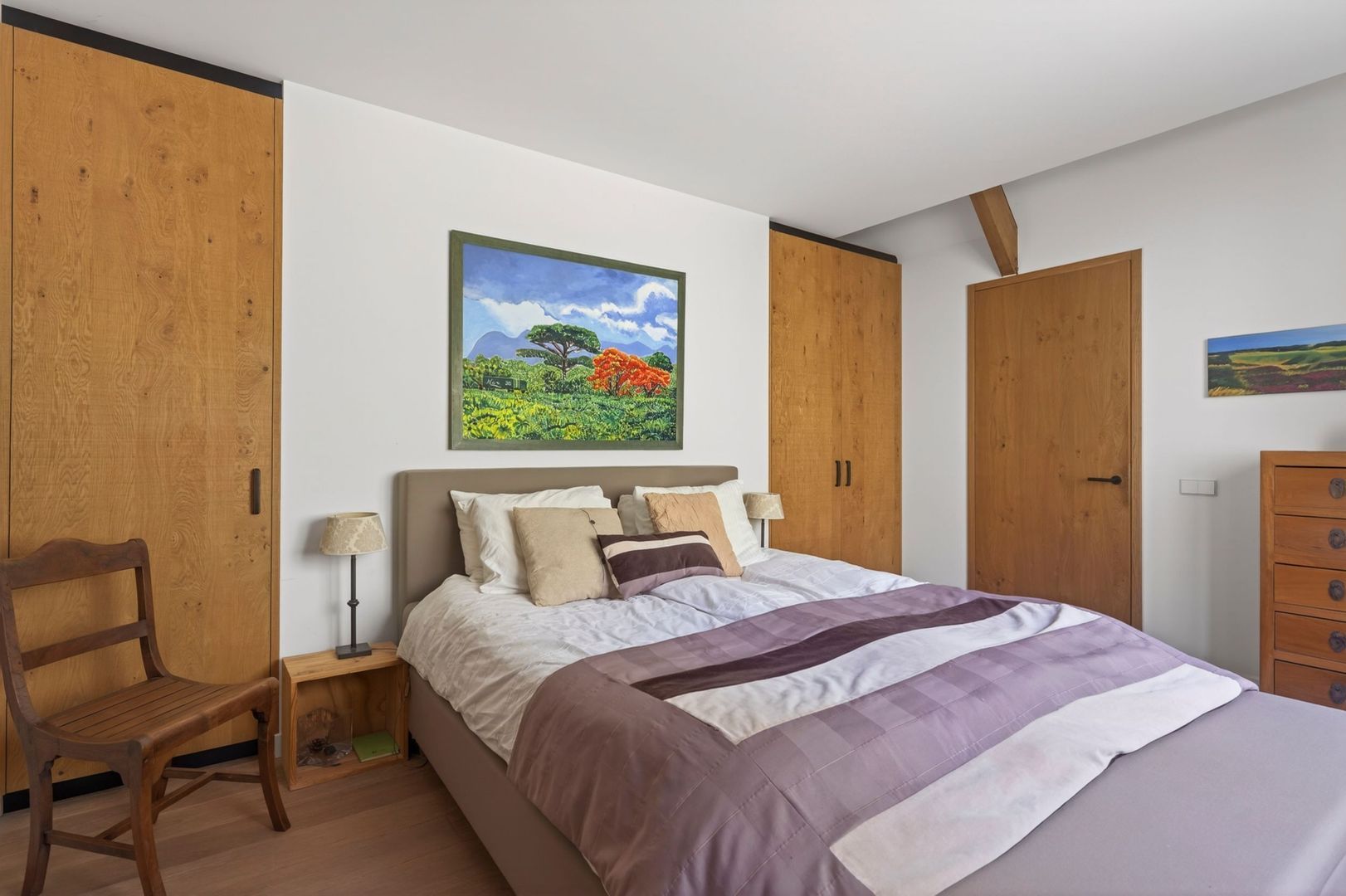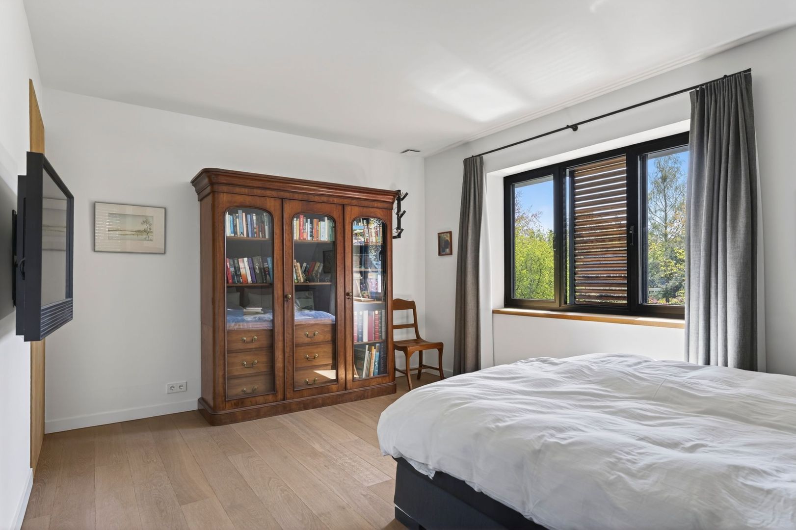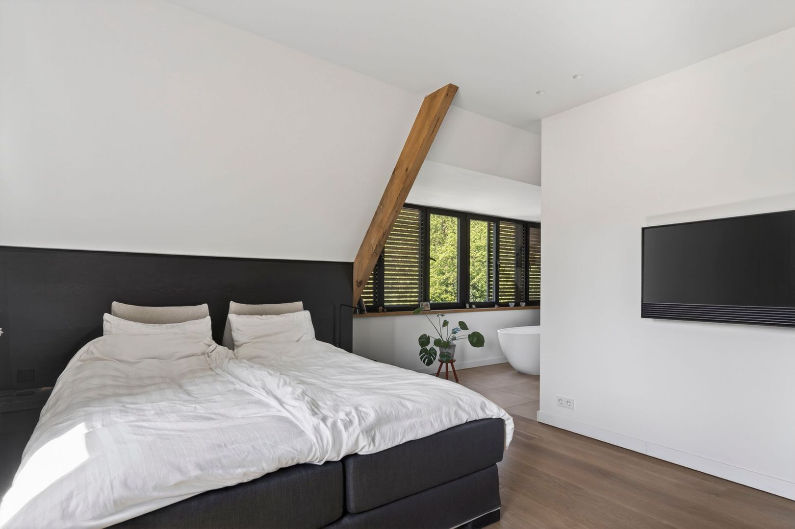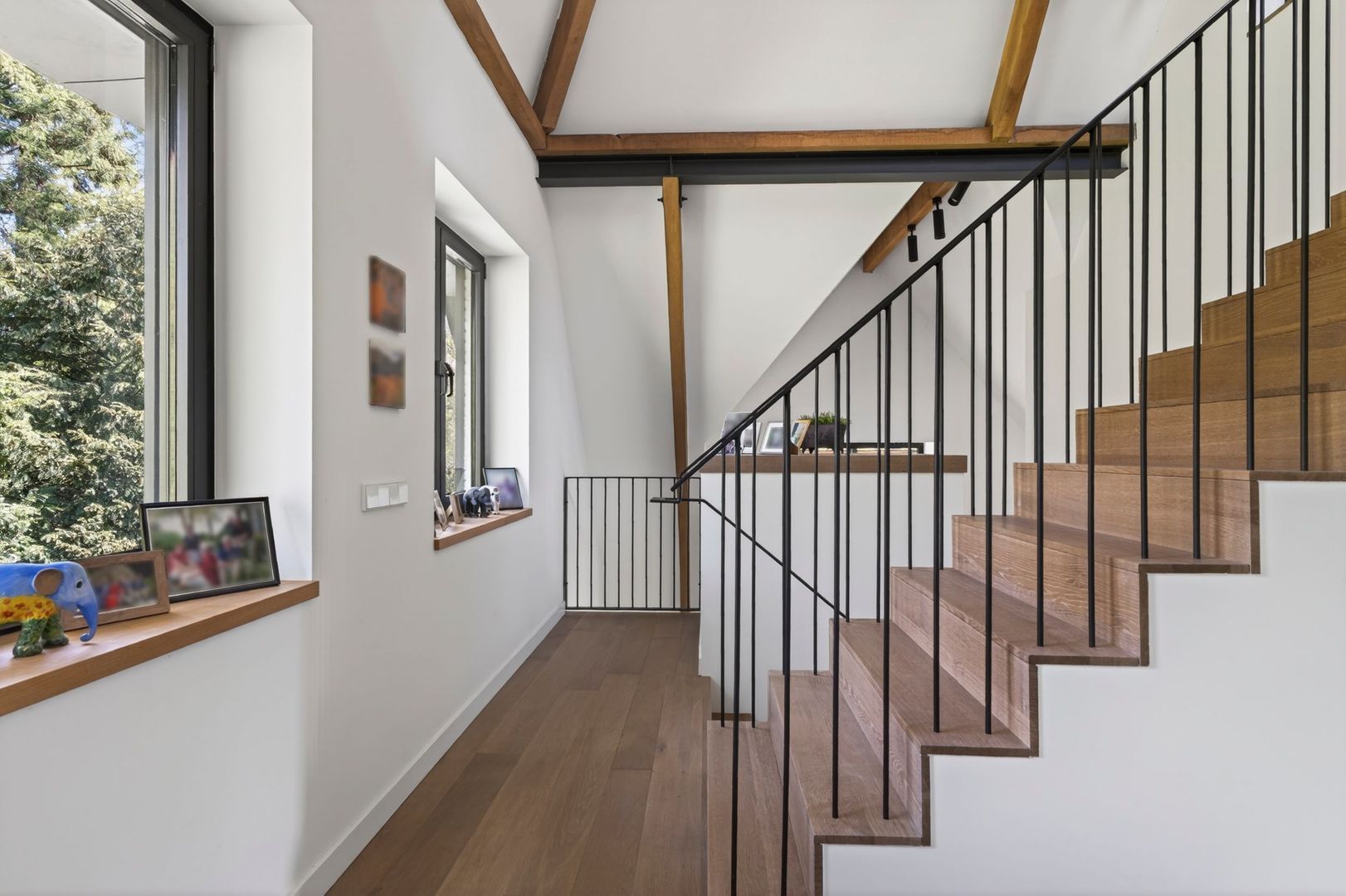 Fraai trappenhuis v.v. met eiken belegde bordestrap naar verdieping met ruime overloop, master bedroom met inloopkast, ligbad en badkamer v.v. dubbel wastafelmeubel, wandcloset en douche met vlakke inloop, 3e slaapkamer met badkamer v.v. wandcloset, wastafelmeubel en inloopdouche, waskamer met ruimte voor wasmachine en droger met wastafel.
