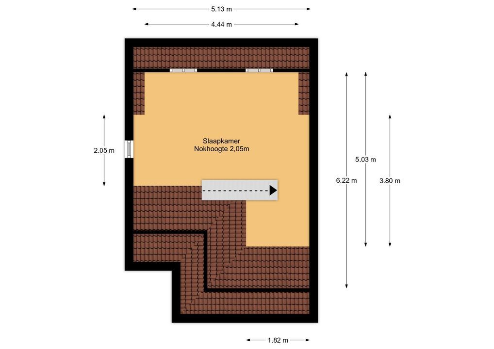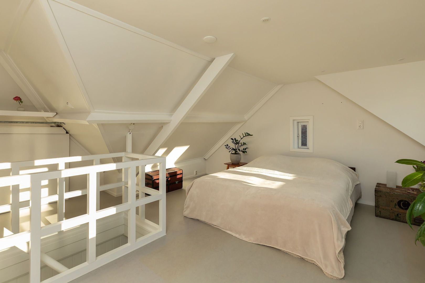 Grote en lichte zolderverdieping met dakkapel (2019), ingericht als 3e slaapkamer. Voorzien van bergruimte, vaste kledingkast en rolluiken.