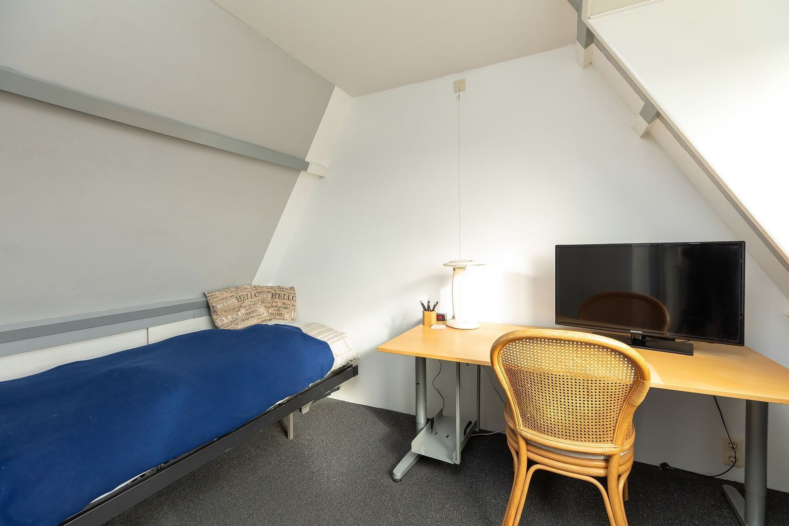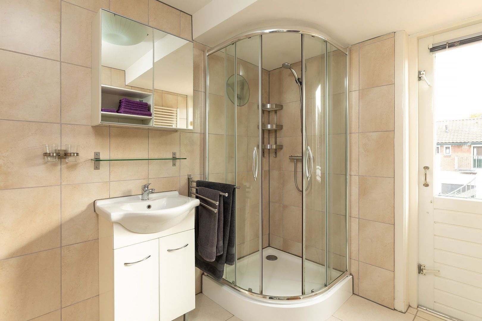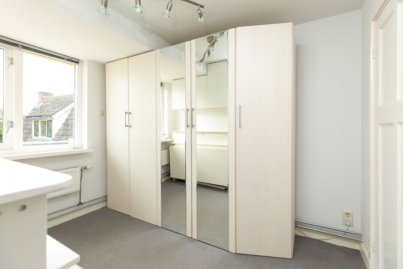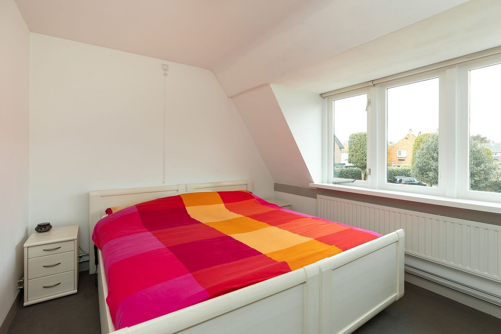 Overloop, royale slaapkamer aan de voorzijde met dakkapel en vaste kast, 2e slaapkamer met vaste kast, verzorgde badkamer (2011) met douche, 2e toilet, wastafelmeubel en design-radiator. Toegang tot een zonnig dakterras (zuiden) met tevens trapopgang vanuit de tuin. Badkamer en slaapkamer zijn voorzien van inbraak- en zonwerende elektrische rolluiken.
