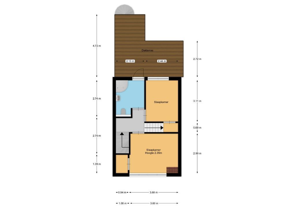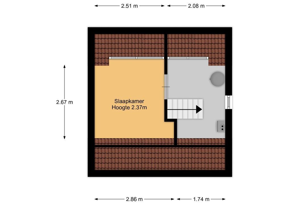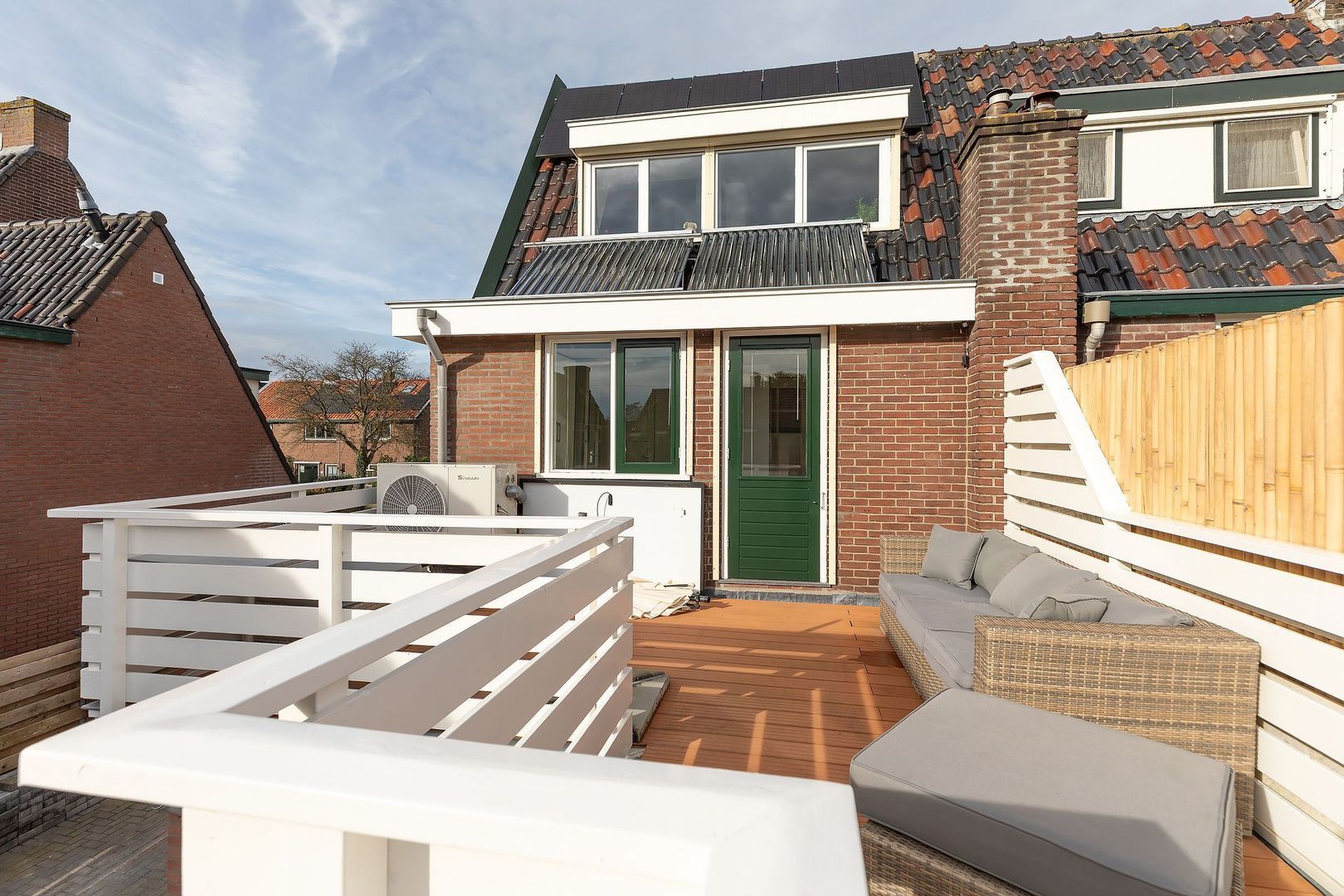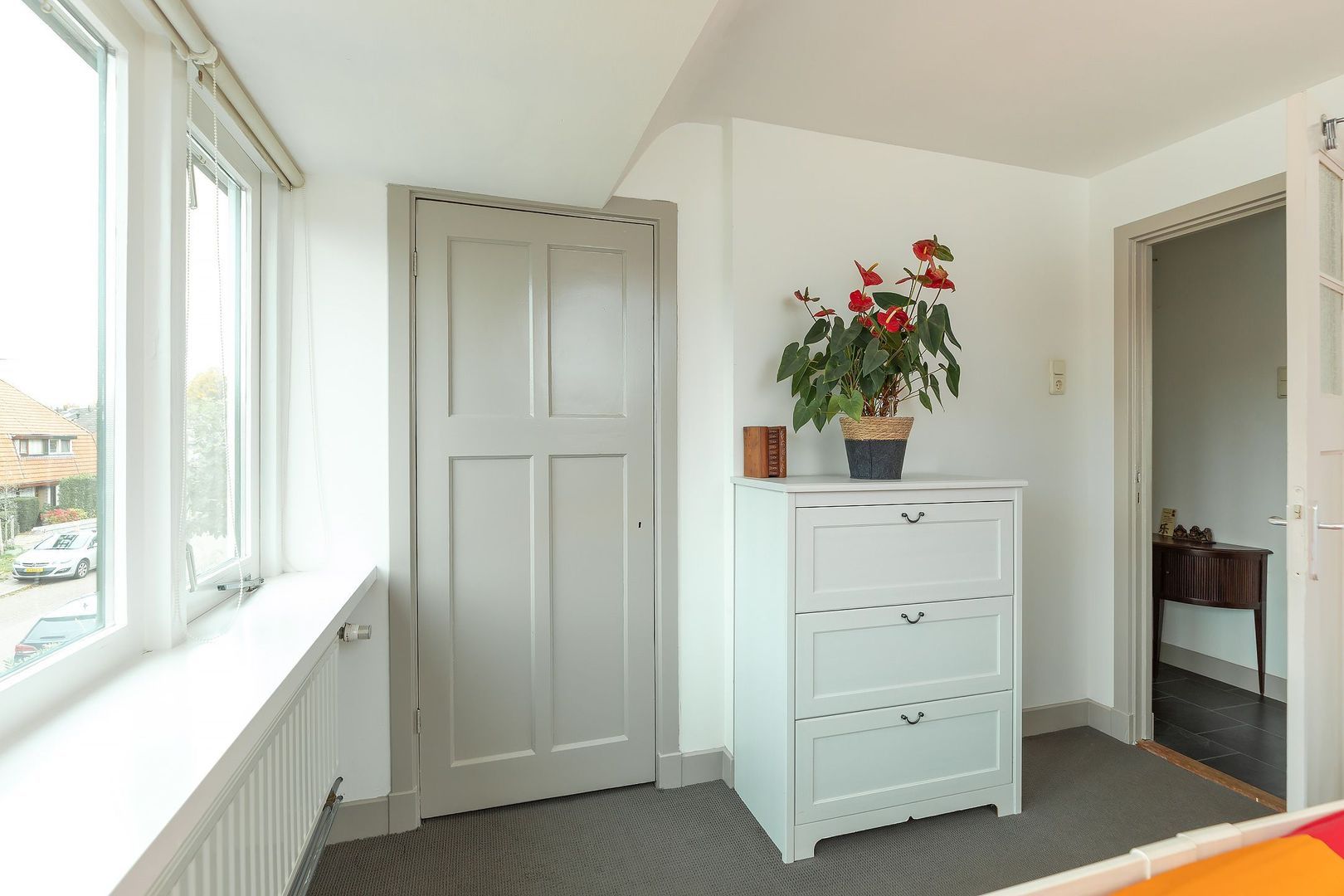 Overloop, royale slaapkamer aan de voorzijde met dakkapel en vaste kast, 2e slaapkamer met vaste kast, verzorgde badkamer (2011) met douche, 2e toilet, wastafelmeubel en design-radiator. Toegang tot een zonnig dakterras (zuiden) met tevens trapopgang vanuit de tuin. Badkamer en slaapkamer zijn voorzien van inbraak- en zonwerende elektrische rolluiken.