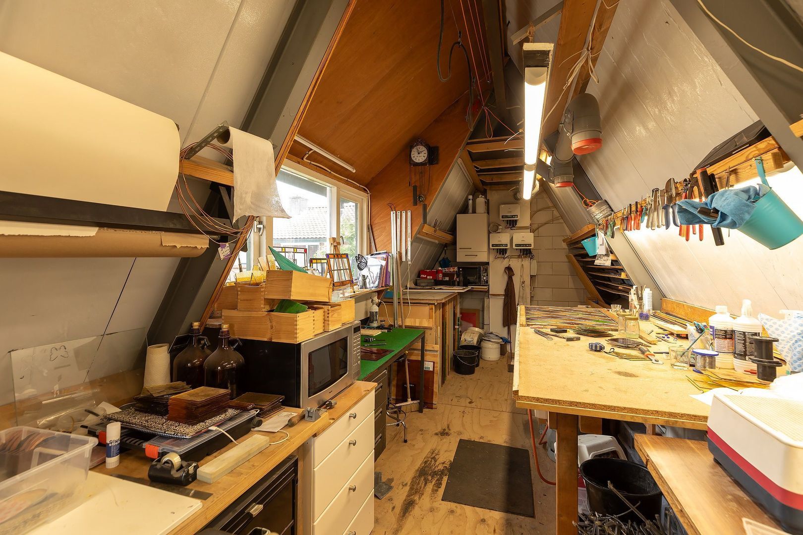 De tuin is verzorgd aangelegd met een achterom, voortuin, zijtuin en een zonnige, verrassend diepe achtertuin met openslaande deuren vanuit de woonkamer. Het vrijstaand bijgebouw is volledig geïsoleerd en beschikt over alle voorzieningen. Met drie volwaardige etages biedt deze volop mogelijkheden als gastenverblijf, atelier of kantoor.