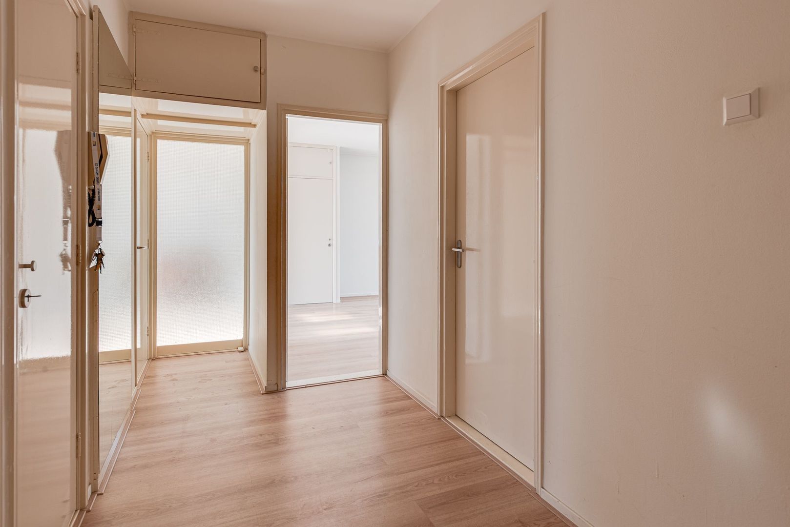 Ruime entree, bergkasten, meterkast, toilet met wastafel, slaapkamer met vaste kasten, eigen balkon en badkamer v.v. ligbad en douche, 2e ruime slaapkamer, royale en lichte woonkamer met vaste kasten, open keuken voorzien van een Bosch vaatwasser, een Smeg oven, een 4-pits gasfornuis, afzuigkap en spoelbak, openslaande deuren naar een zonnig balkon met buitenkast,.