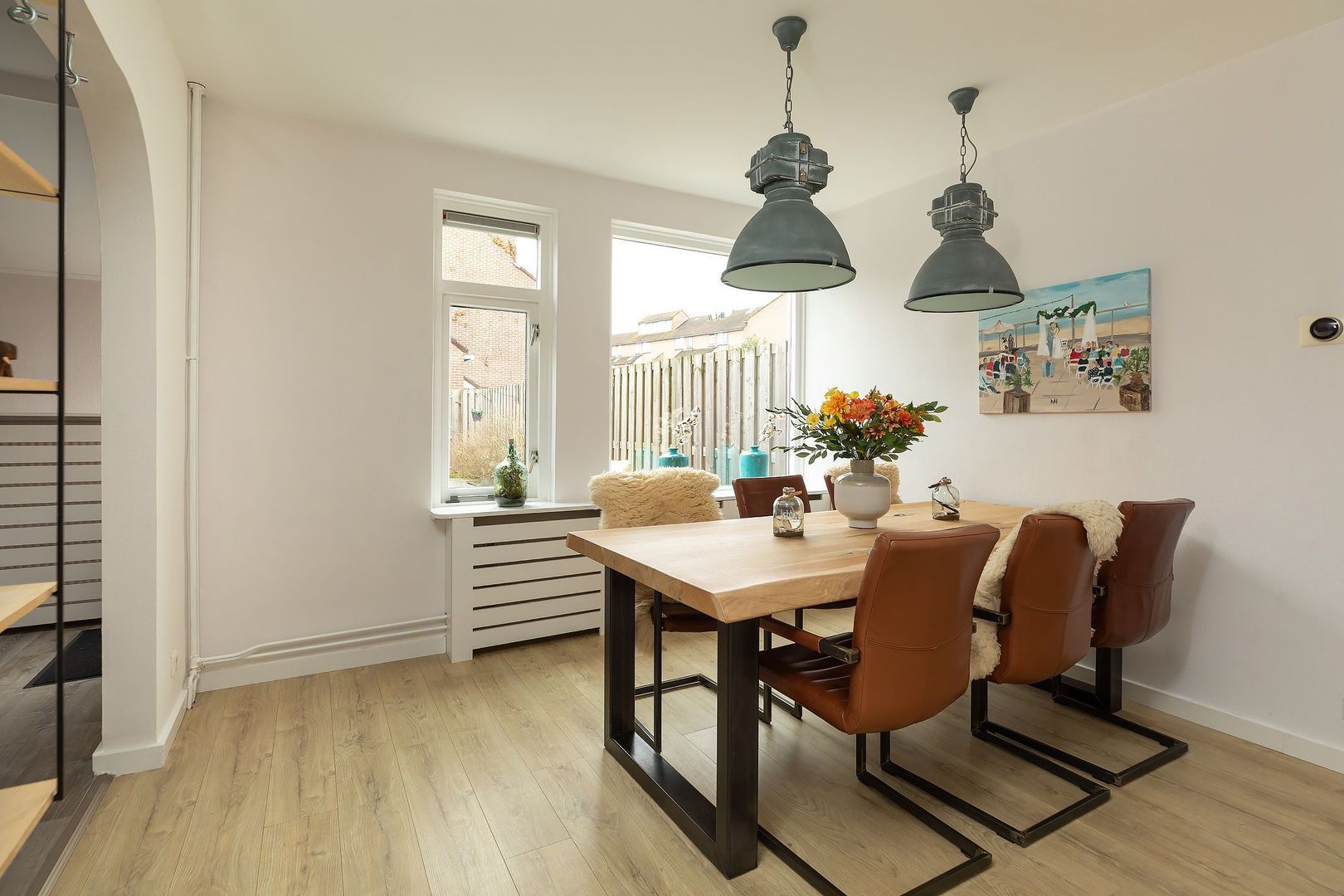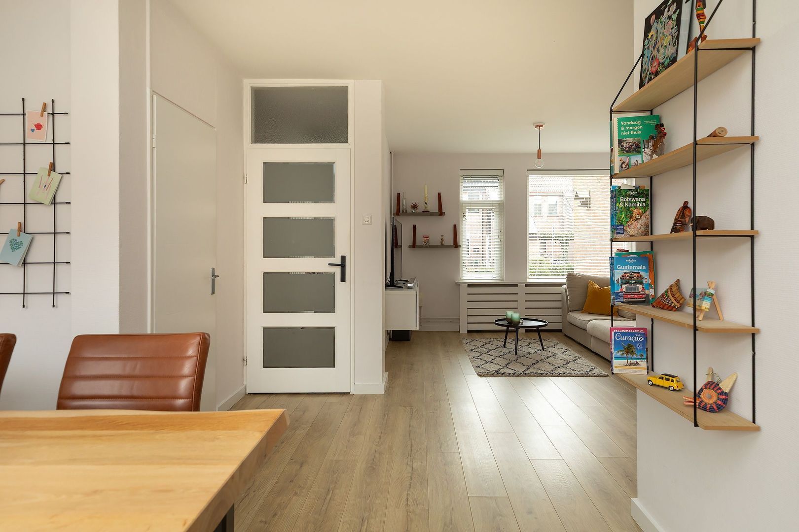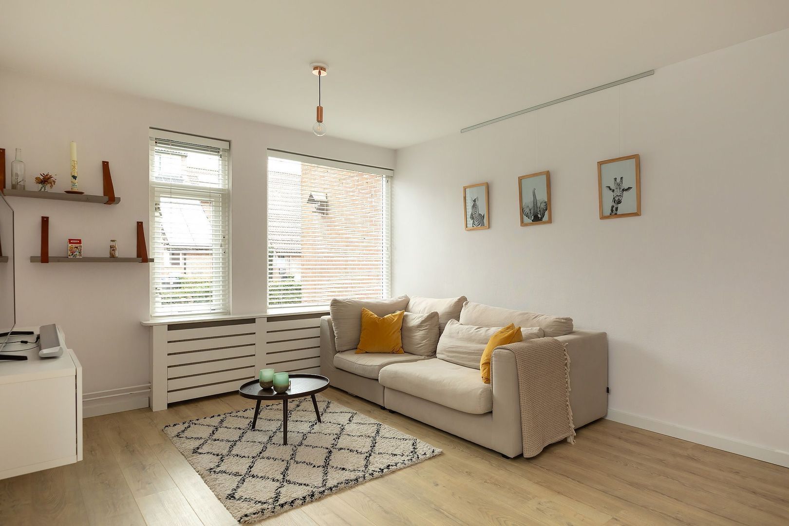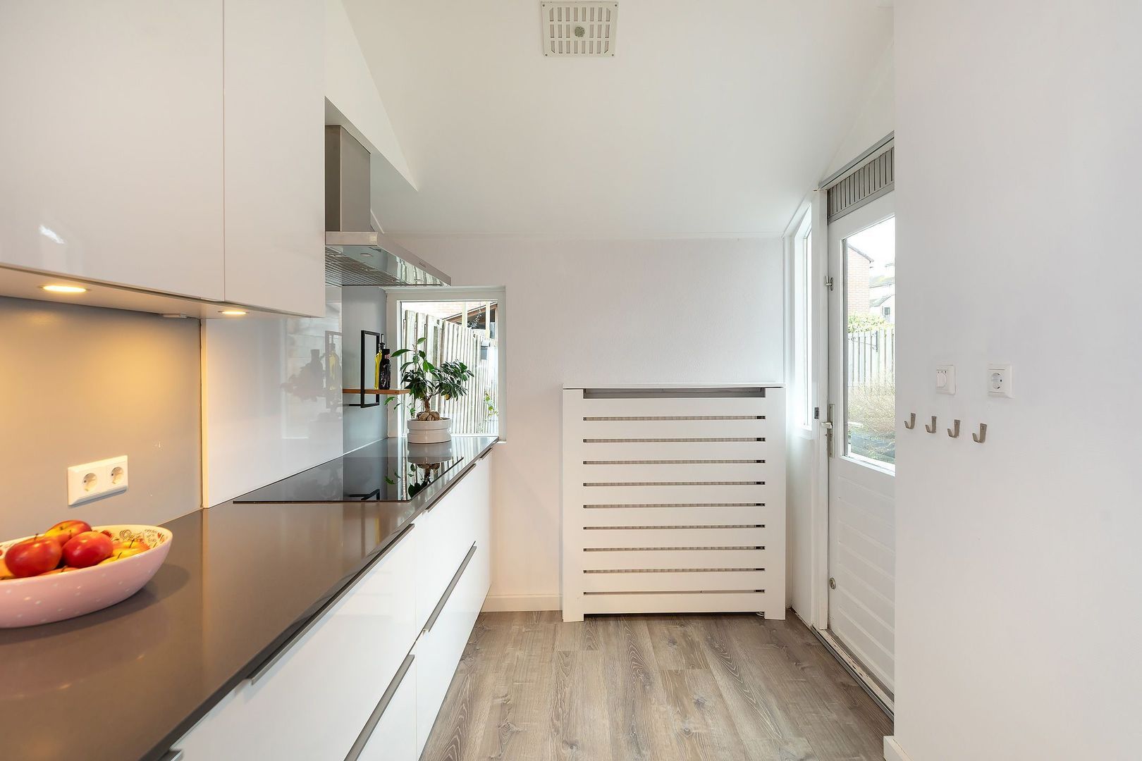 Aangebouwde berging aan de voorzijde met vliering. Entree, royale hal met garderobenis en hangend toilet met fonteintje. Z-vormige, speels ingedeelde woon-/eetkamer met vaste voorraadkast. Moderne keuken (2019) voorzien van diverse inbouwapparatuur en een deur naar de zonnige achtertuin met veranda.