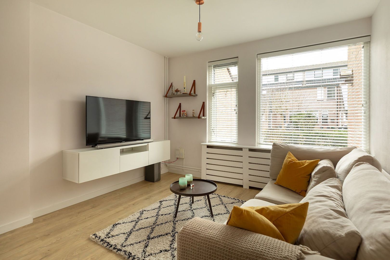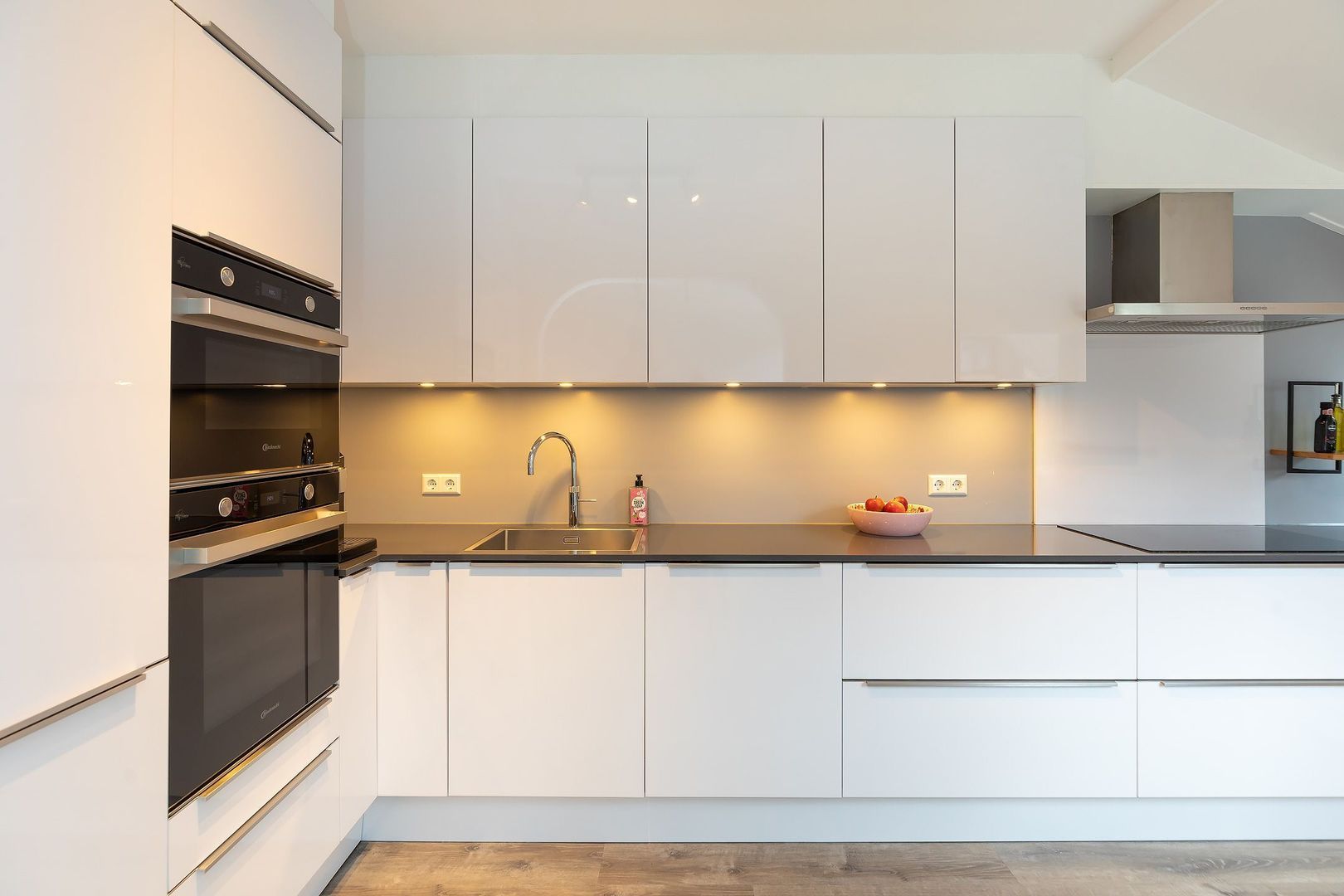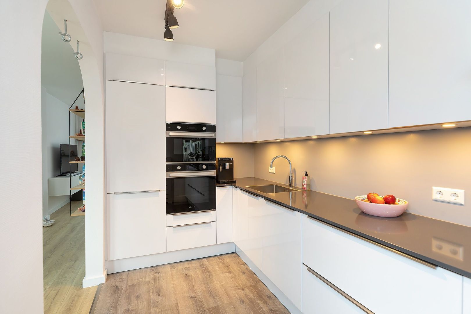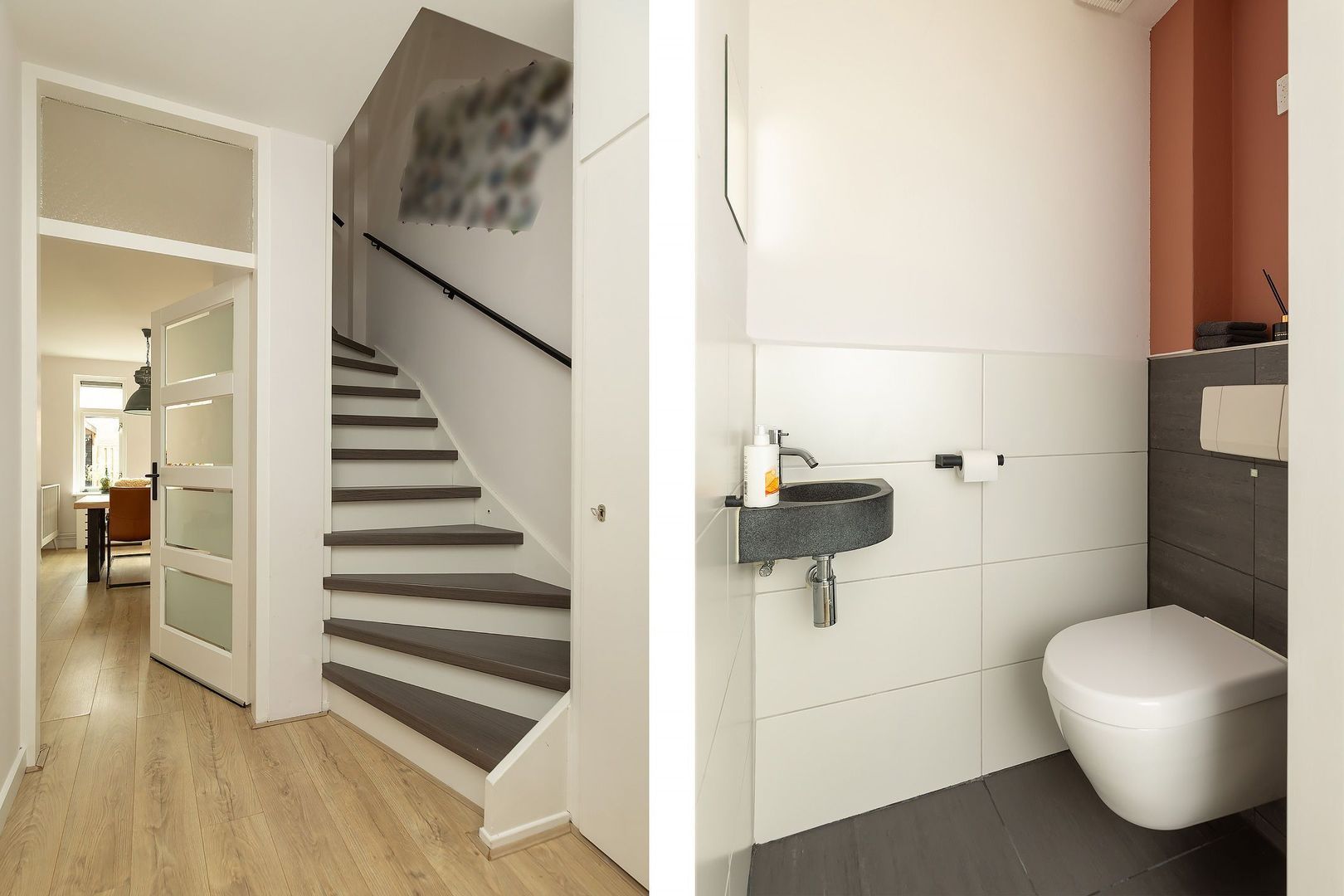 Aangebouwde berging aan de voorzijde met vliering. Entree, royale hal met garderobenis en hangend toilet met fonteintje. Z-vormige, speels ingedeelde woon-/eetkamer met vaste voorraadkast. Moderne keuken (2019) voorzien van diverse inbouwapparatuur en een deur naar de zonnige achtertuin met veranda.