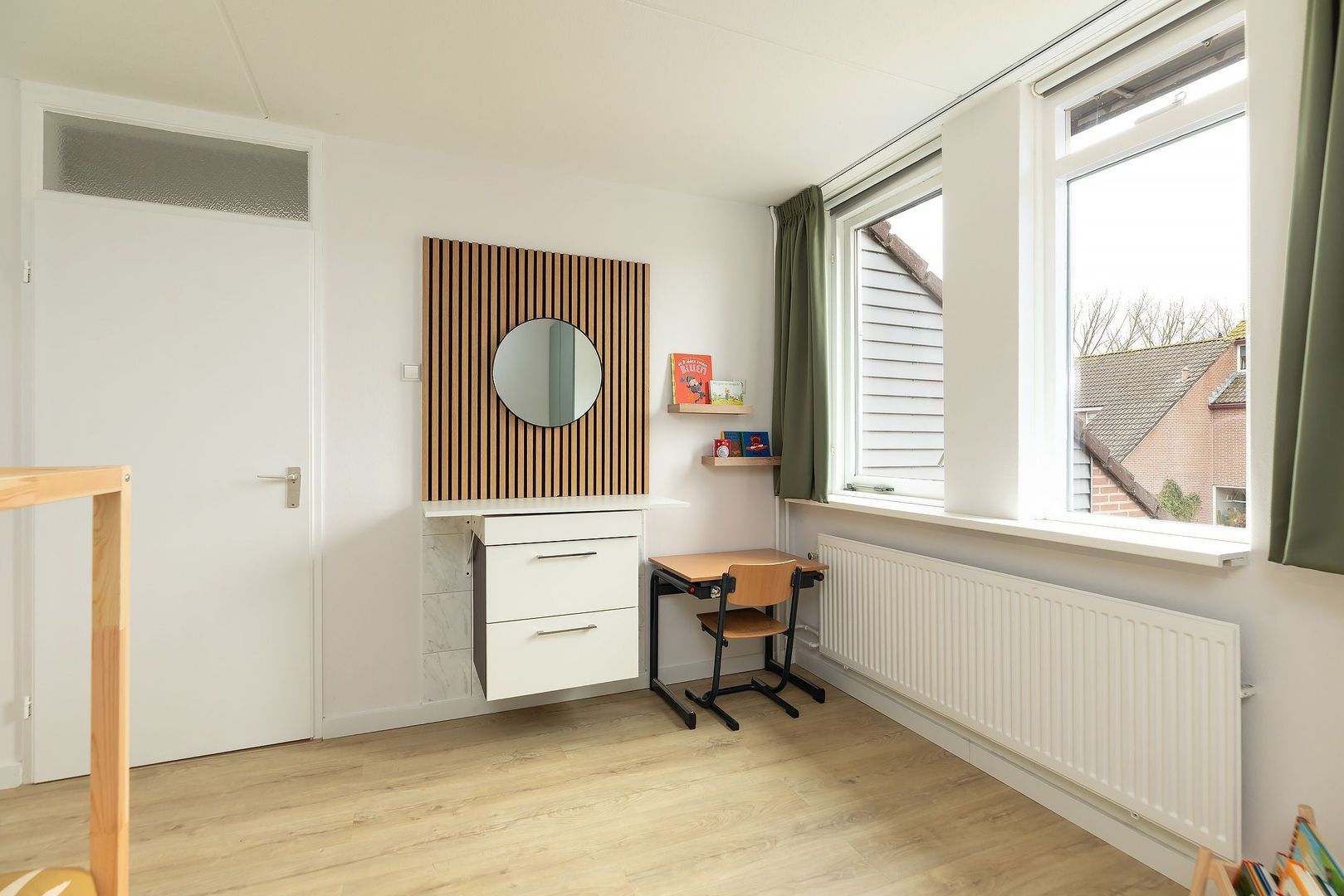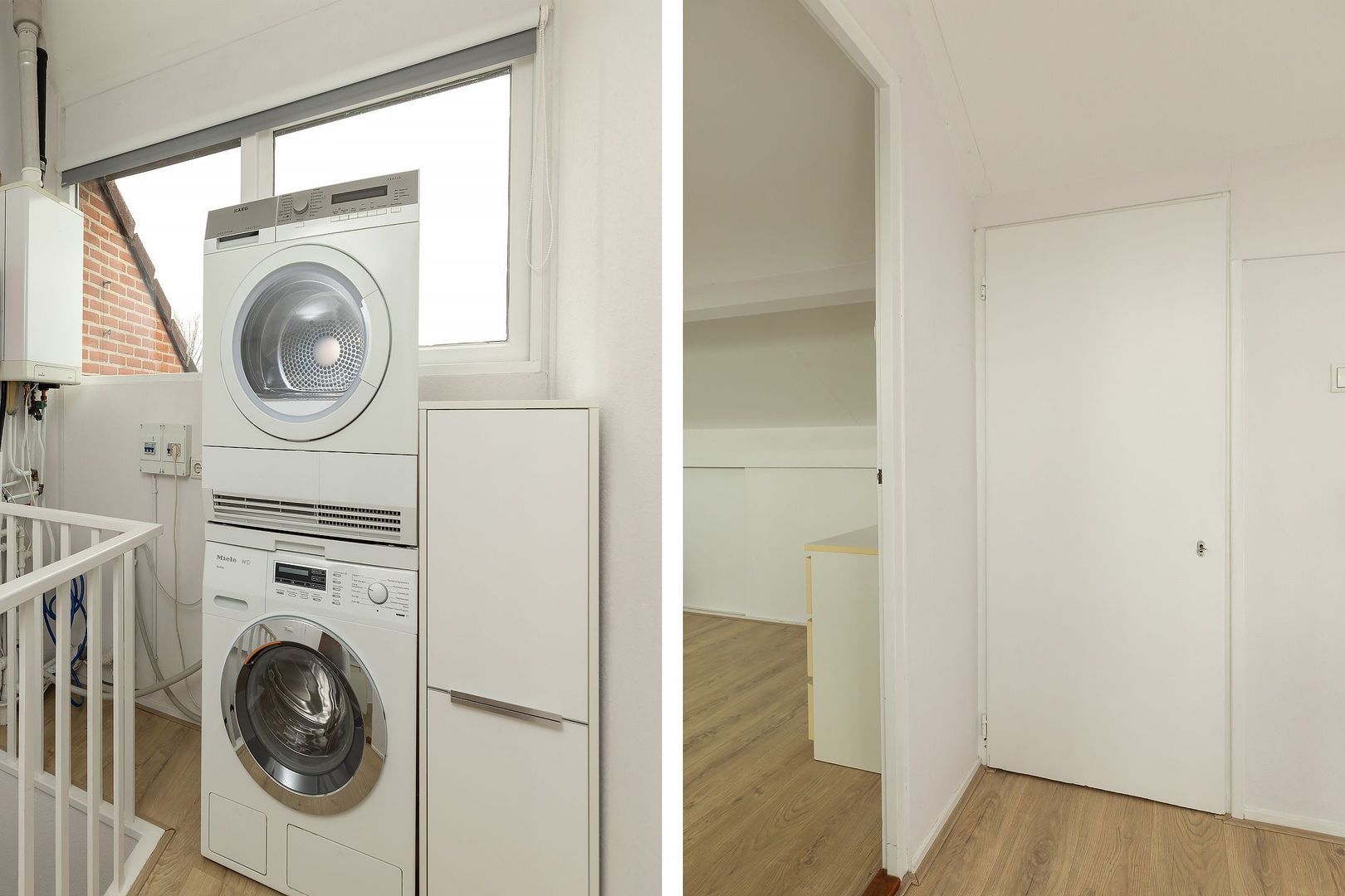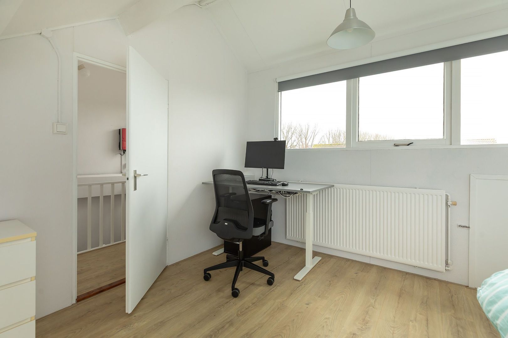 Voorzolder met cv-opstelling, wasmachineaansluitingen en veel bergruimte. Ruime 4e slaapkamer/werkkamer met veel opbergruimte achter de knieschotten.