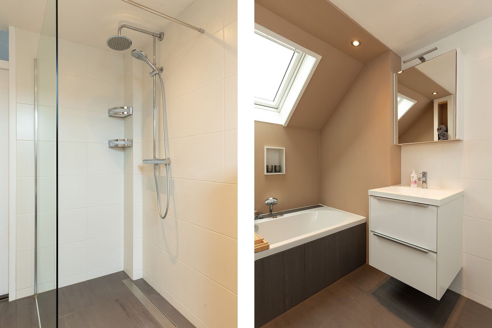 Overloop, grote slaapkamer aan de voorzijde met wastafelmeubel, 2e grote slaapkamer en 3e slaapkamer aan de achterzijde. Uitgebouwde badkamer (2014) voorzien van inloopdouche, 2e toilet, wastafelmeubel en een ligbad toegevoegd in 2021.