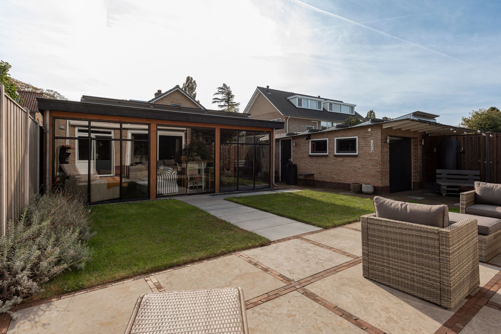 Gelegen in de gewilde Componistenwijk op een ruim perceel aan de rand van Baarn, nabij de uitgestrekte bossen van Kasteel Groeneveld en het Hoge Bomenbos met kinderspeelplaats en dicht bij de uitvalswegen naar de A1, A27 en A28; een uitstekend onderhouden en volledig geïsoleerde helft van een dubbel woonhuis. Deze instapklare woning beschikt over een royale oprit met ruimte voor meerdere auto's, een royale voortuin en een fraai aangelegde, zonnige achtertuin (ligging op het zuiden) met een luxe afsluitbare veranda en een garage/schuur voorzien van een elektrische roldeur.