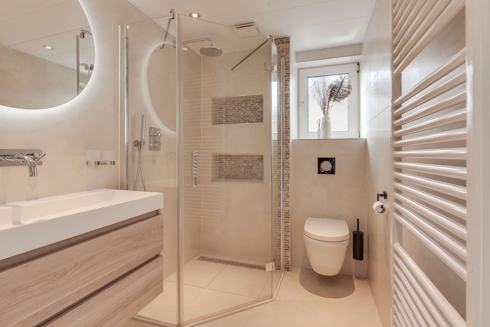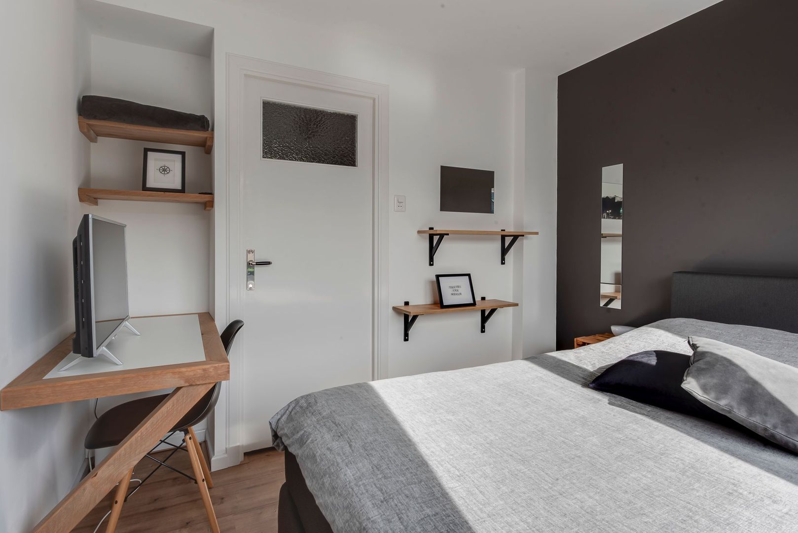 Overloop, slaapkamer voorzijde met balkon, 2e slaapkamer met vaste kasten, badkamer (upgrading 2024) v.v. inloopdouche, wandcloset en wastafelmeubel met verwarmde spiegel , 3e en 4e slaapkamer aan de achterzijde.