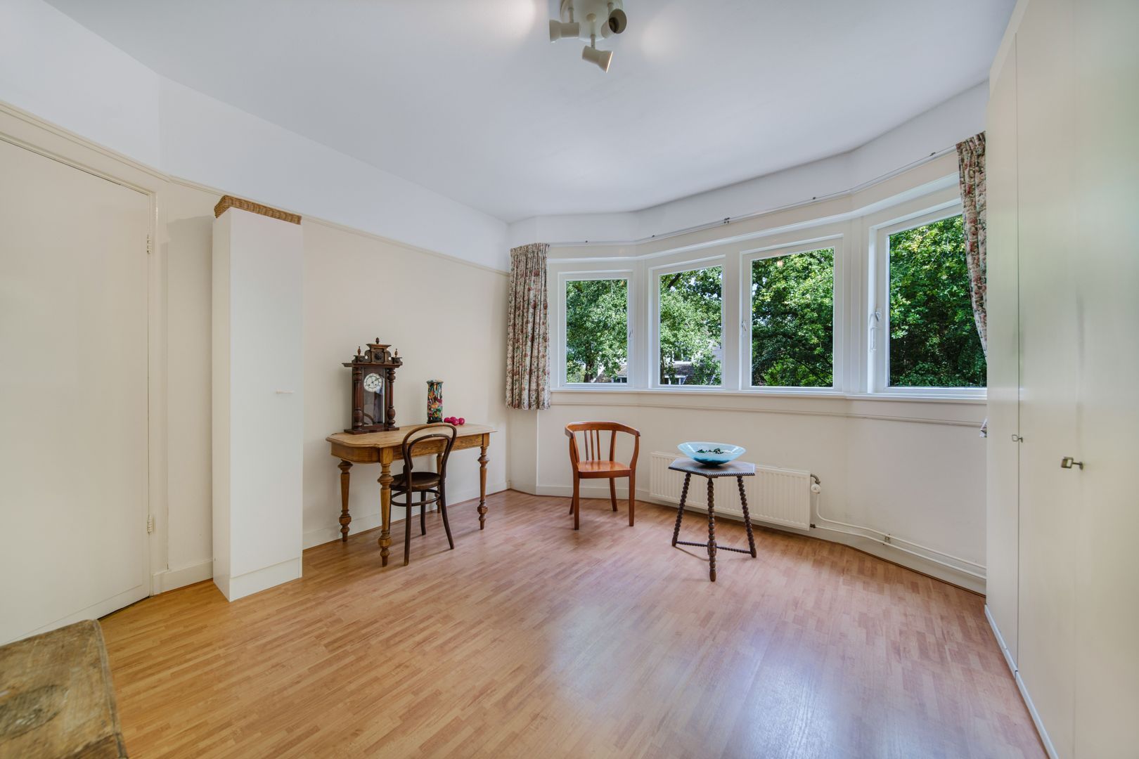 Entree, hal met trappenhuis, toegang naar de kelder, toilet met fontein, gesloten keuken voorzien van gasfornuis met oven en spoelbak, welke eenvoudig open of halfopen kan worden gemaakt richting de woonkamer. Zeer ruime, uitgebouwde woonkamer met sfeervolle erker en dubbele deuren naar de tuin. Ruime eetkamer met erker.