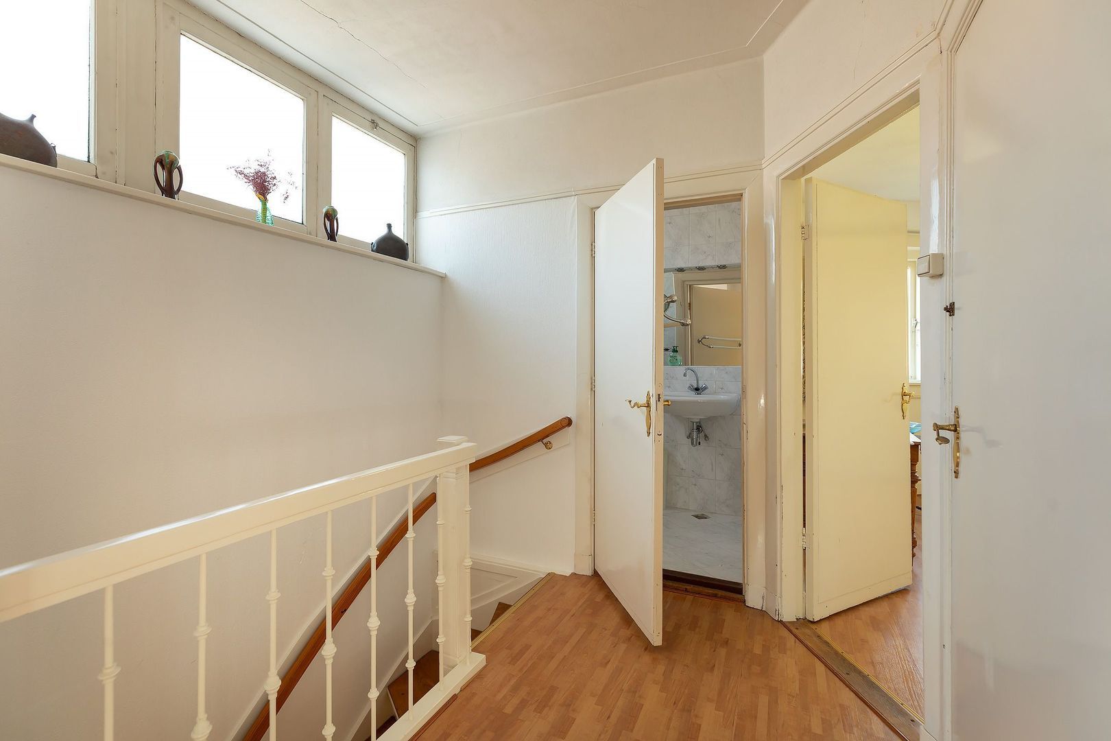 Ruime, lichte overloop. Slaapkamer met erker en vaste kast, tweede slaapkamer met vaste kast en derde slaapkamer met vaste kast. Badkamer voorzien van tweede toilet, inloopdouche en wastafelmeubel.