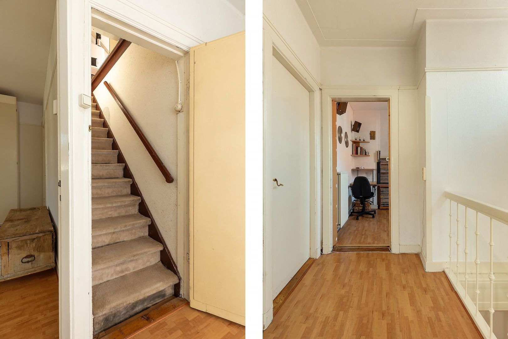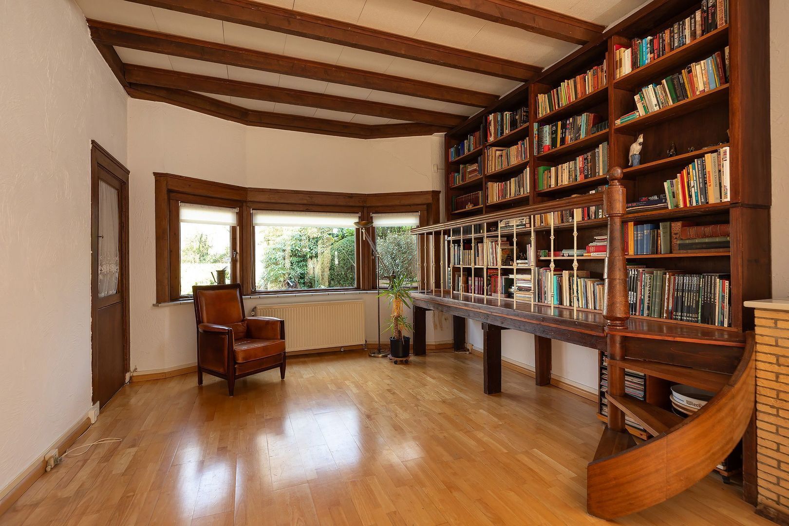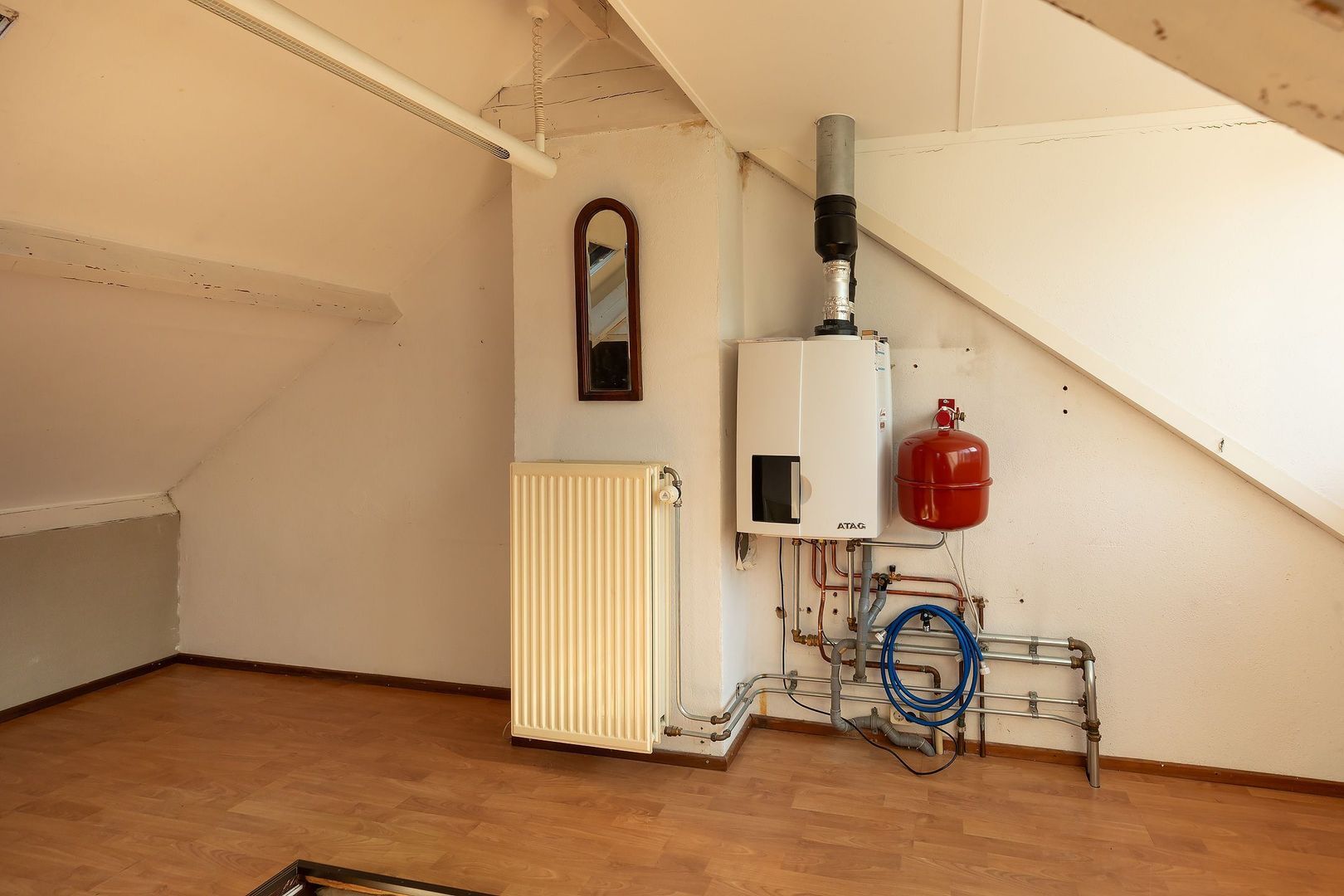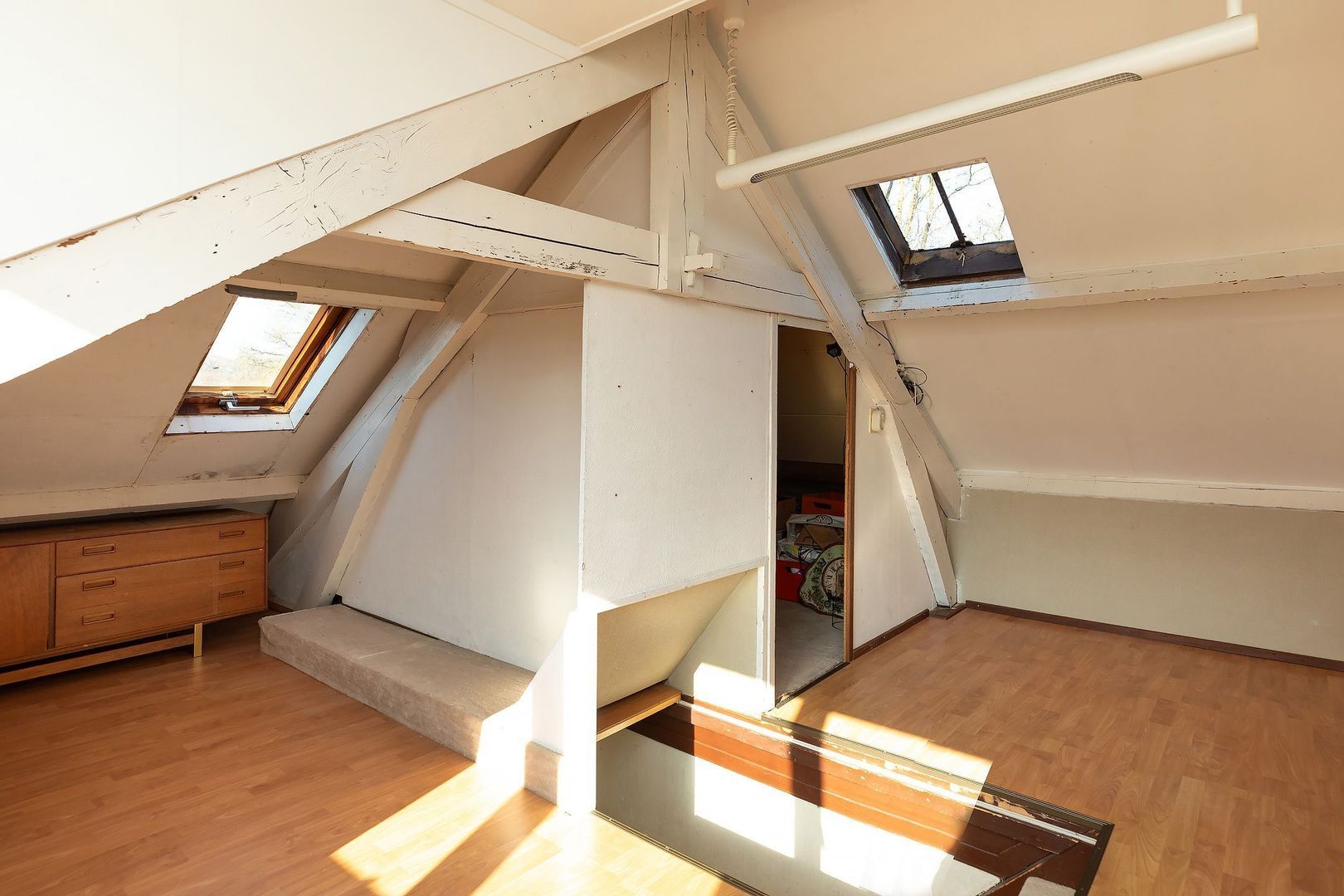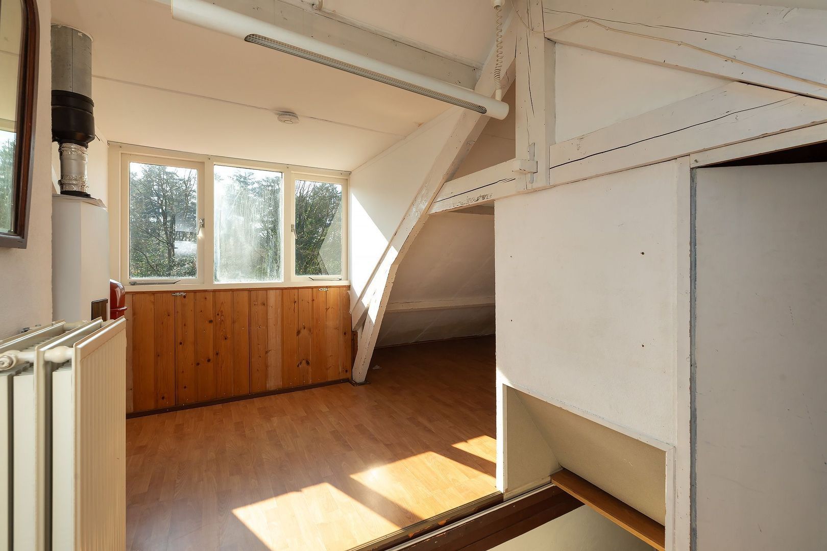 Vaste trap naar zolderverdieping met bergruimte en vierde slaapkamer, voorzien van dakkapel, dakraam en CV-opstelling.