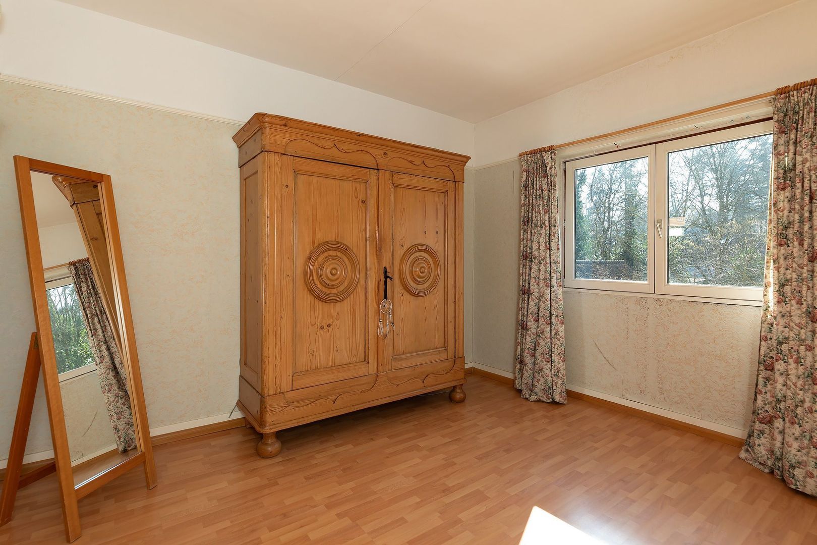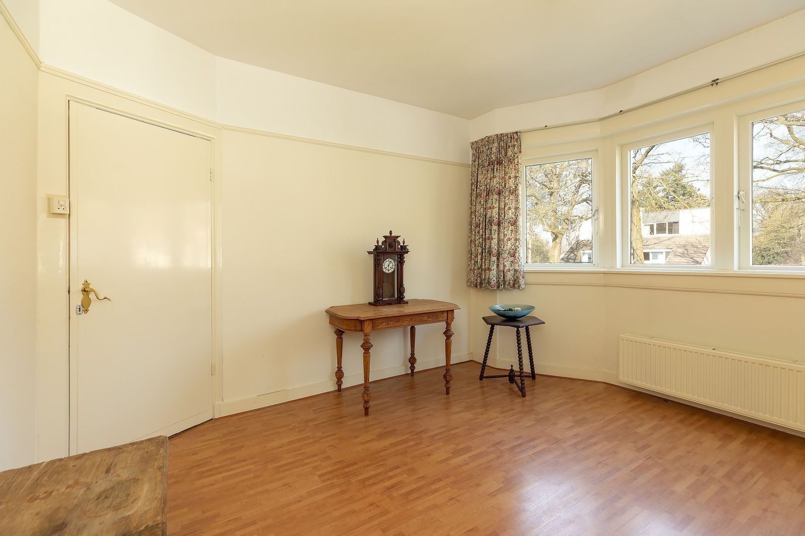 Hoog Baarn: Gelegen op 470 m² eigen grond aan de zeer gewilde, lommerrijke Ferdinand Huycklaan, helft van dubbele, uitgebouwde villa uit de jaren ’20 met 132 m² woonoppervlak, ruime L-vormige garage, oprit, carport en een vrije achtertuin. Het huis maakt deel uit van de 17 witte villa’s in de karakteristieke Cottage Stijl, die beeldbepalend zijn voor de bijzondere sfeer in de laan. De woning is door de jaren heen verzorgd, maar dient op onderdelen gemoderniseerd te worden.