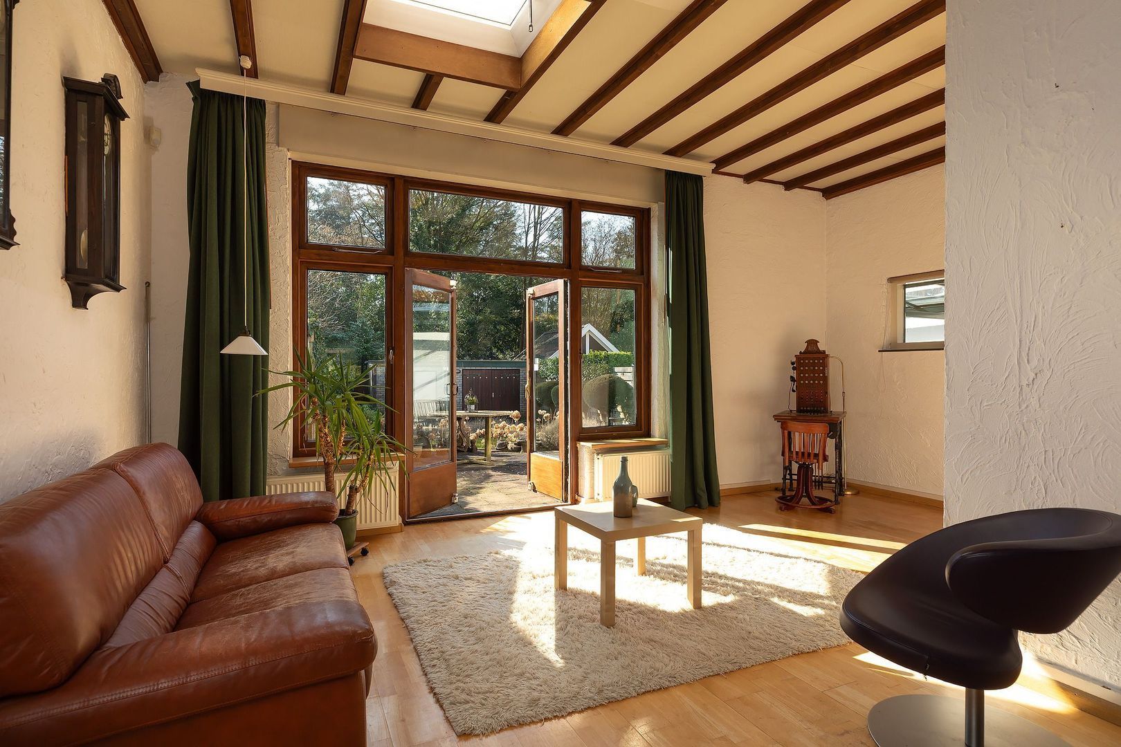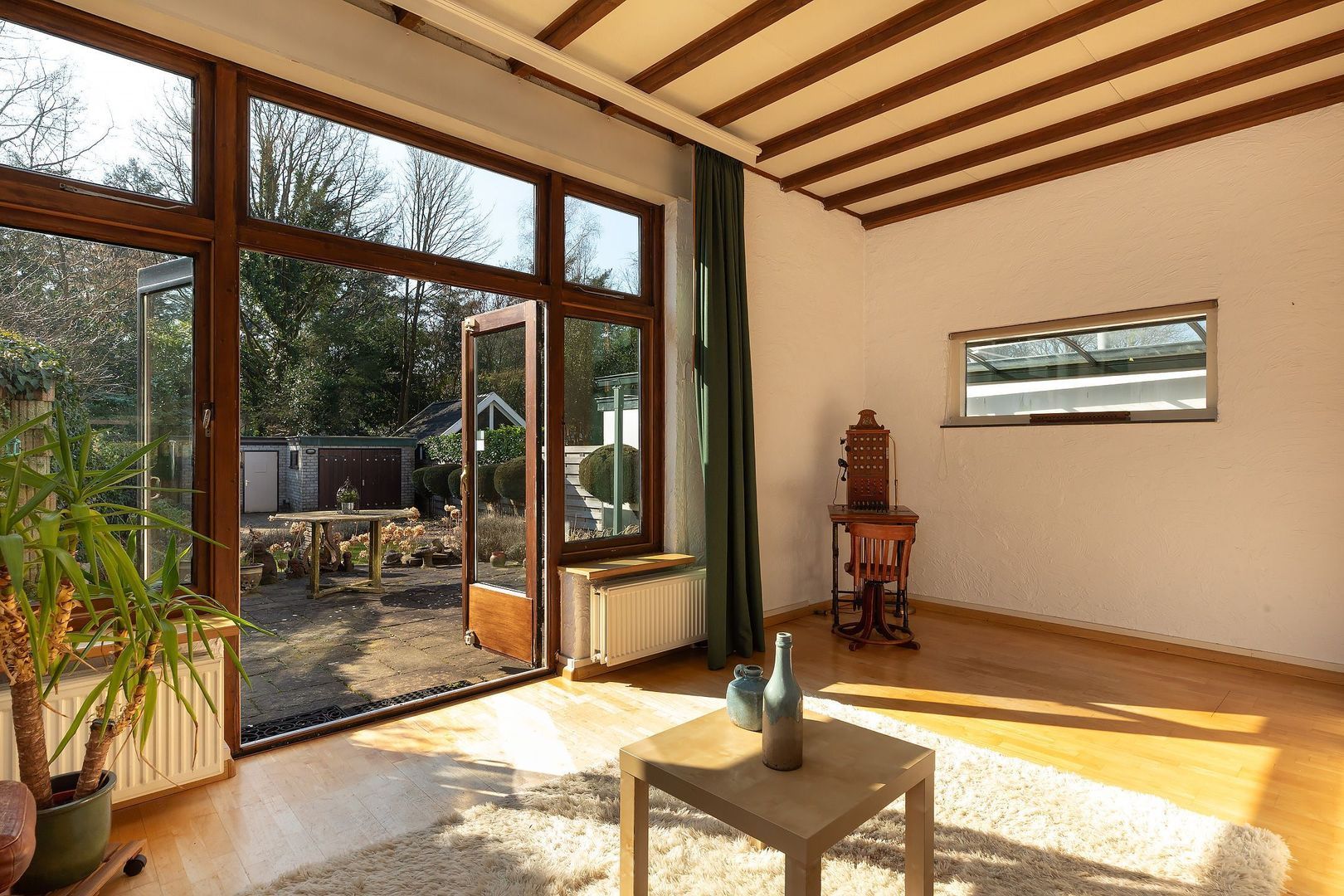 - uitbouw aan de achterzijde met dubbele deuren naar de tuin
