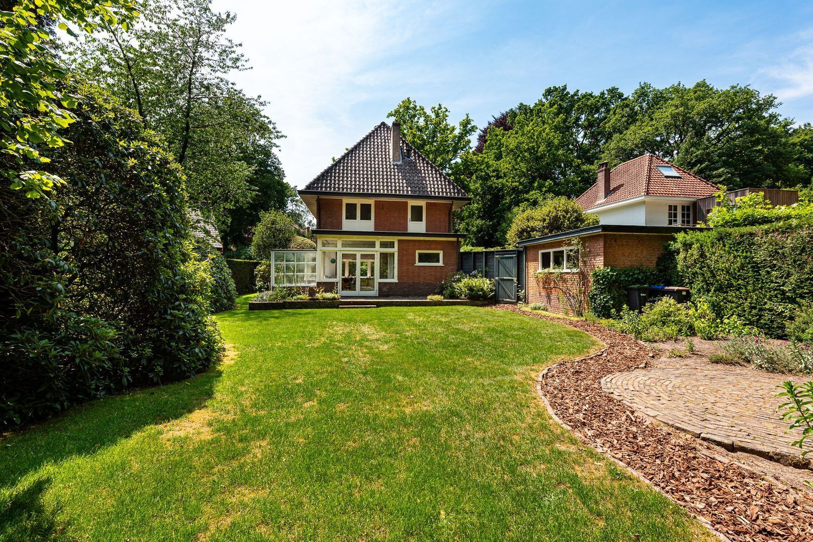 Een bijzonder royale, vrijstaande villa op een unieke plek in Baarn, vol karakter, met een fijne, grote tuin.