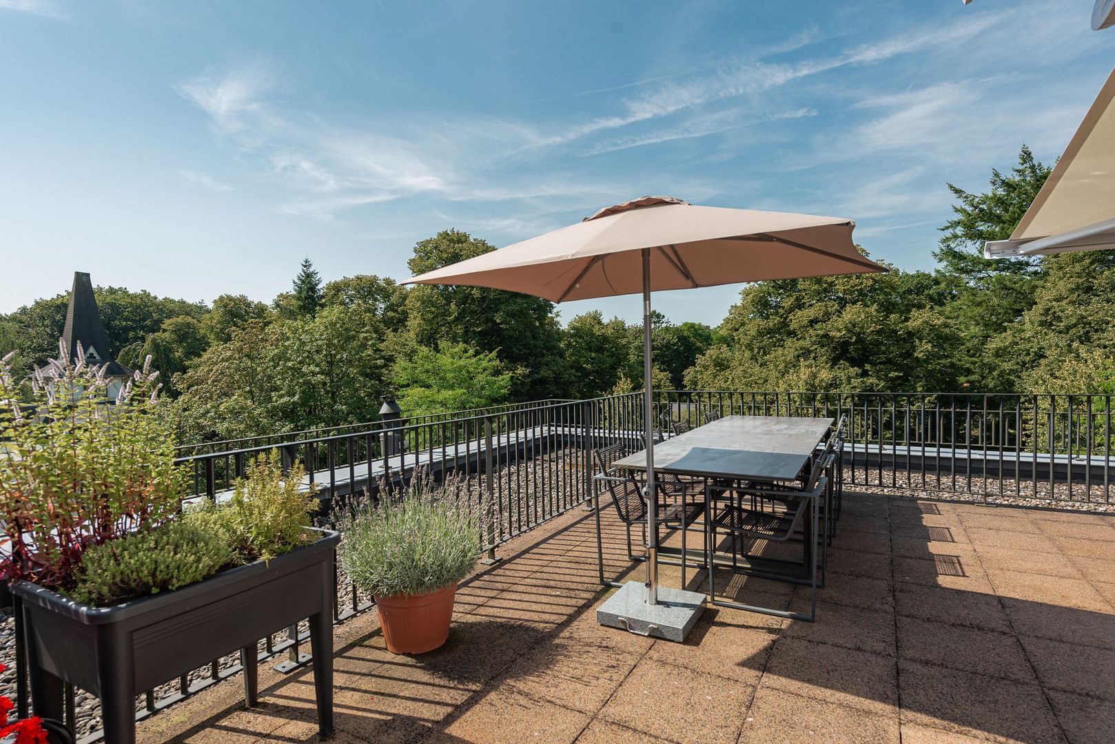 Gelegen in het gewilde Prins Hendrikpark; modern, zeer smaakvol en luxe uitgerust penthouse met 289 m² woonoppervlak, 2 terrassen van elk 10 m² op ZO en ZW, een privé-dakterras van 36 m² met rondom zon, op bovenste (3e) verdieping van kleinschalig appartementengebouw v.v. lift, 2 eigen parkeerplaatsen in de parkeerkelder en eigen berging. Het appartementengebouw is in 2005 gebouwd in klassieke bouwstijl en combineert daarmee de charme van de geliefde bouwperiode rond 1900 met de voordelen van moderne bouw: duurzaam, comfortabel, onderhoudsarm en veilig. In de afgelopen jaren zijn vloeren, keuken, sanitair, wanden en plafonds en leidingwerk (grotendeels) gerenoveerd. De fraai aangelegde landschapstuin van ruim 3.500 m² met 2 terrassen, extra (bezoekers)parkeerplaatsen en oprijlaan met inrijpoort geven het gebouw extra allure. Ligging op loopafstand van het Baarnse bos, het NS-station en het gezellige dorpscentrum. Het Prins Hendrikpark is aangewezen als Rijksbeschermd Dorpsgezicht.