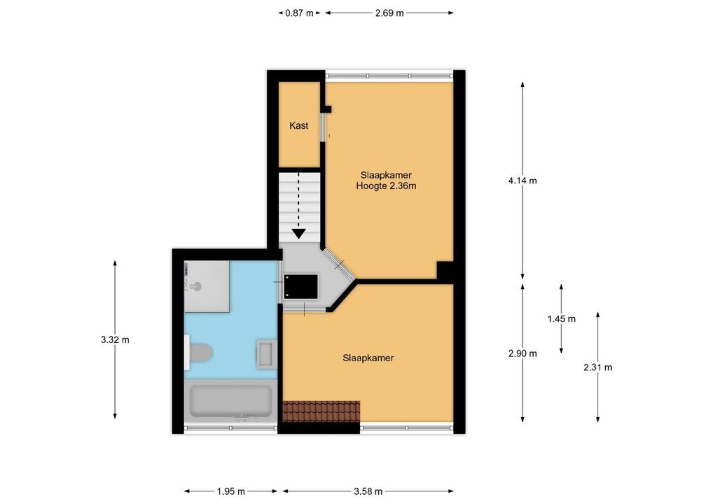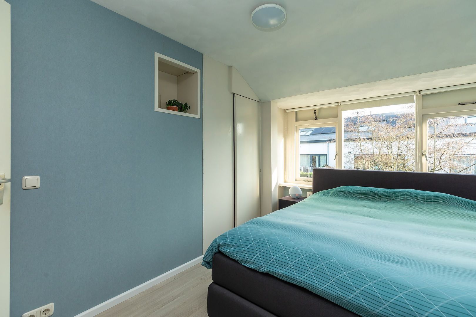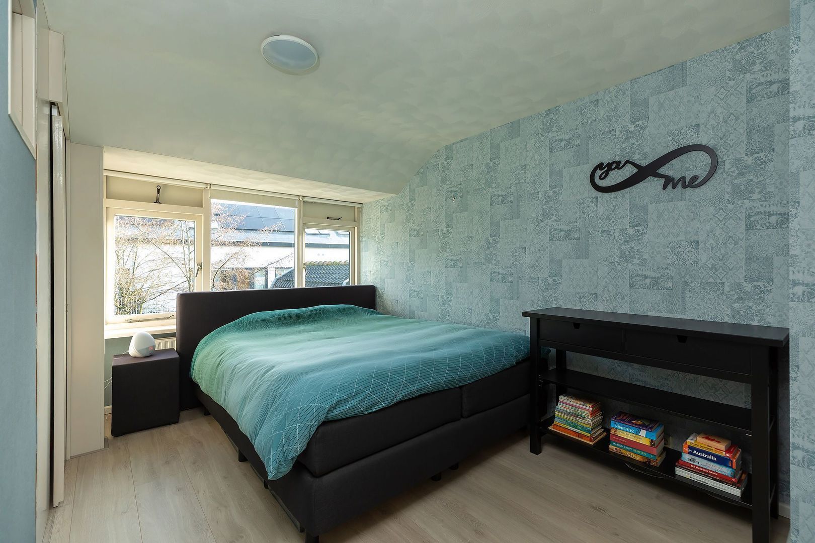 Overloop, 2 slaapkamers waarvan de grootste is voorzien van een inloopkast. Luxe badkamer met ligbad, douche, wastafel en 2e toilet. Op de overloop bevindt zich een luik naar de bergvliering met cv-opstelling.