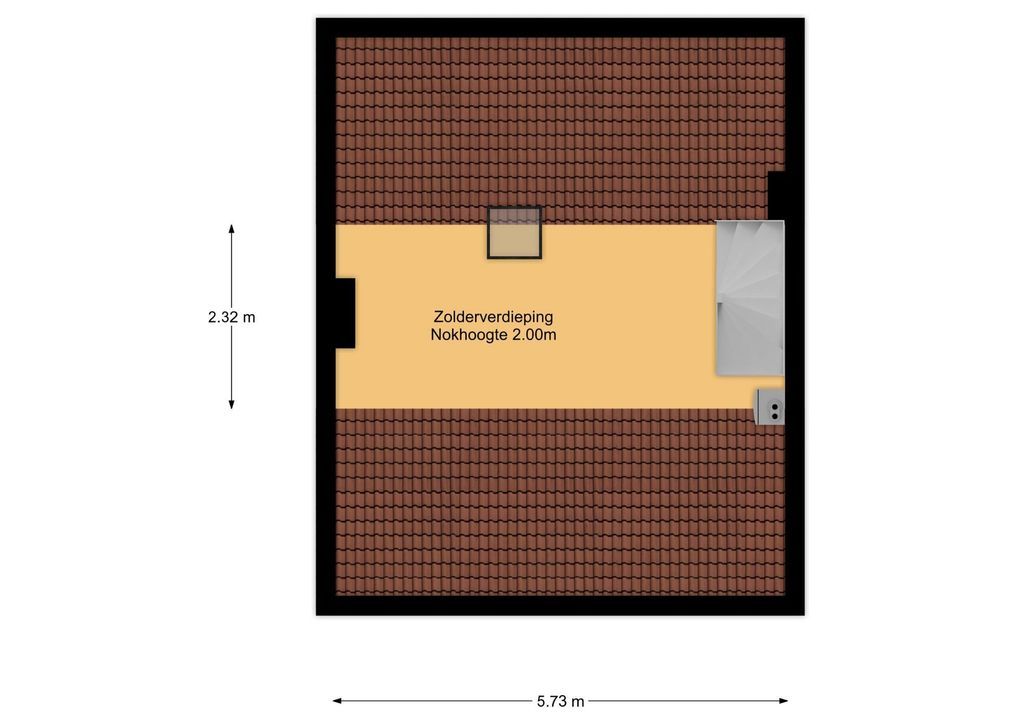 Bereikbaar via vaste trap (2024). Ruimte met stahoogte in de nok, cv-combiketel en boiler, daglicht via dakraam. Door plaatsing van een dakkapel kan het woonoppervlak worden vergroot van 88 m² naar minimaal 100 m².