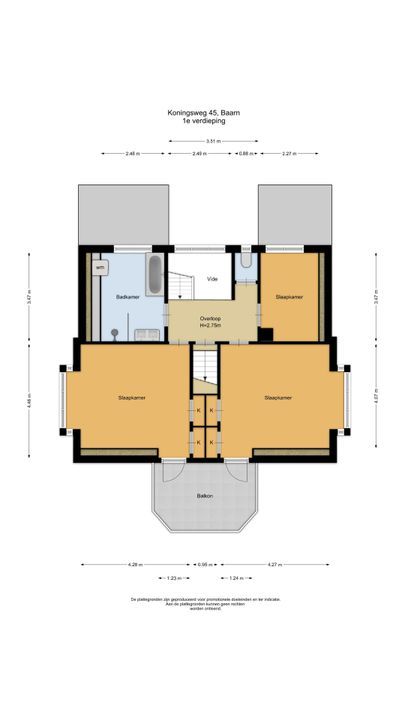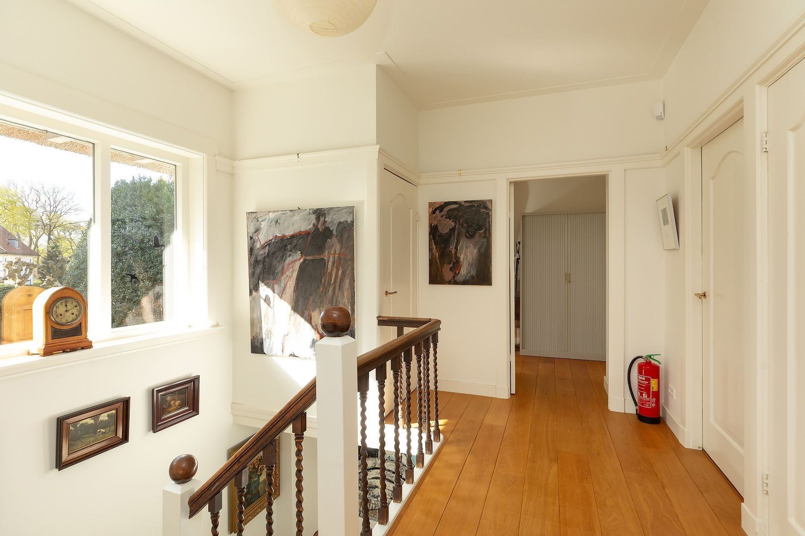 Trap met 2 bordessen naar 1e verdieping met overloop v.v. eiken parket, 2 ruime slaapkamers, beide v.v. 2 vaste kasten, erker en deur naar balkon, 3e slaapkamer, ruime, moderne badkamer met hardstenen vloertegels en vloerverwarming (via CV) v.v. inloopdouche, dubbele wastafel, ligbad en ingebouwde ruimte met aansluitingen wasmachine en droger.