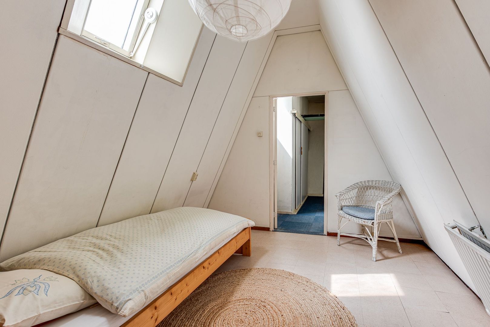 Vaste trap naar de zolderverdieping. Vierde slaapkamer met wastafel, de stookruimte met cv-ketel en boiler, vijfde slaapkamer met dakraam en een zesde slaapkamer/werkkamer met vaste kastenwand. De zolder biedt volop mogelijkheden voor extra werk-, hobby- of logeerruimte.