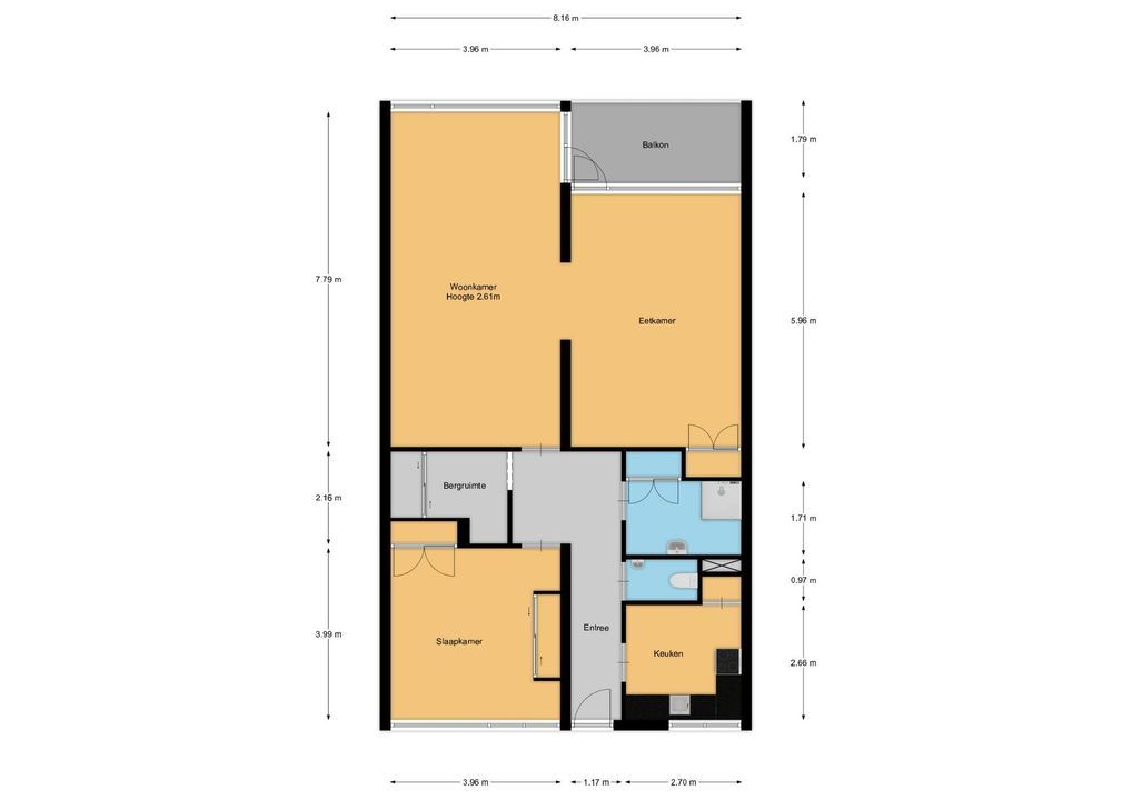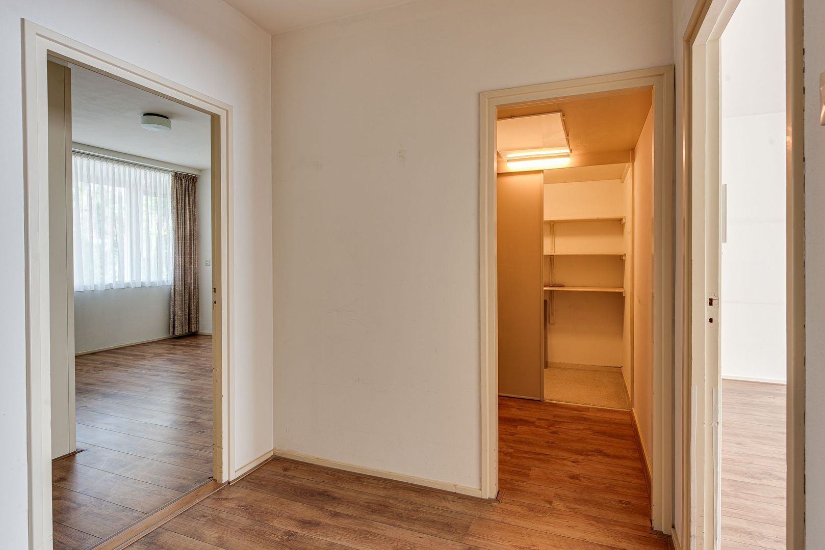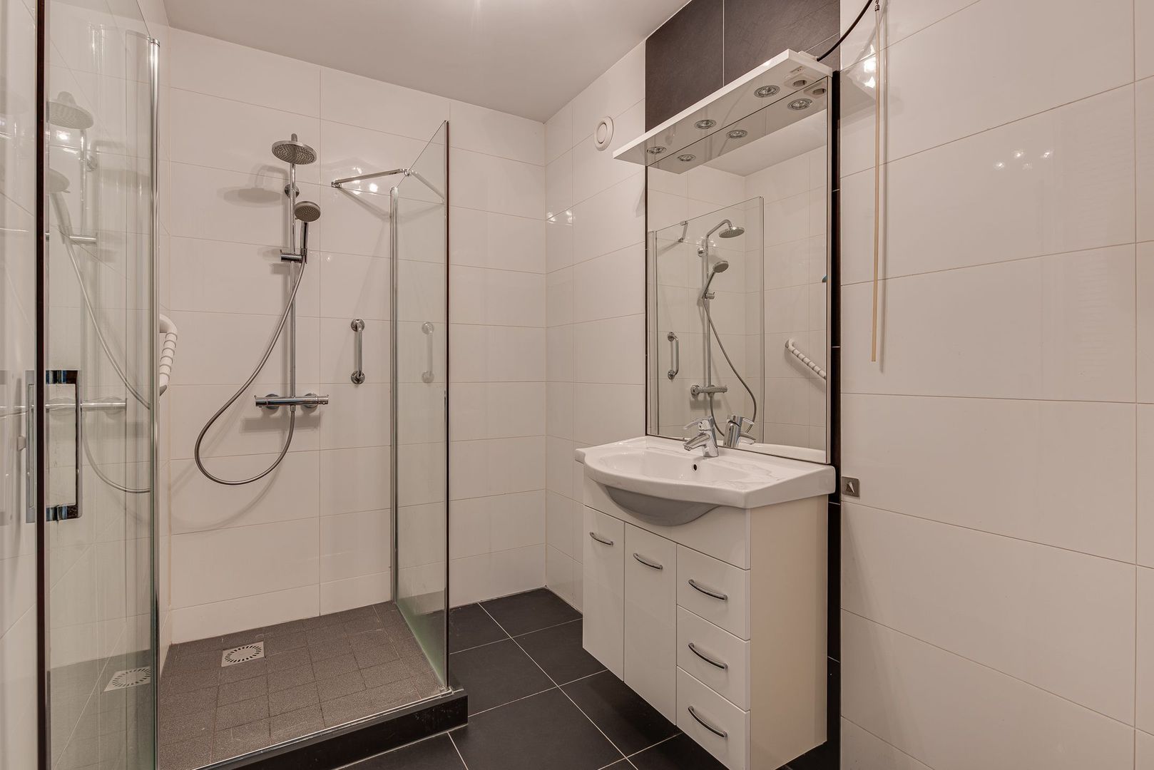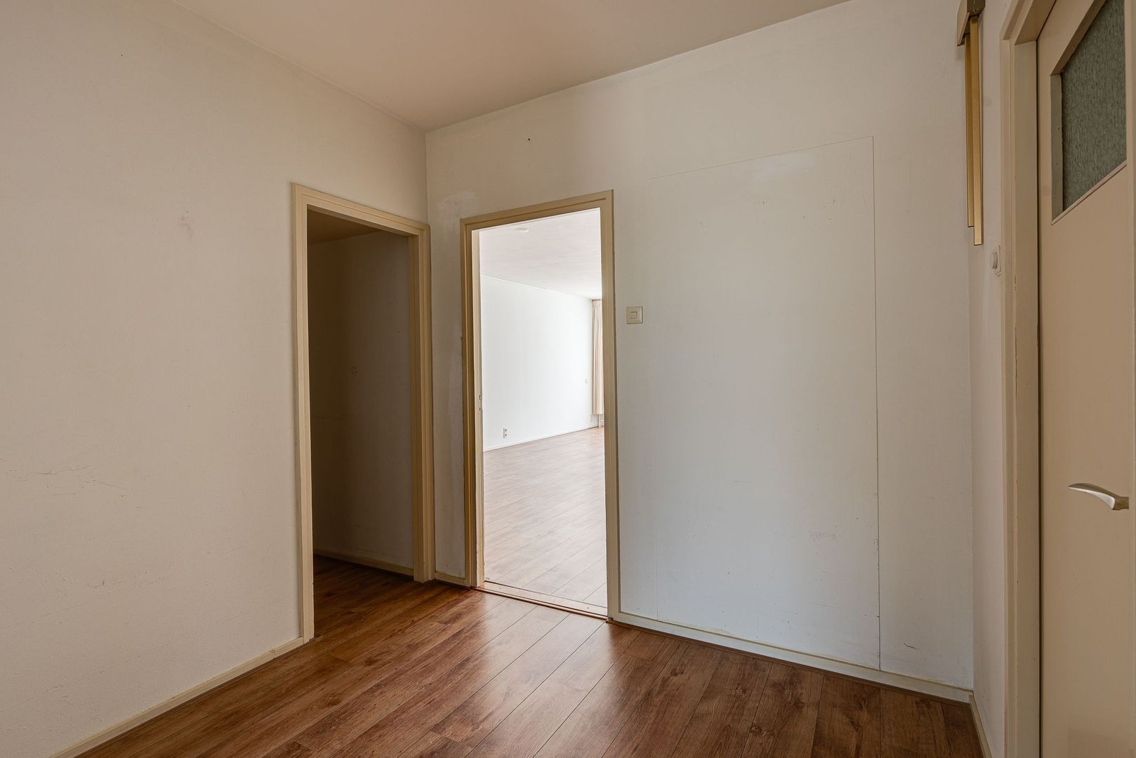 Entree, ruime hal, toilet met fonteintje, keuken v.v. inbouw apparatuur (inductie-kookplaat (2020), afzuigschouw, oven, vaatwasser en close-in boiler), grote slaapkamer (bijna 4 x 4 m) met ingebouwde kast v.v. schuifdeur, berging met kastenwand, badkamer met wastafelmeubel en douche, zeer royale, lichte woonkamer en eetkamer (samen ruim 50 m²) v.v. laminaatvloer en zonnescherm met 2 deuren naar overdekt balkonterras met optimale bezonning (Zuidwest).