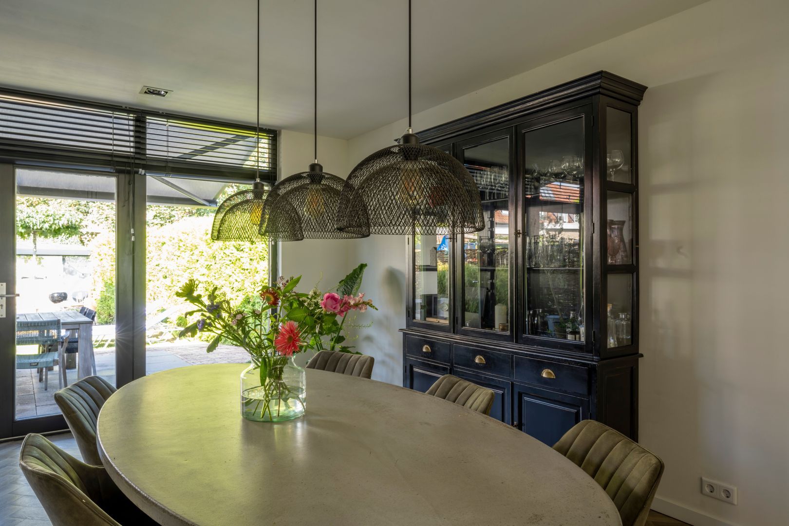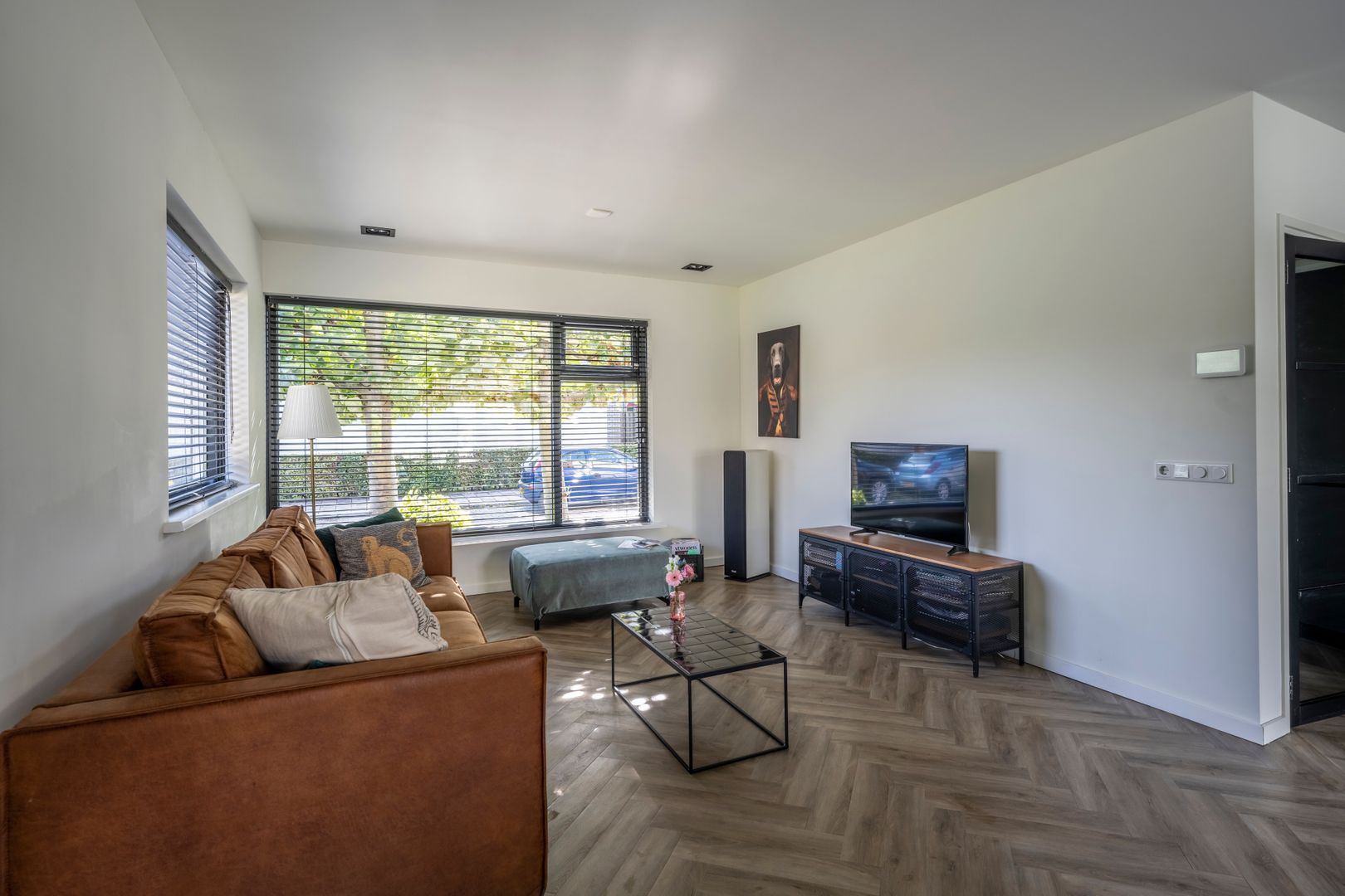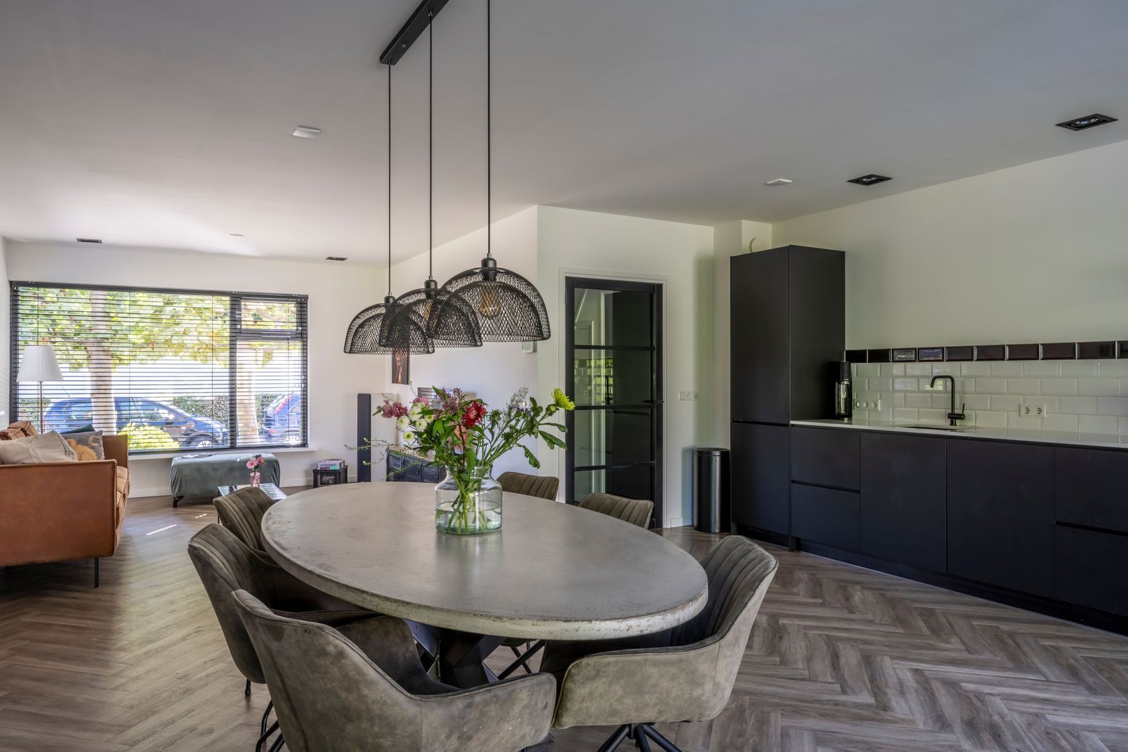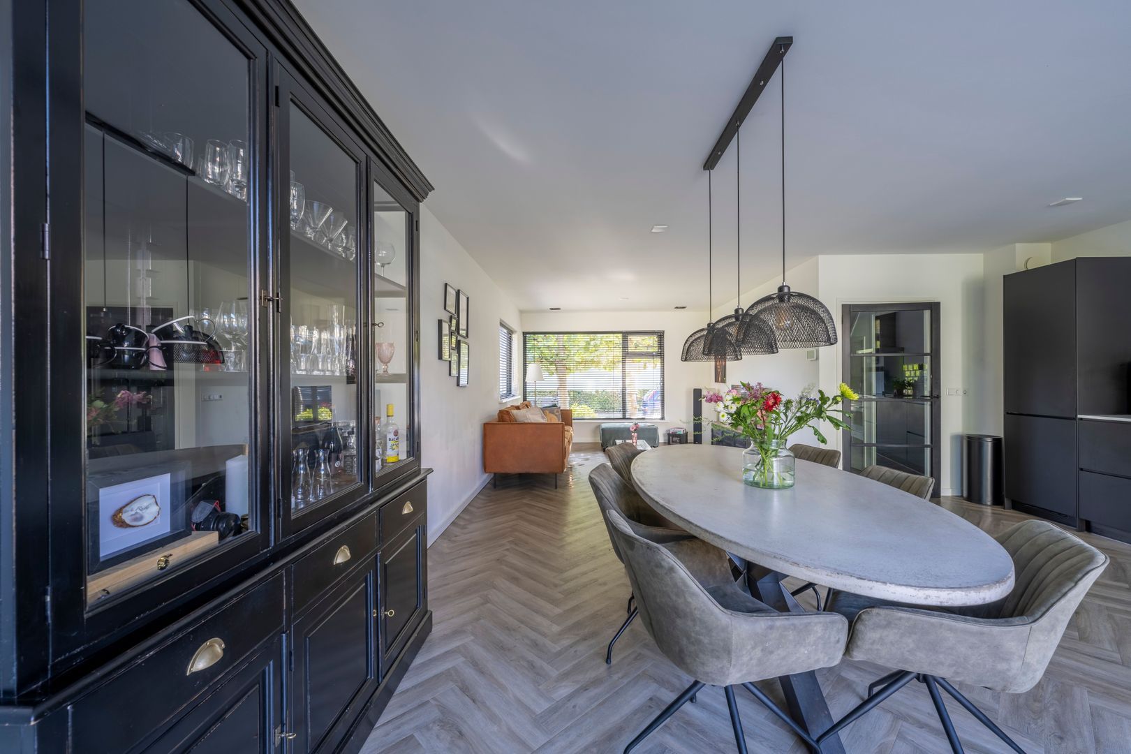 Entree, hal, trapkast met vernieuwde groepenkast, vrij hangend toilet, uitgebouwde woon- eetkamer, stucplafond met inbouwspots en openslaande deuren naar de achtertuin, luxe open keuken (2019) met Smeg inductiekooplaat en oven, afzuigkap, koelkast, vriezer en magnetron. De gehele begane grond vloer is aan de onderzijde geïsoleerd v.v. vloerverwarming met PVC vloerafwerking.