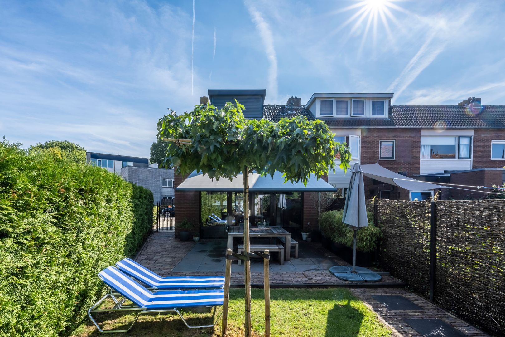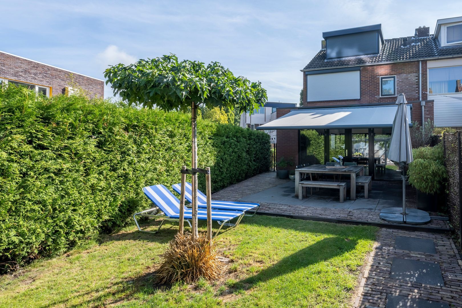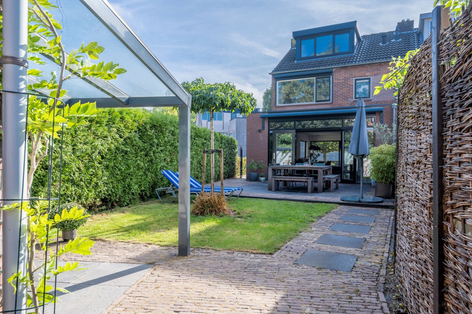 De woning heeft een royale oprit voor meerdere auto’s aan de zijkant van de woning een voortuin en goed aangelegde diepe achtertuin. Alle voorzieningen zoals basisschool, buurtwinkelcentrum, kinderdagverblijf en kinderboerderij zijn op loopafstand.