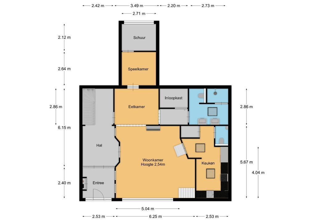 Aansluitend aan de woonkamer bevindt zich de eetkamer, een ingebouwde kastenwand en een ruime badkamer (2018) voorzien van douche, 2e toilet en dubbel wastafelmeubel. Grote kelder met opstelling van de cv-ketel en wasruimte. Vanuit de woning binnendoor toegang tot een multifunctionele ruimte en de schuur met garagedeur.