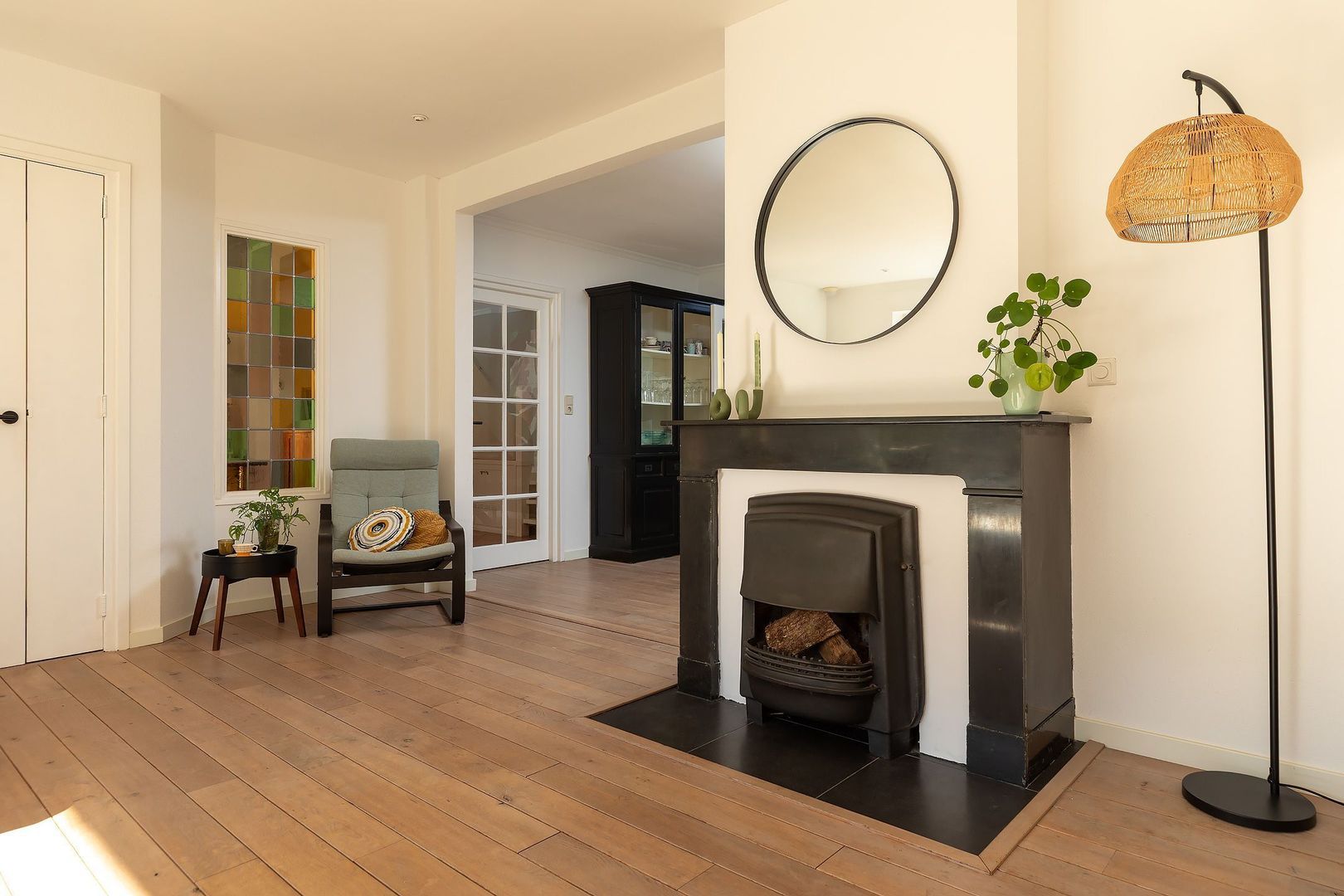 Wat deze woning bijzonder maakt, is de combinatie van karakter én comfort. Authentieke elementen zijn met liefde geïntegreerd, zoals prachtige originele hoteldeuren uit Amsterdam op de bovenverdieping, een stijlvolle antieke schouw als blikvanger in de woonkamer en sfeervolle glas-in-loodramen die zorgen voor een warme uitstraling. Daarnaast zijn er op maat gemaakte kasten gerealiseerd door een timmerman, wat perfect aansluit bij de stijl en het gebruiksgemak van de woning.