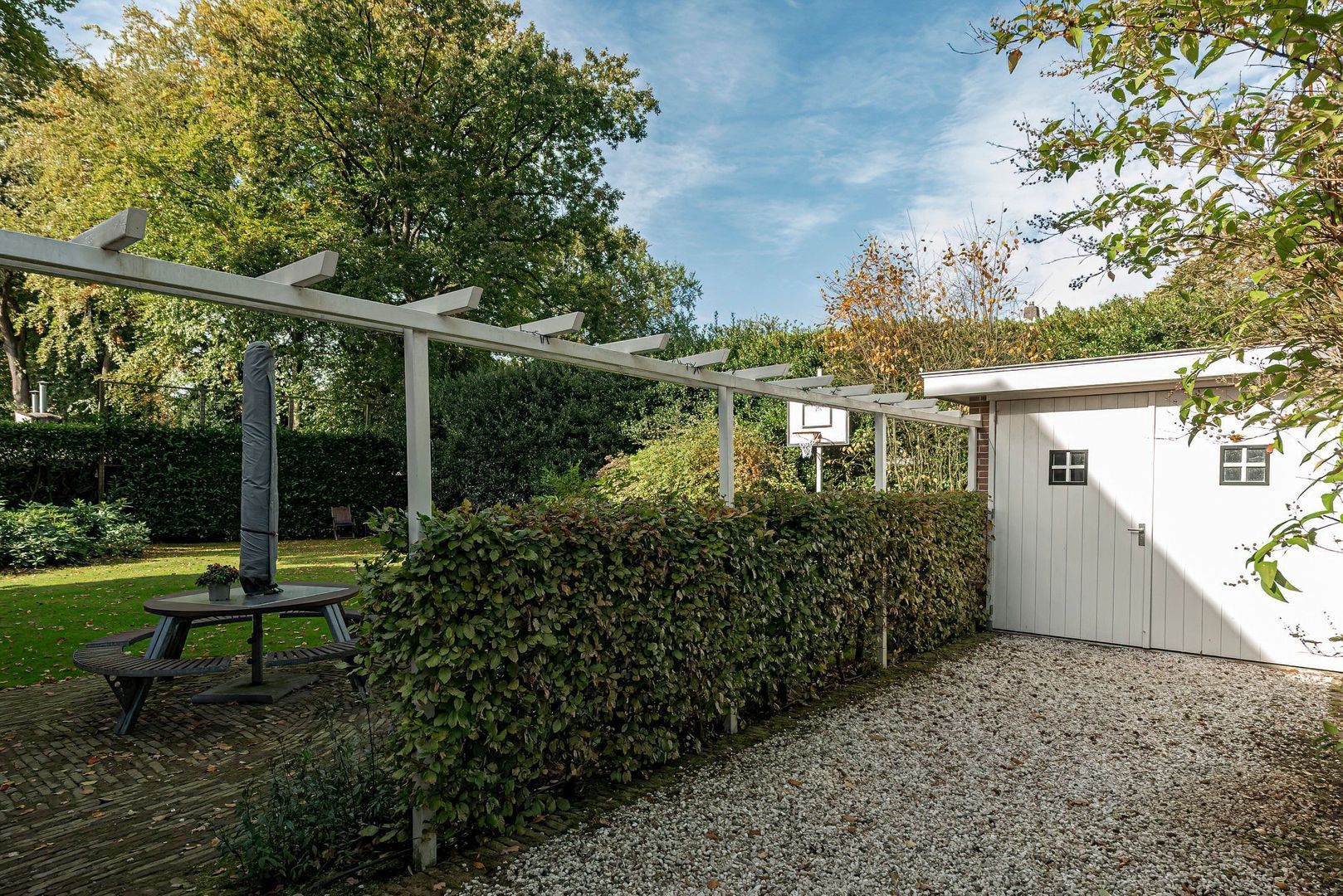 De villa is voorzien van een ruime oprijlaan, garage, fietsenstalling en oplaadpunt voor elektrische voertuigen.