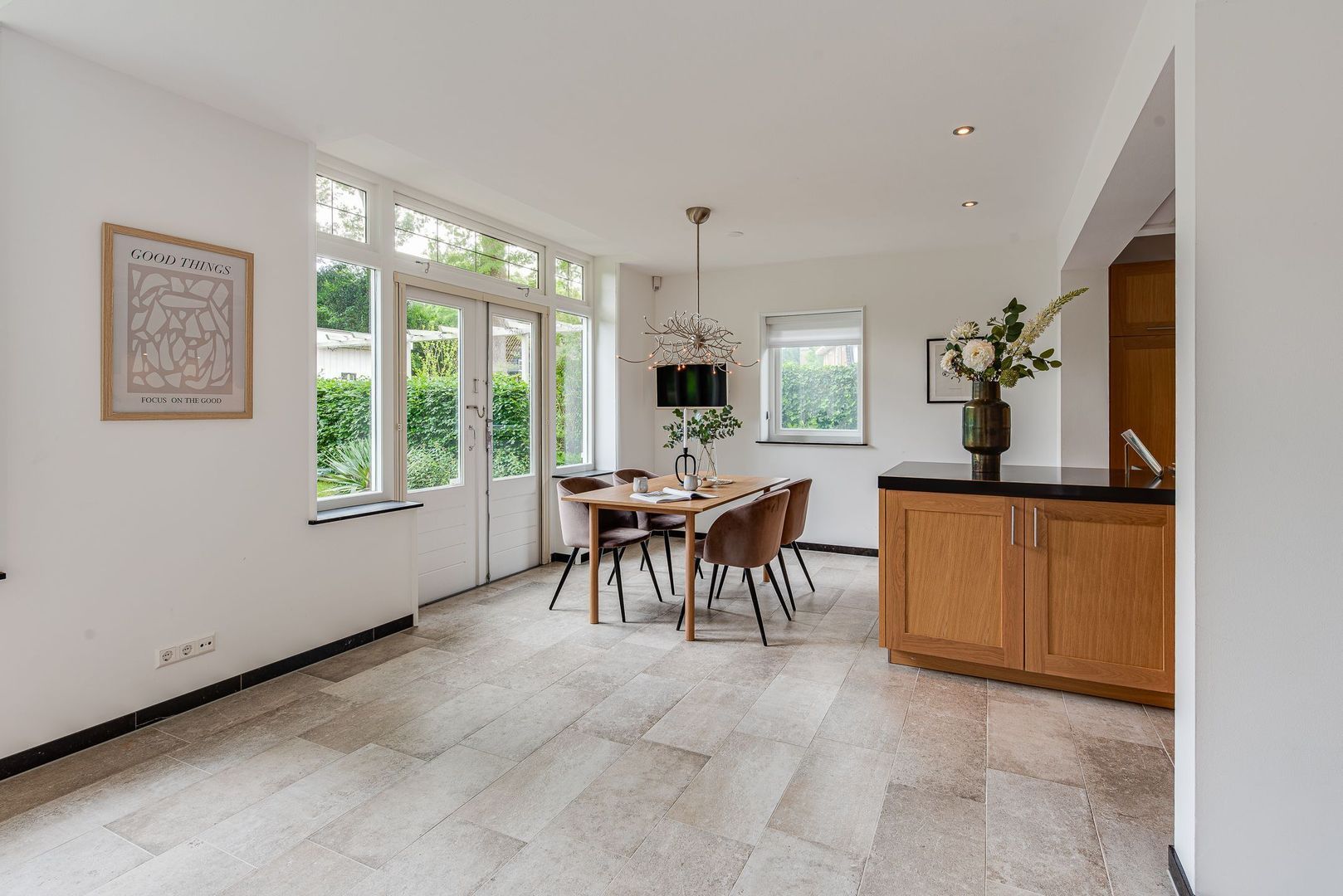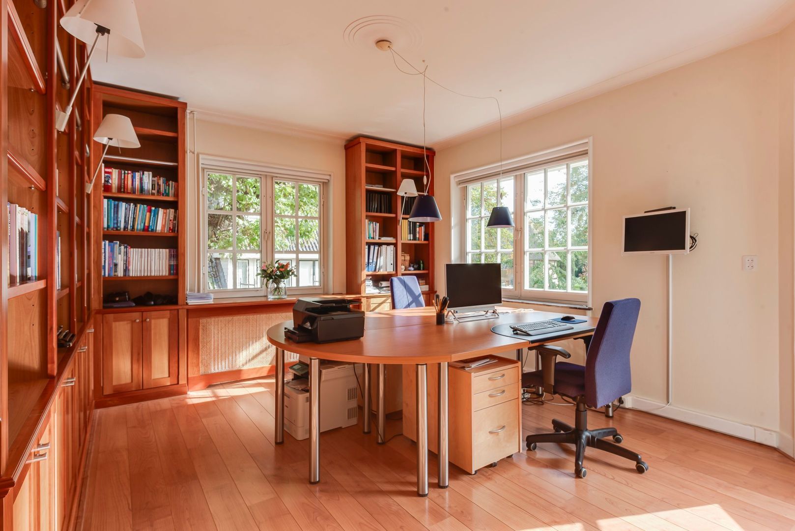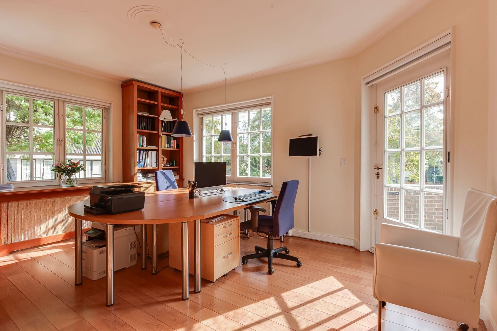 Een heerlijk compleet en up-to-date familiehuis met onder meer een ruime werkkamer op de begane grond en 6 slaapkamers met 3 badkamers op de 1e en 2e verdieping.