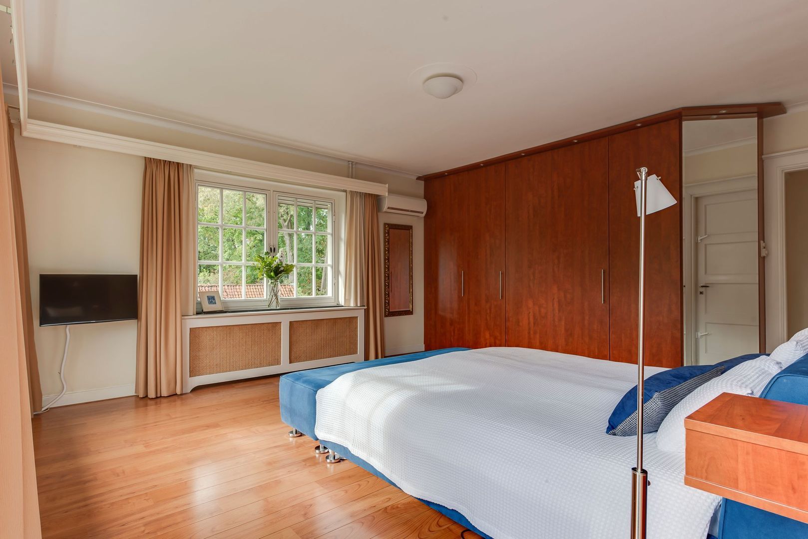 Kenmerkend voor de fraaie architectuur is het half-ronde balkon en loggiaterras aan de voorzijde met fraai zicht op de diepe voortuin en de oude bomen aan de Nicolaas Beetslaan. Ook de ruime achtertuin ligt heerlijk op de zon en biedt ook alle ruimte voor bijvoorbeeld een zwembad met tuinhuis. Energielabel C. De gehele begane grond is voorzien van comfortabele vloerverwarming, geïsoleerde buitenmuren en dubbele beglazing.