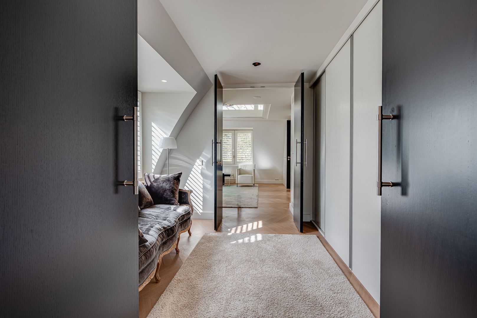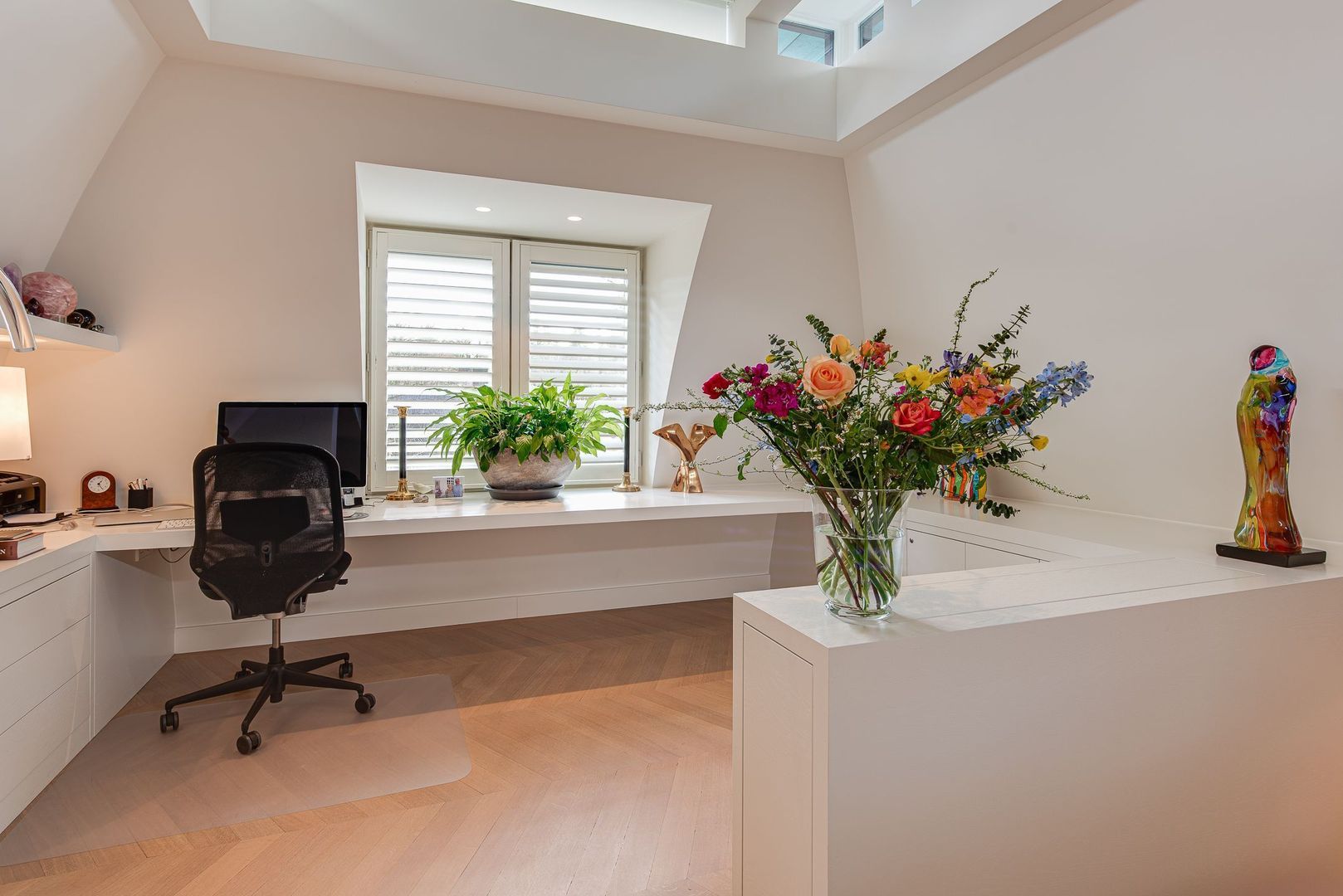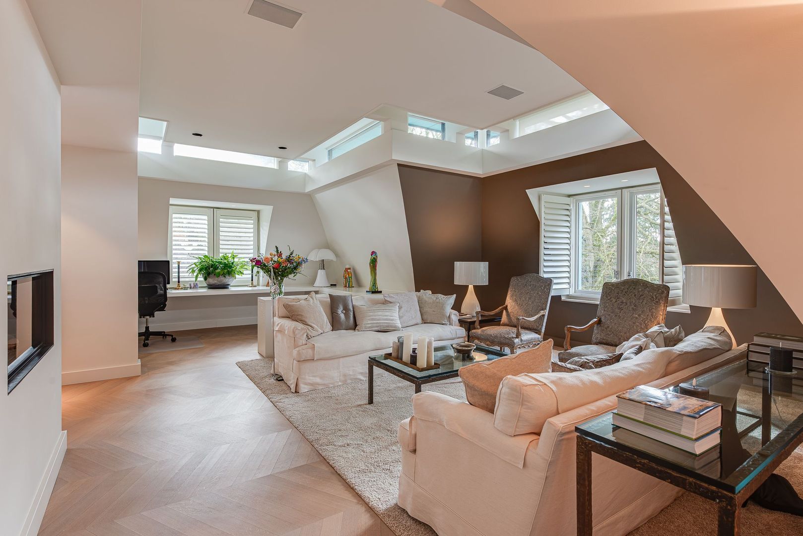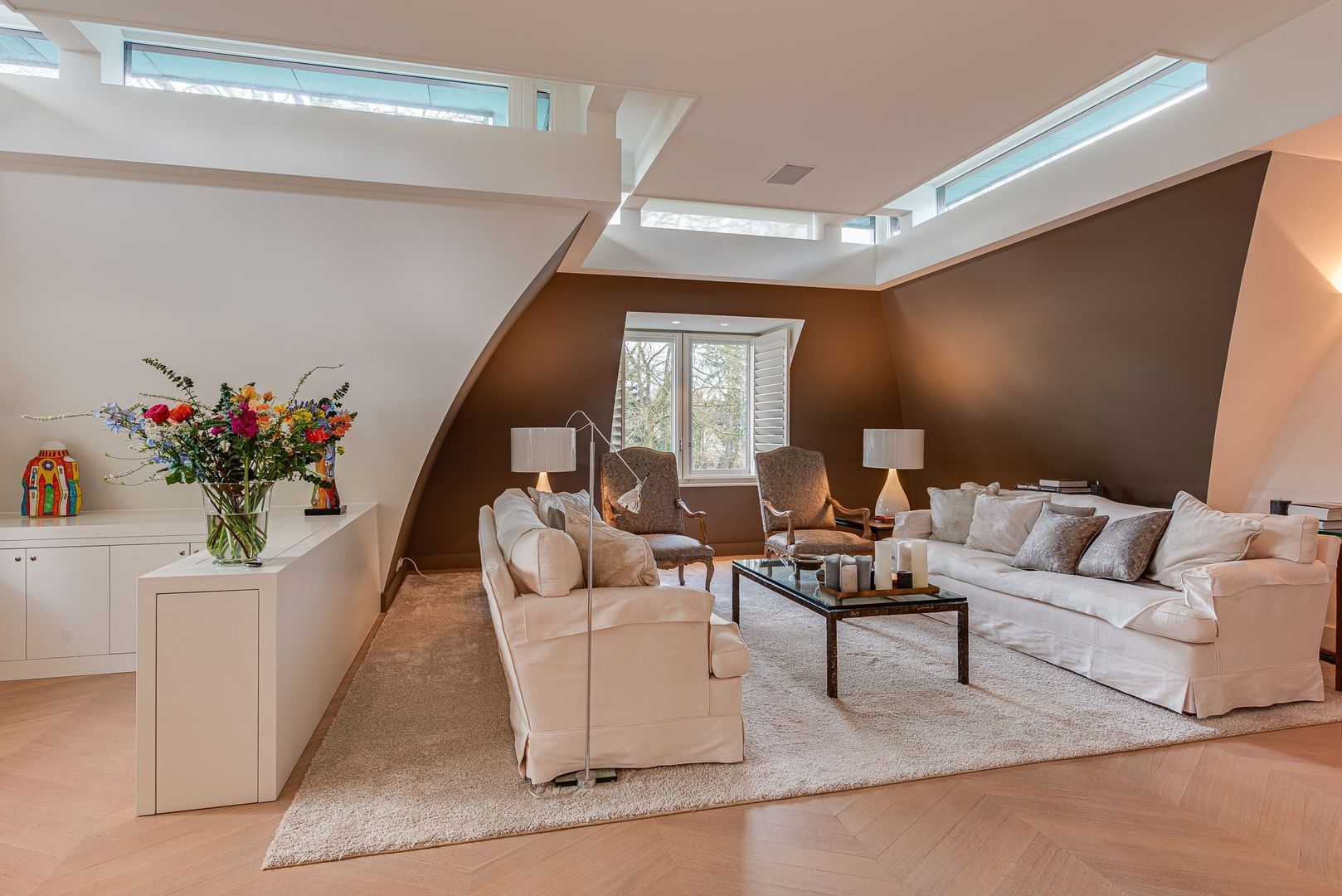 Bij binnenkomst valt direct de rondom doorlopende raamstrook op, net onder plafondniveau, die zorgt voor een prachtige lichtinval en een bijzondere sfeer. De royale daglichttoetreding versterkt het gevoel van ruimte. De afwerking is van uitzonderlijk hoog niveau, met fraaie eiken- en marmeren vloeren, voorzien van vloerverwarming. Verder beschikt het penthouse over een uitgebreid domoticasysteem, airconditioning, een geavanceerde beveiligingsinstallatie en uitstekende geluidsisolatie dankzij ankerloze spouwmuren en zwevende dekvloeren.