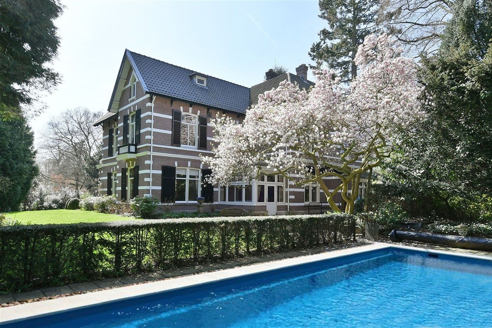 Karakteristieke, zeer royale villa ''De Buitenrijp" met een door veel groen omzoomde, vrije tuin, verwarmd, zelfreinigend zwembad (11,5 x 4,75 m), automatische sproei-installatie met eigen bron, dubbele carport, tuinschuurtje, prieel en op afstand bedienbare inrijpoort met intercom. Fraai gelegen op 2.273 m² eigen grond op gewilde locatie in het als Rijksbeschermd Dorpsgezicht aangewezen Prins Hendrikpark dat grenst aan de Baarnse wandelbossen. Deze bijzondere villa ademt de sfeer van een stijlvol "Engels landhuis" door onder meer een zeer ruime, imposante, centrale "hall" met sfeervolle zitruimte rond de openhaard, eiken trappenhuis v.v. bordessen, bibliotheek met halfronde erker, meerdere open haarden met schouw, klassieke, eiken parketvloeren en fraai bewerkte, authentieke plafonds. De villa biedt 530 m² woonoppervlak en behoort met een inhoud van 2.280 m³ tot de grotere villa's in Baarn. Bouwjaar 1889, uitgebreid in 1924. Een echt familiehuis maar ook zeker geschikt om stijlvol wonen en werken te combineren! Wij informeren u graag over de mogelijkheden.