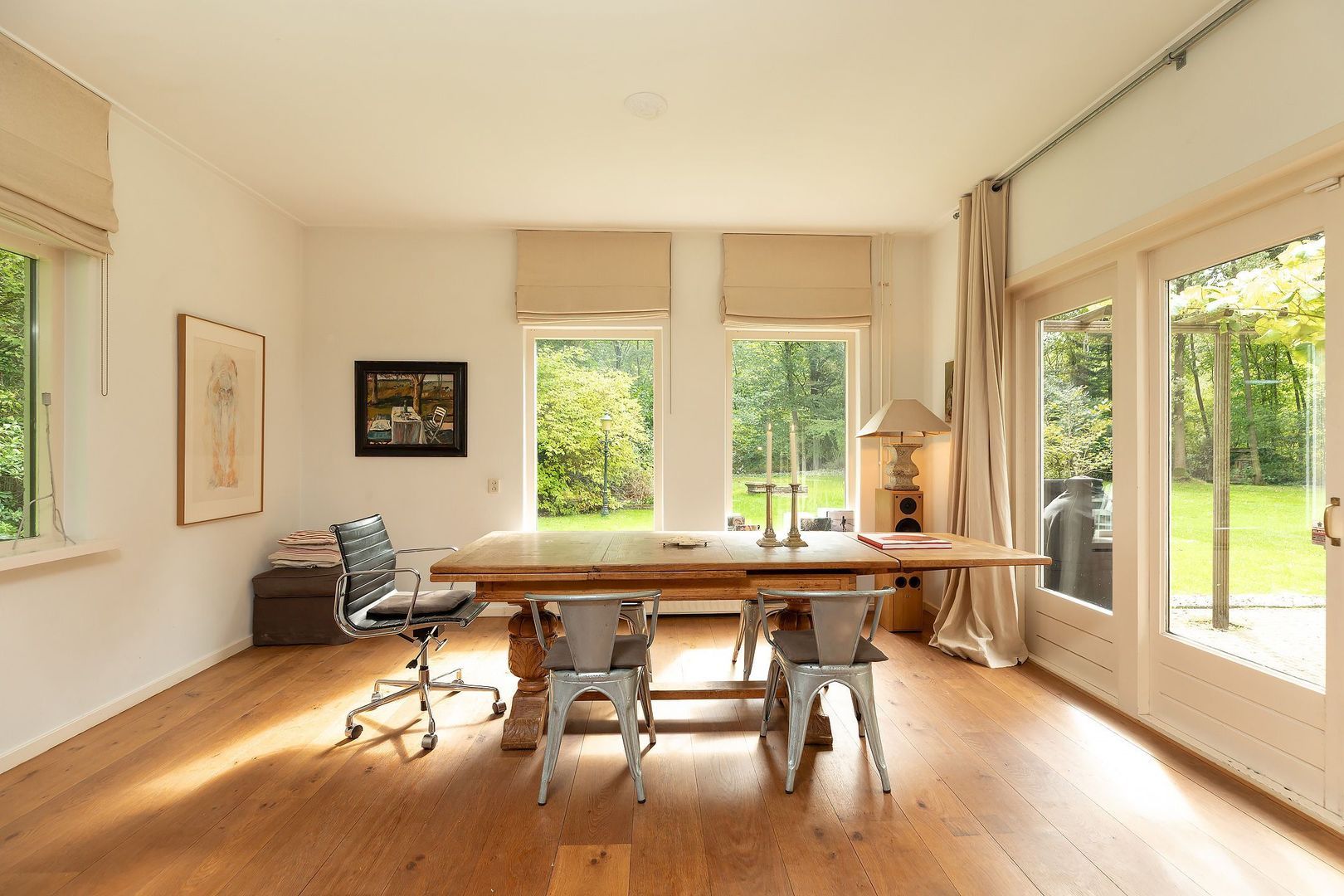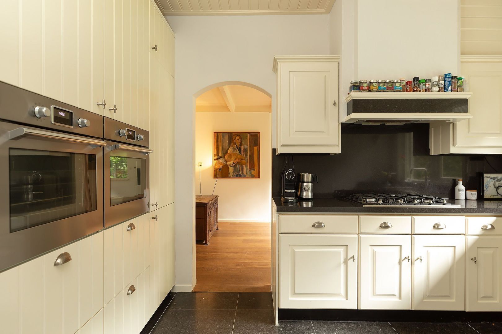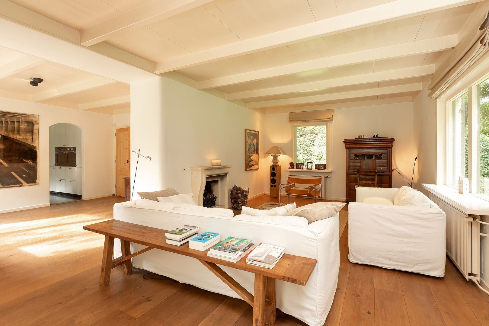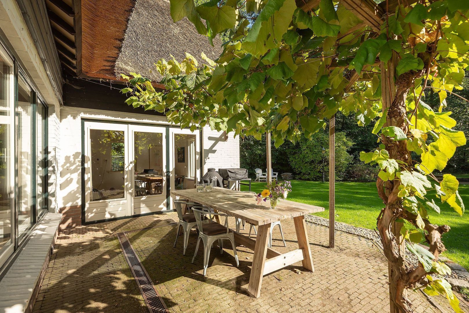 Uniek gelegen, direct grenzend aan de uitgestrekte bossen rondom Kasteel Groeneveld: stijlvolle, rietgedekte villa op een perceel van 2.387 m². Een van die zeer schaarse locaties waar de goede bereikbaarheid van de Baarnse voorzieningen, uitvalswegen en NS-station samengaan met de privacy en ruimte van “wonen in de natuur”. De provinciale weg ligt weliswaar op zo'n 50/60 meter afstand maar is bij tijd en wijle hoorbaar in de tuin, niet in de woning. Na de door de Provincie m.i.v. 2027 geplande aanpassing van de maximale snelheid van 80 naar 60 km/uur, zal het geluid van weg zeker afnemen. Ook de toenemende overgang naar elektrische auto’s werkt daarbij in het voordeel.