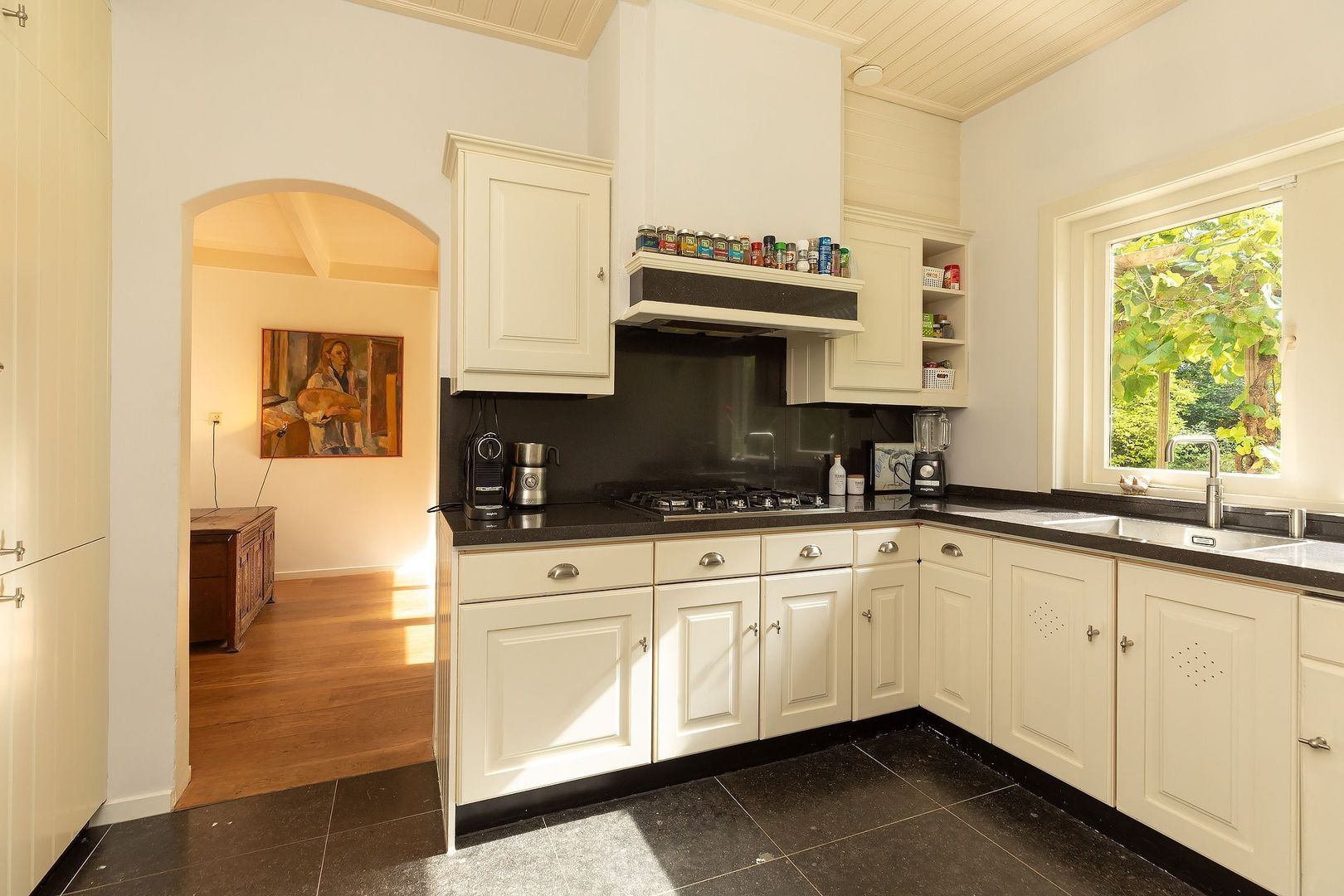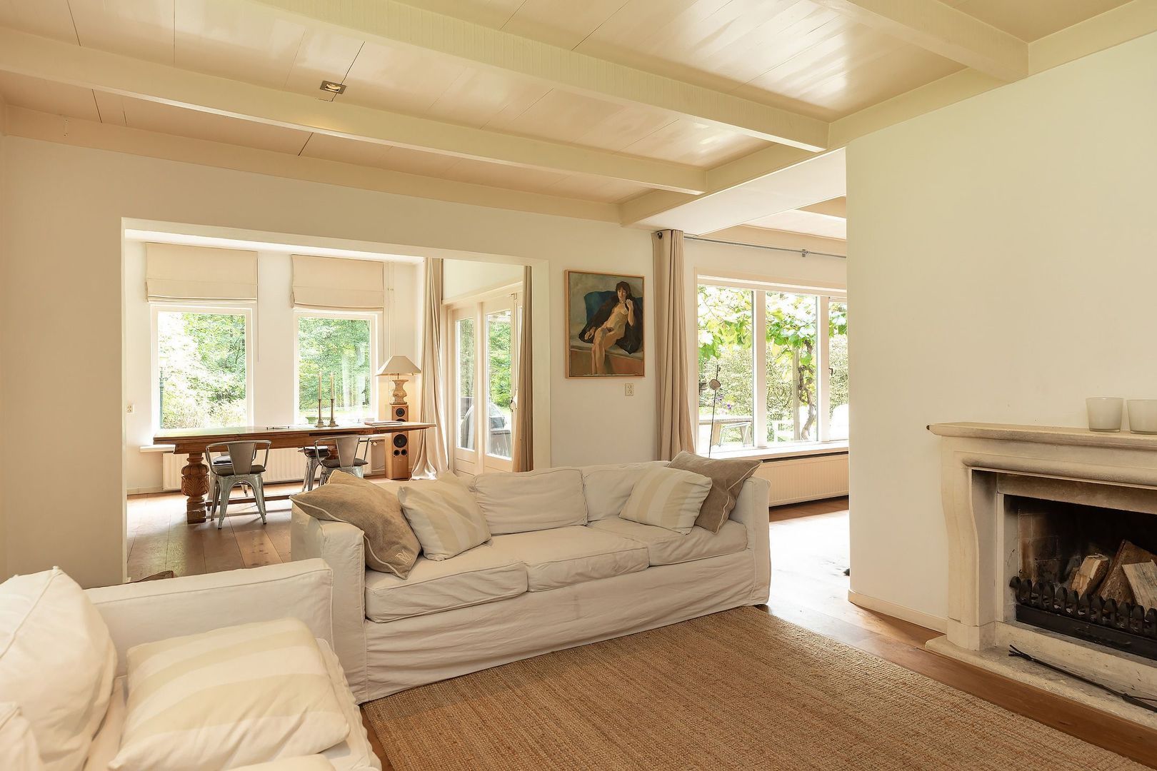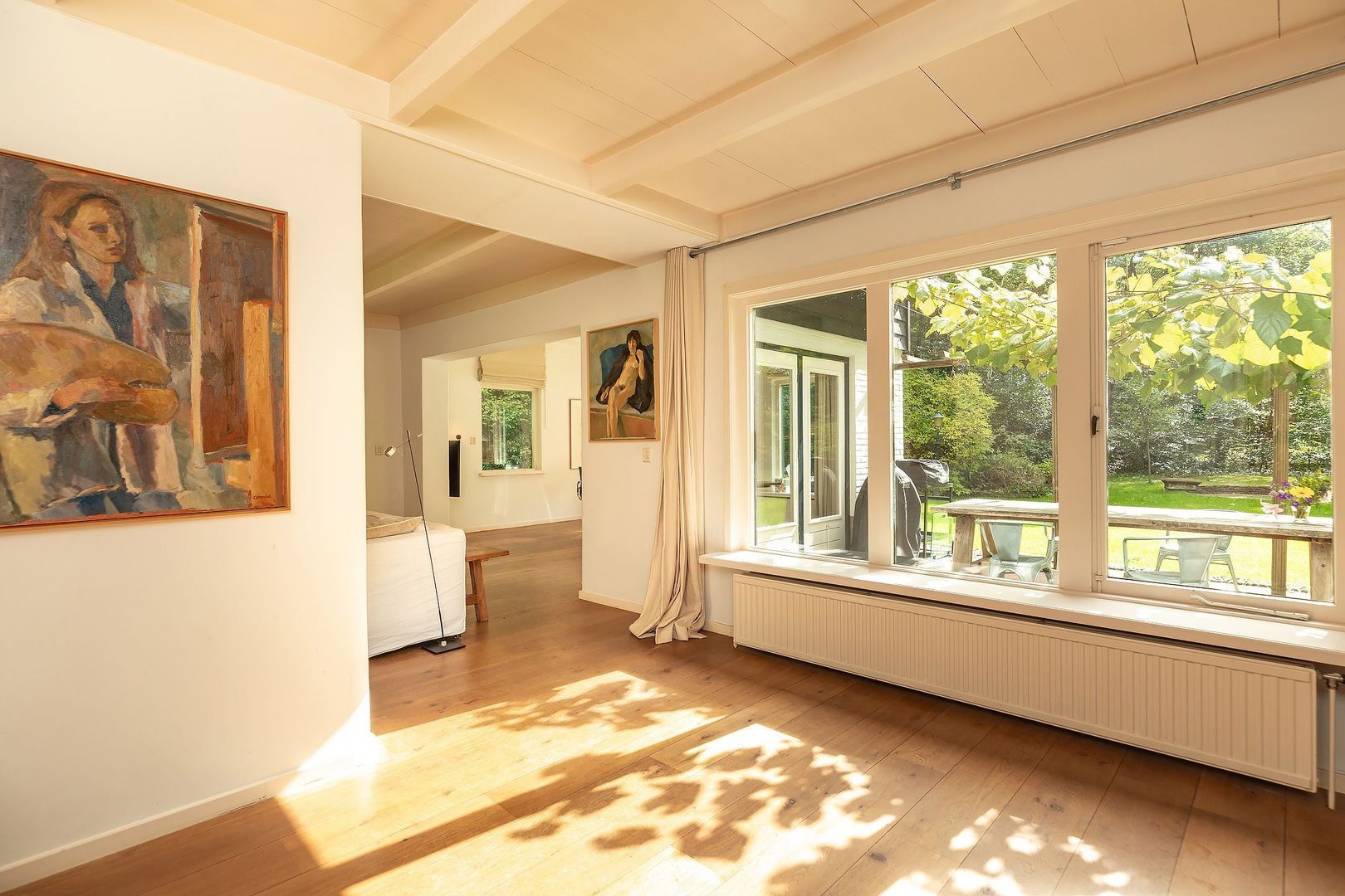 Uniek gelegen, direct grenzend aan de uitgestrekte bossen rondom Kasteel Groeneveld: stijlvolle, rietgedekte villa op een perceel van 2.387 m². Een van die zeer schaarse locaties waar de goede bereikbaarheid van de Baarnse voorzieningen, uitvalswegen en NS-station samengaan met de privacy en ruimte van “wonen in de natuur”. De provinciale weg ligt weliswaar op zo'n 50/60 meter afstand maar is bij tijd en wijle hoorbaar in de tuin, niet in de woning. Na de door de Provincie m.i.v. 2027 geplande aanpassing van de maximale snelheid van 80 naar 60 km/uur, zal het geluid van weg zeker afnemen. Ook de toenemende overgang naar elektrische auto’s werkt daarbij in het voordeel.