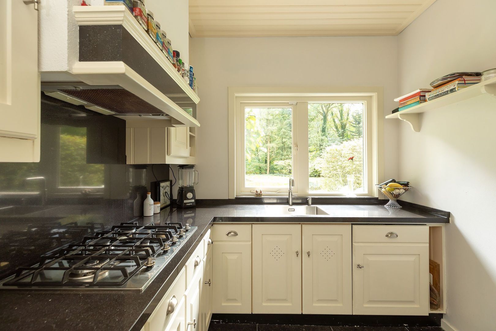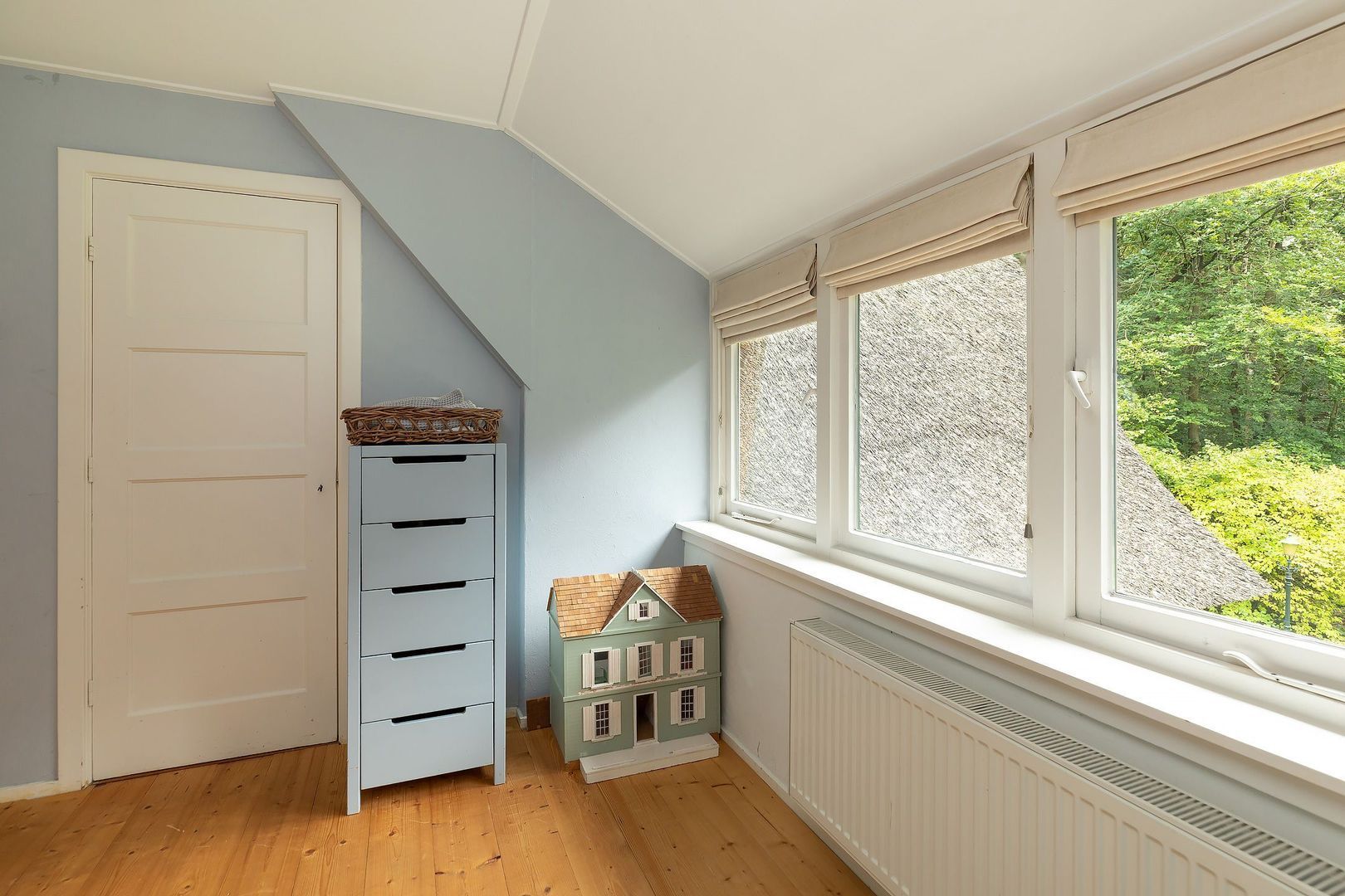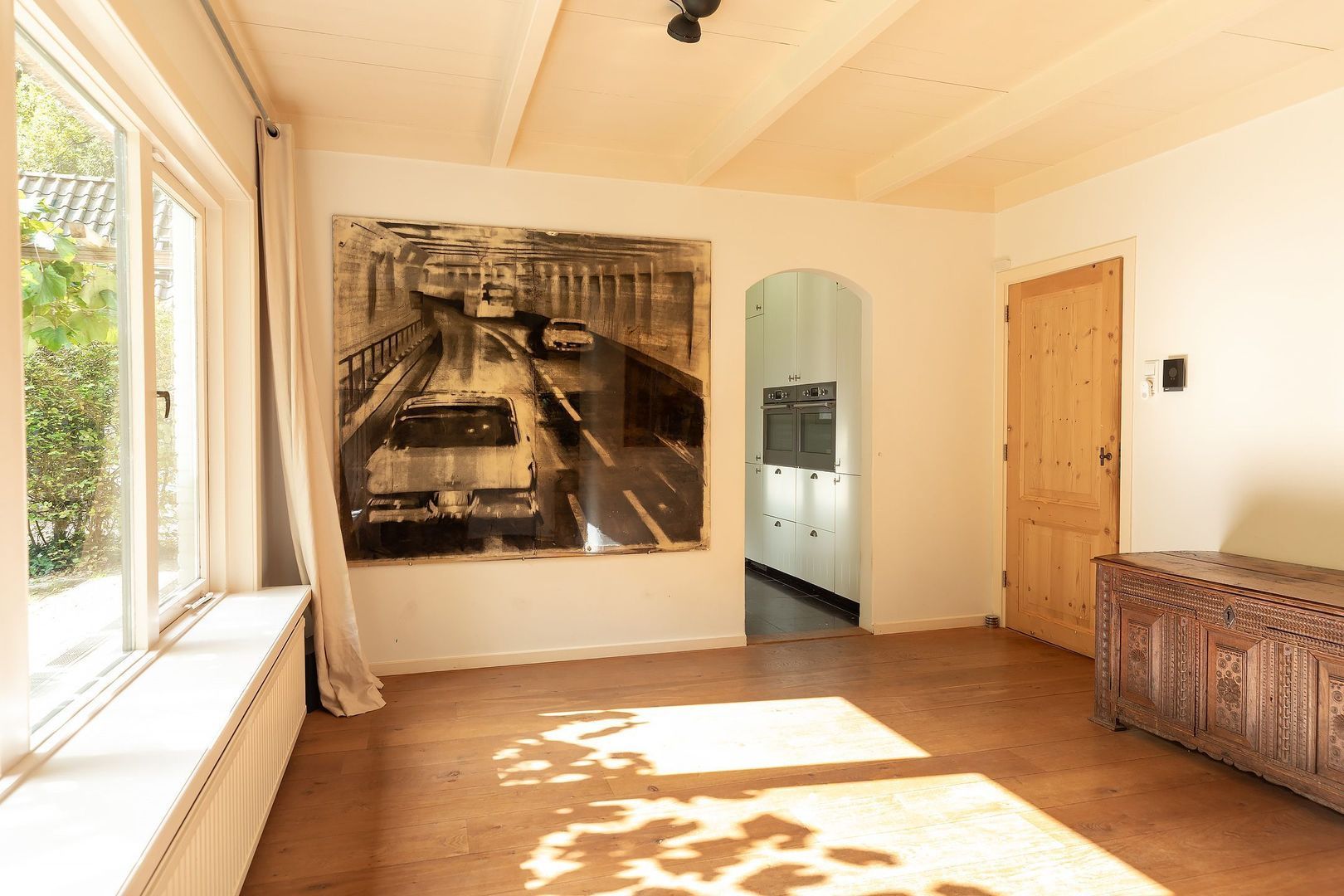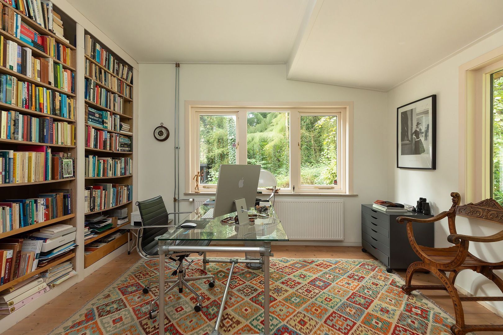 Uniek gelegen, direct grenzend aan de uitgestrekte bossen rondom Kasteel Groeneveld: stijlvolle, rietgedekte villa op een perceel van 2.387 m². Een van die zeer schaarse locaties waar de goede bereikbaarheid van de Baarnse voorzieningen, uitvalswegen en NS-station samengaan met de privacy en ruimte van “wonen in de natuur”. De provinciale weg ligt weliswaar op zo'n 50/60 meter afstand maar is bij tijd en wijle hoorbaar in de tuin, niet in de woning. Na de door de Provincie m.i.v. 2027 geplande aanpassing van de maximale snelheid van 80 naar 60 km/uur, zal het geluid van weg zeker afnemen. Ook de toenemende overgang naar elektrische auto’s werkt daarbij in het voordeel.