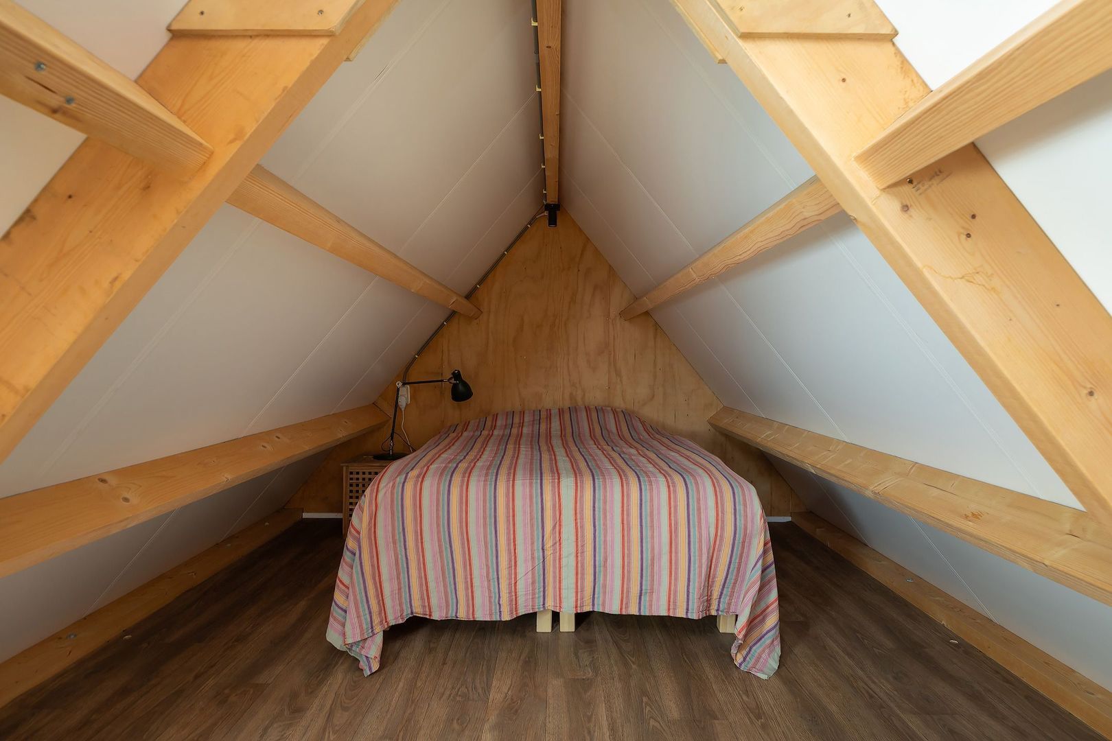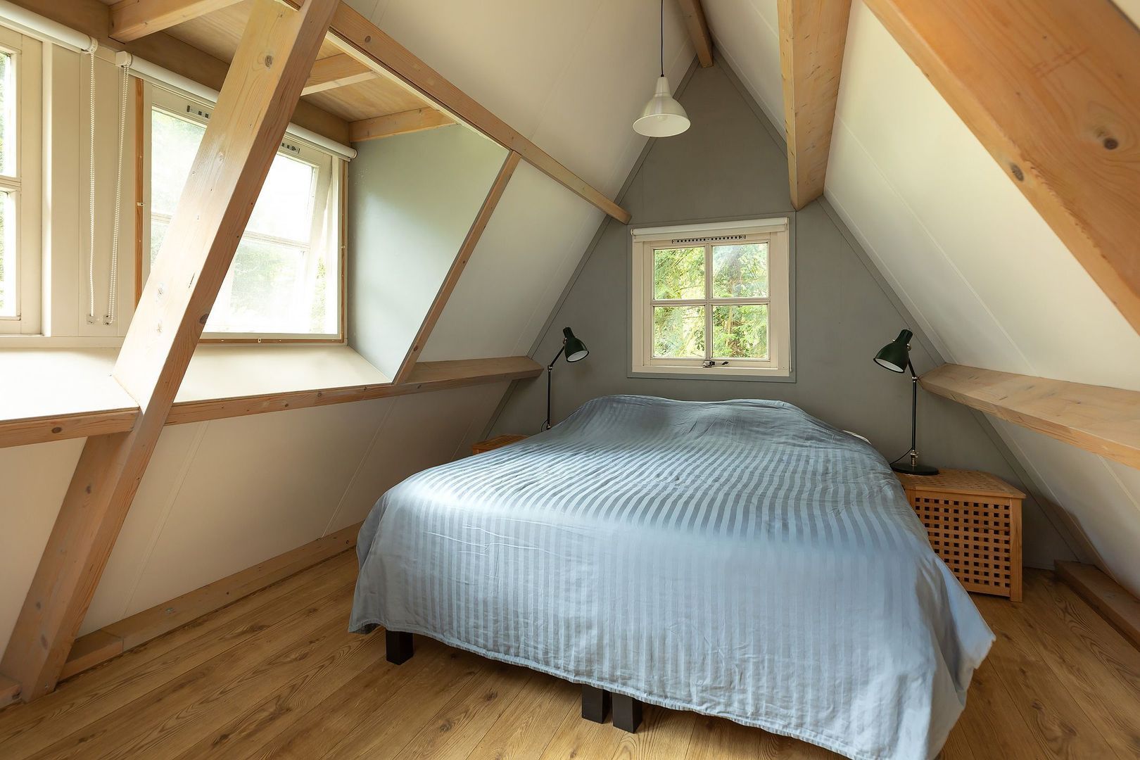 Royale slaapkamer v.v. 3 raams-dakkapel en raam in de gevel, grote zolder op stahoogte met dakraam.