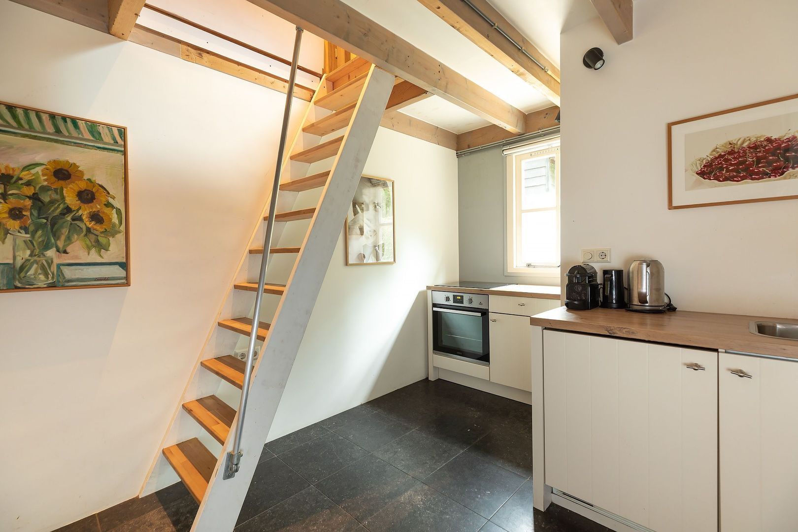 Entree, ruime woonkamer met openslaande deuren naar terras en tuin, keuken, badkamer v.v. douche, wastafel en wandcloset. Buitendeur naar inpandige berging en grote buitenkast. Het bijgebouw heeft een eigen meterkast.