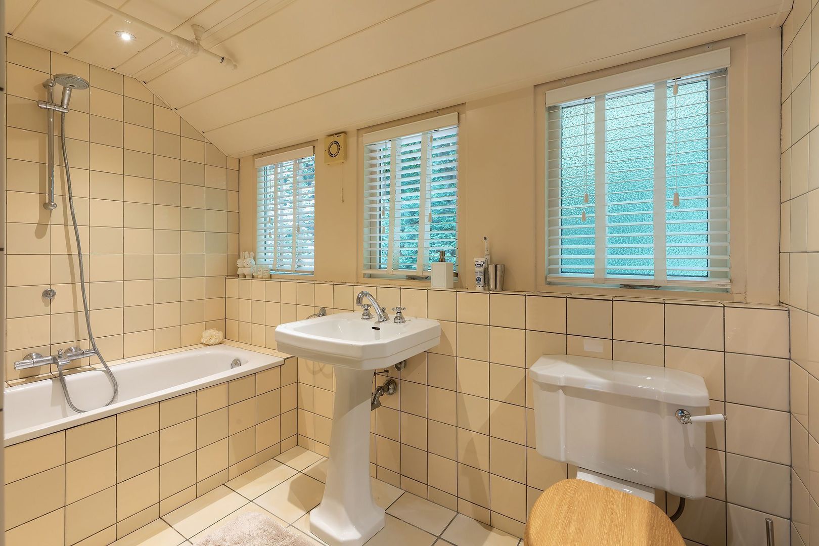 Ruime overloop, badkamer v.v. ligbad, wastafel en toilet, 2 grote en 2 kleinere slaapkamers (gekoppeld via doorgang) en kleedkamer. Vaste kasten in (2 van) de slaapkamers en de kleedkamer.