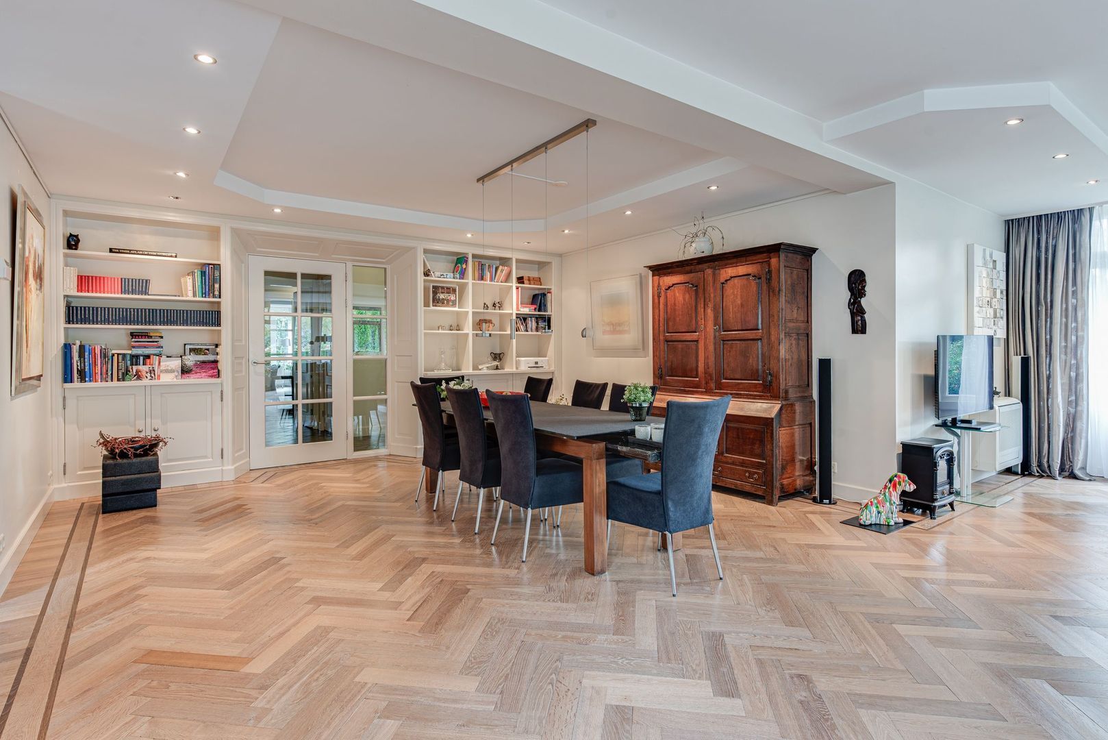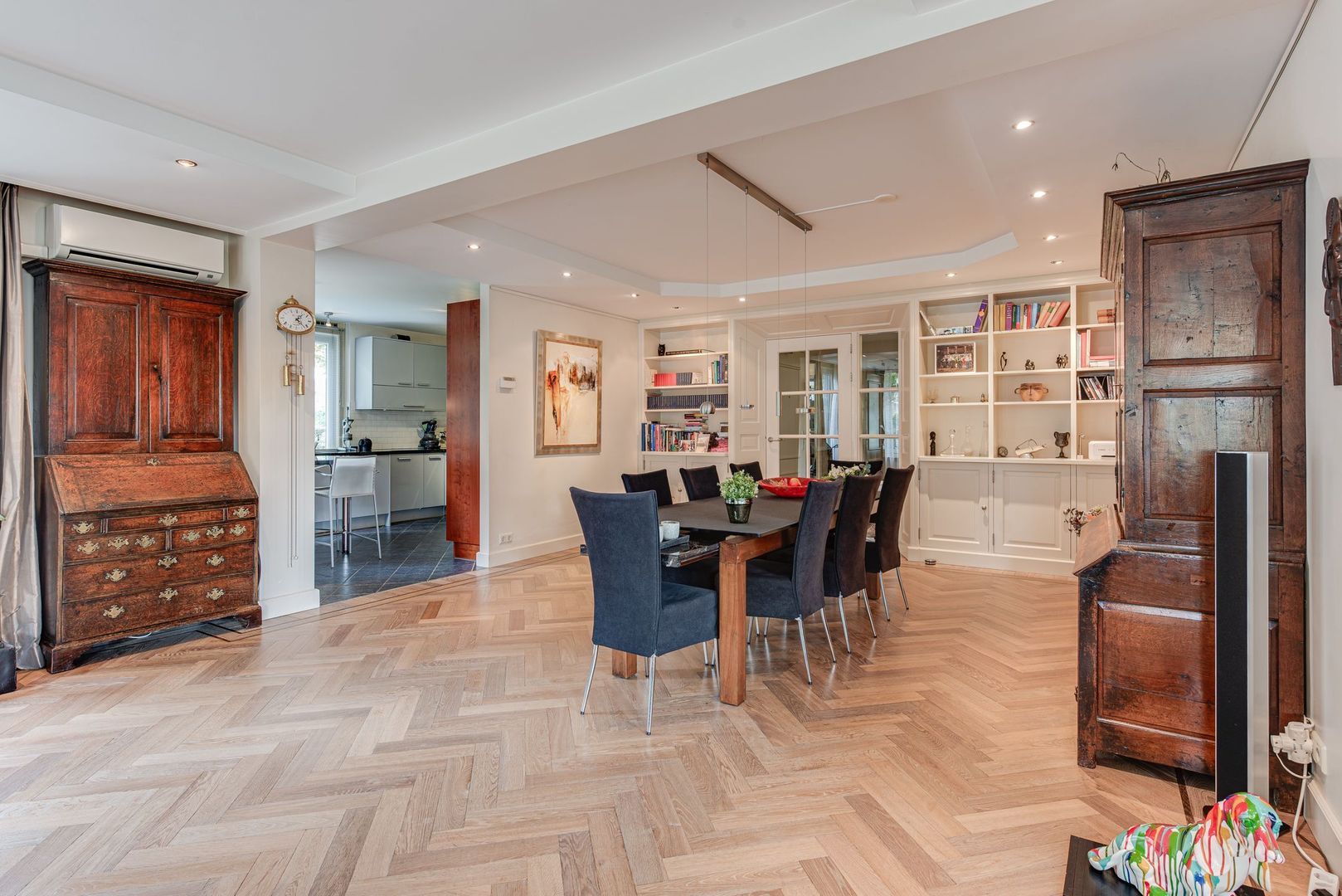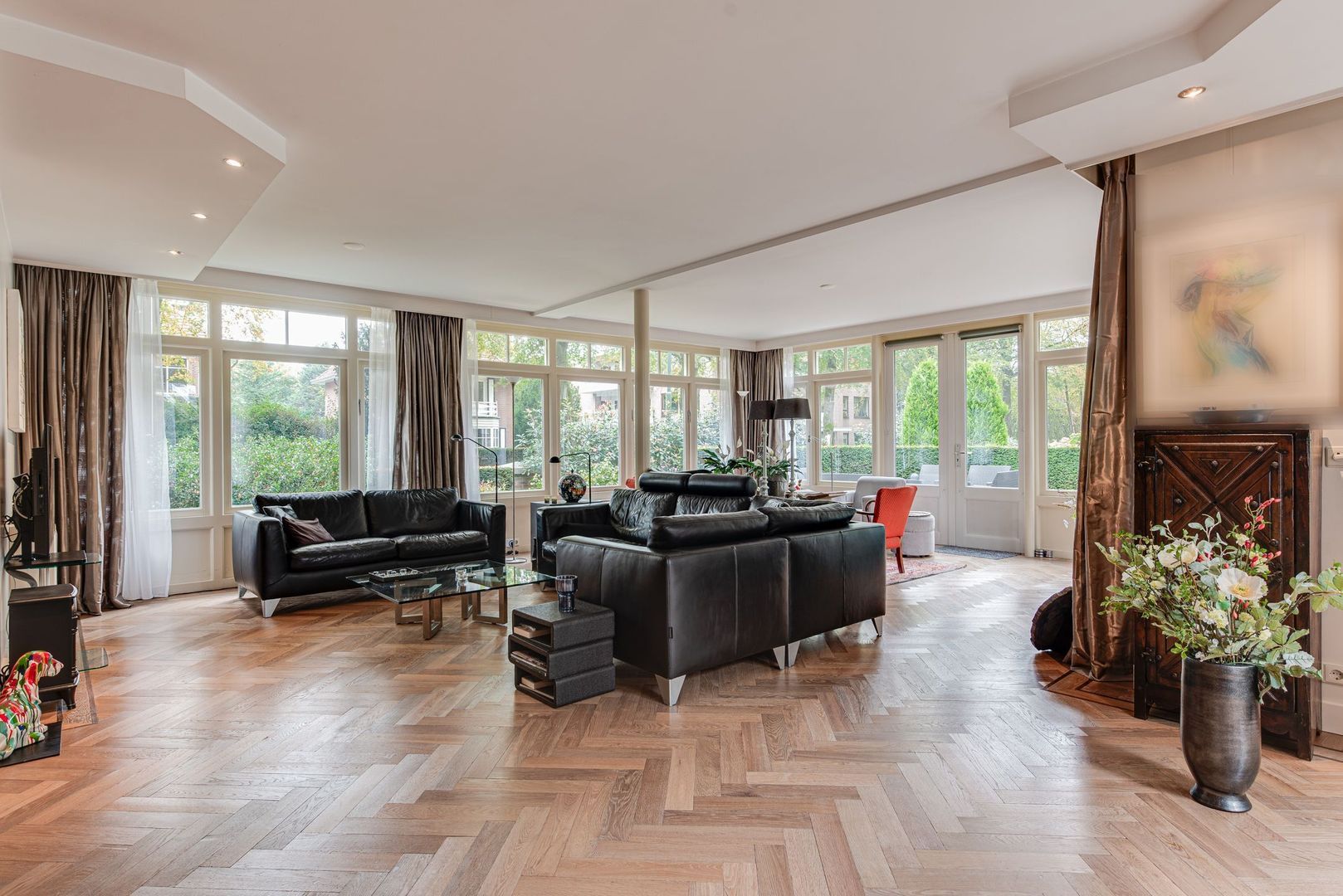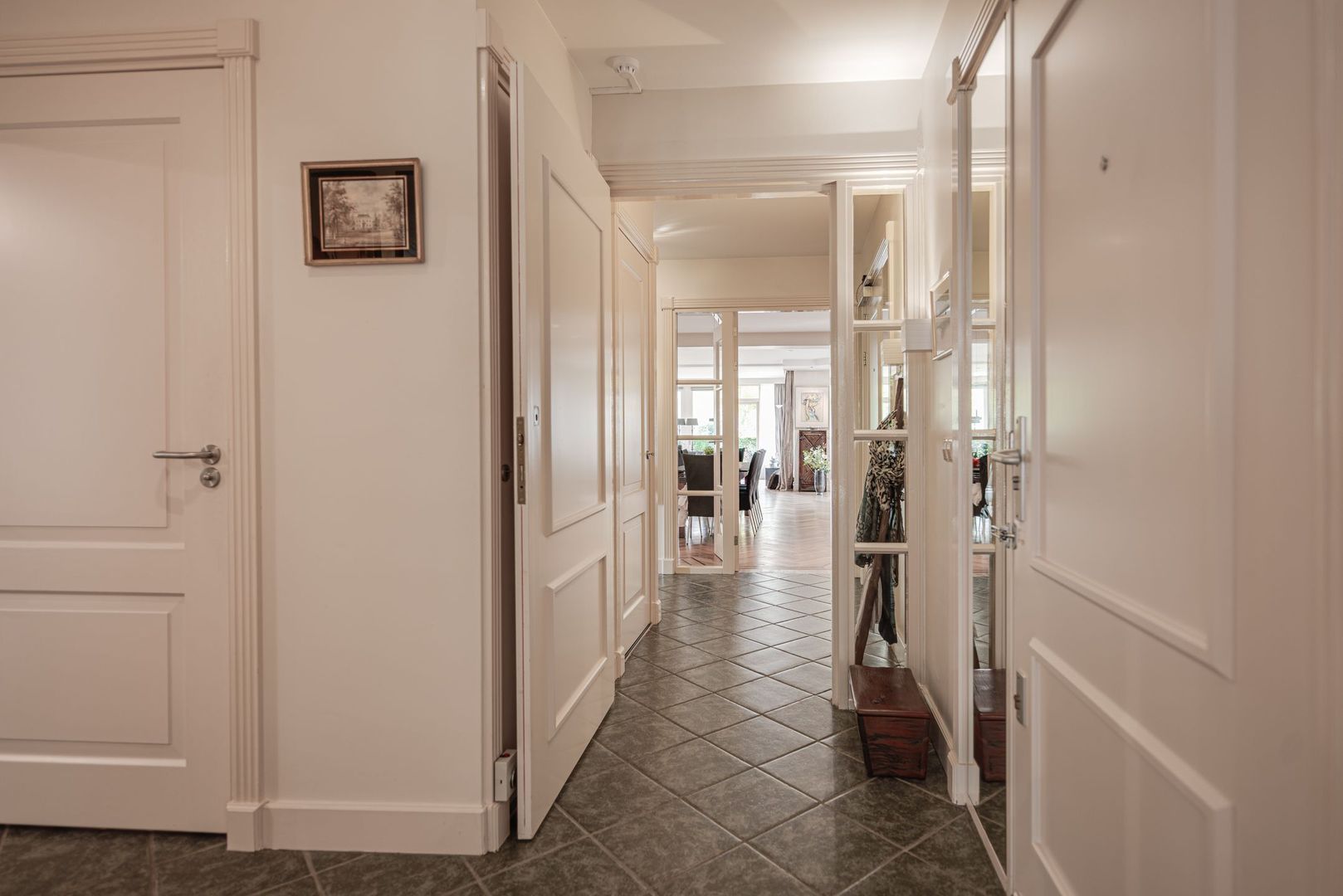 Dubbele entree, ruime hal met videofoon (2024), m.k., garderobekast, modern toilet met wandcloset en fontein, royale Z-vormige woon-/eetkamer v.v. massief eiken parket (visgraat met bies en band), openslaande deuren naar ZW-terras en rondom licht en zicht, fraaie, gedeeltelijk open kastenwand, stucplafond met mooi geïntegreerde verlichting en airconditioning en met 2 stel openslaande deuren naar ZW-terras, moderne keuken met plavuizen vloer v.v. vloerverwarming v.v. keukenzit met natuurstenen tafelblad in druppelvorm, natuurstenen aanrechtblad en complete inbouwapparatuur; 90 cm brede 5-pits kookplaat, afzuigschouw, oven/magnetron/grill, 2e oven/grill met stoom- en magnetron functie, vaatwasser, Quooker, CV-ruimte met opstelling gas CV-combiketel, HR 2021, 2 ruime slaapkamers met (schuif)kastenwand (waarvan 1 v.v. airconditioning), 2 moderne badkamers v.v. dubbel wastafelmeubel, dubbele spiegelkast, wandcloset, douche met vlakke inloop en designradiator, 2e woonkamer v.v. massief eiken parket (visgraat met bies en band), ook hier met gedeeltelijk open kastenwand met 2 stel openslaande deuren naar ochtend- en avondterras, studeerkamer met separate berging voor 2e CV-ruimte met 2e CV-Combiketel, HR 2004 en opstelling wasmachine en droger. Deze ruime kamer is voorbereid met het leidingwerk voor een 2e keuken.