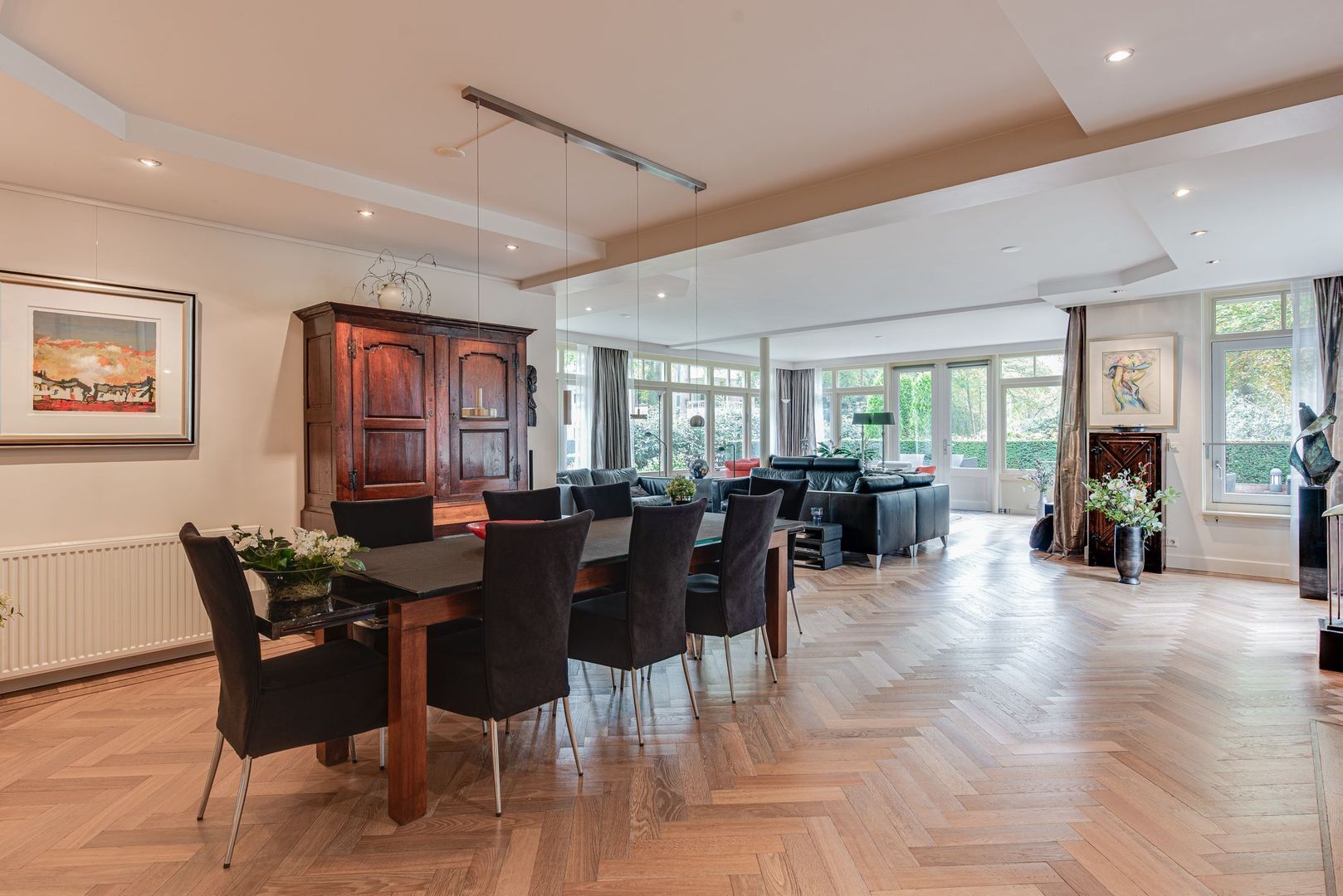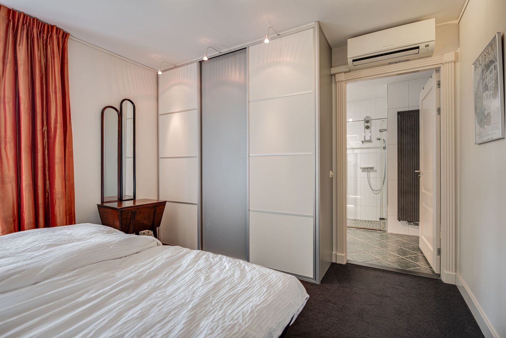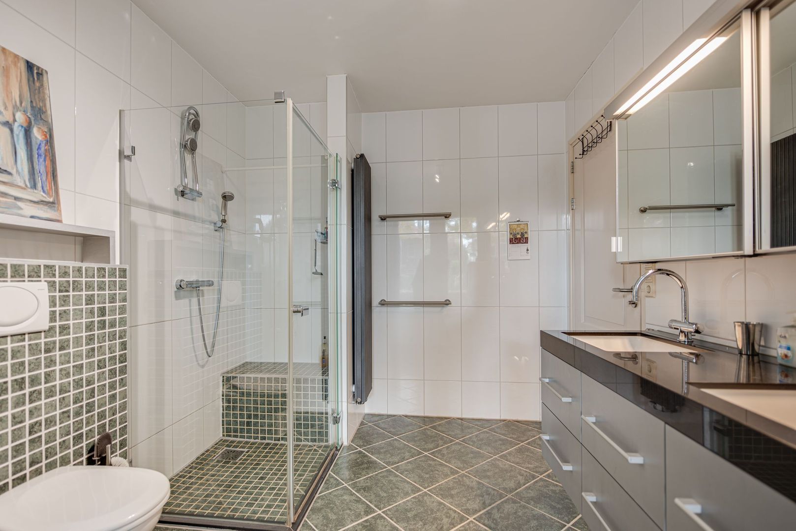Dubbele entree, ruime hal met videofoon (2024), m.k., garderobekast, modern toilet met wandcloset en fontein, royale Z-vormige woon-/eetkamer v.v. massief eiken parket (visgraat met bies en band), openslaande deuren naar ZW-terras en rondom licht en zicht, fraaie, gedeeltelijk open kastenwand, stucplafond met mooi geïntegreerde verlichting en airconditioning en met 2 stel openslaande deuren naar ZW-terras, moderne keuken met plavuizen vloer v.v. vloerverwarming v.v. keukenzit met natuurstenen tafelblad in druppelvorm, natuurstenen aanrechtblad en complete inbouwapparatuur; 90 cm brede 5-pits kookplaat, afzuigschouw, oven/magnetron/grill, 2e oven/grill met stoom- en magnetron functie, vaatwasser, Quooker, CV-ruimte met opstelling gas CV-combiketel, HR 2021, 2 ruime slaapkamers met (schuif)kastenwand (waarvan 1 v.v. airconditioning), 2 moderne badkamers v.v. dubbel wastafelmeubel, dubbele spiegelkast, wandcloset, douche met vlakke inloop en designradiator, 2e woonkamer v.v. massief eiken parket (visgraat met bies en band), ook hier met gedeeltelijk open kastenwand met 2 stel openslaande deuren naar ochtend- en avondterras, studeerkamer met separate berging voor 2e CV-ruimte met 2e CV-Combiketel, HR 2004 en opstelling wasmachine en droger. Deze ruime kamer is voorbereid met het leidingwerk voor een 2e keuken.