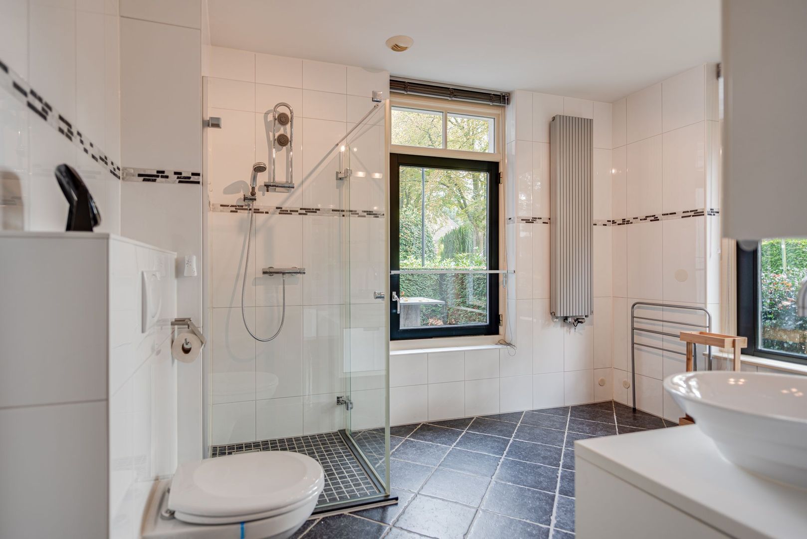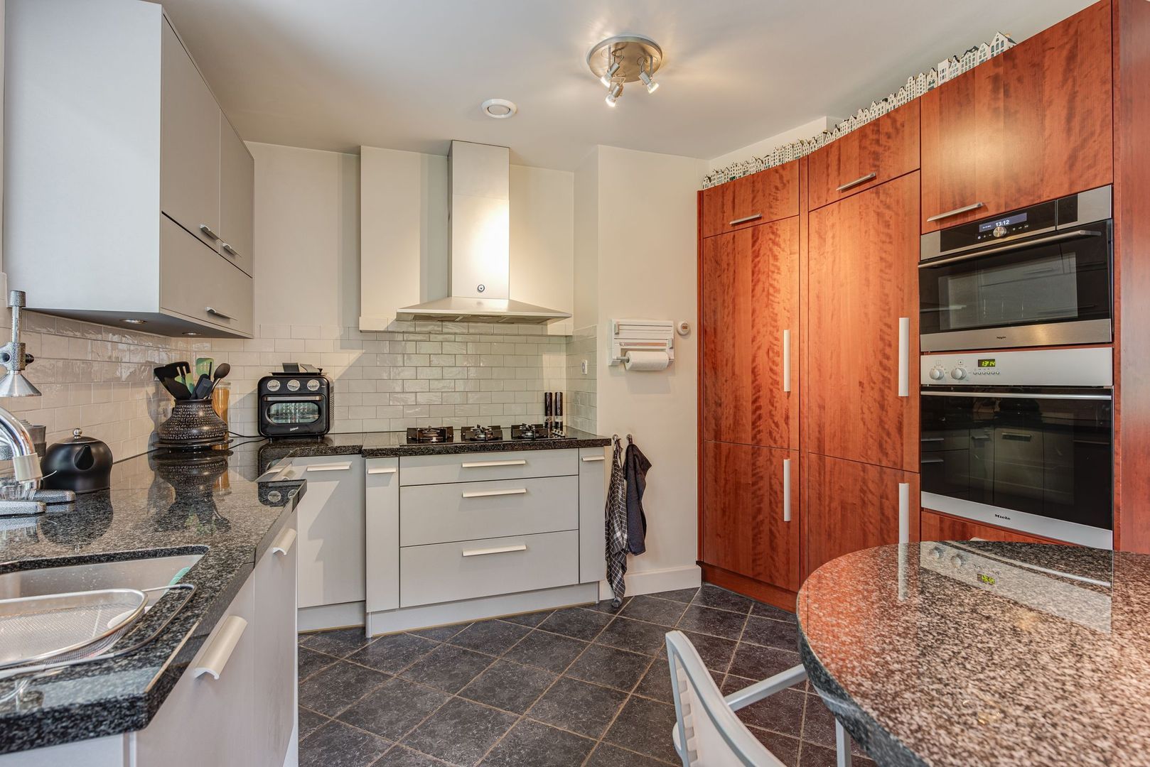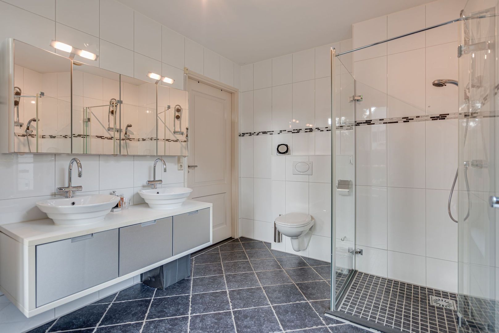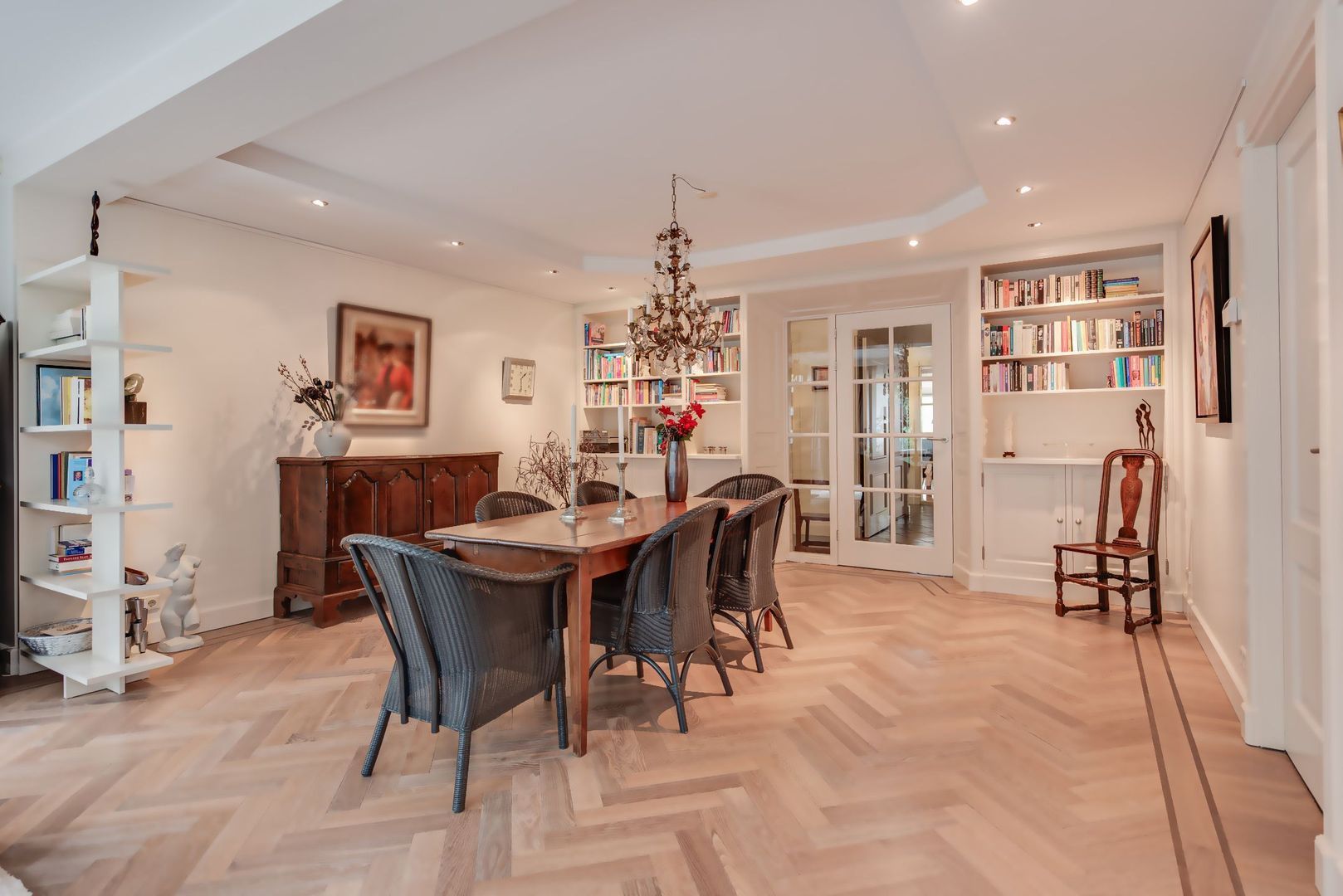 Dubbele entree, ruime hal met videofoon (2024), m.k., garderobekast, modern toilet met wandcloset en fontein, royale Z-vormige woon-/eetkamer v.v. massief eiken parket (visgraat met bies en band), openslaande deuren naar ZW-terras en rondom licht en zicht, fraaie, gedeeltelijk open kastenwand, stucplafond met mooi geïntegreerde verlichting en airconditioning en met 2 stel openslaande deuren naar ZW-terras, moderne keuken met plavuizen vloer v.v. vloerverwarming v.v. keukenzit met natuurstenen tafelblad in druppelvorm, natuurstenen aanrechtblad en complete inbouwapparatuur; 90 cm brede 5-pits kookplaat, afzuigschouw, oven/magnetron/grill, 2e oven/grill met stoom- en magnetron functie, vaatwasser, Quooker, CV-ruimte met opstelling gas CV-combiketel, HR 2021, 2 ruime slaapkamers met (schuif)kastenwand (waarvan 1 v.v. airconditioning), 2 moderne badkamers v.v. dubbel wastafelmeubel, dubbele spiegelkast, wandcloset, douche met vlakke inloop en designradiator, 2e woonkamer v.v. massief eiken parket (visgraat met bies en band), ook hier met gedeeltelijk open kastenwand met 2 stel openslaande deuren naar ochtend- en avondterras, studeerkamer met separate berging voor 2e CV-ruimte met 2e CV-Combiketel, HR 2004 en opstelling wasmachine en droger. Deze ruime kamer is voorbereid met het leidingwerk voor een 2e keuken.