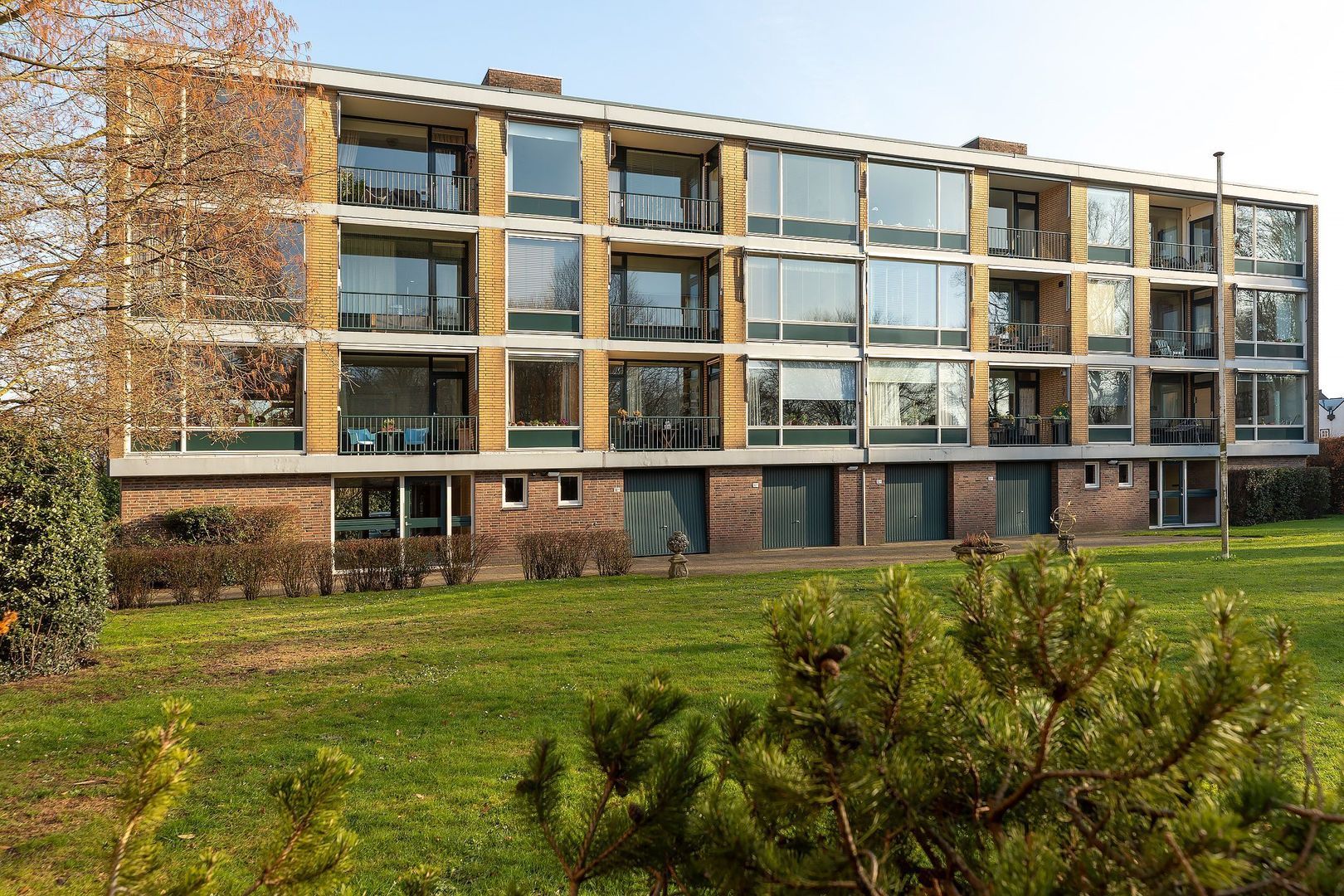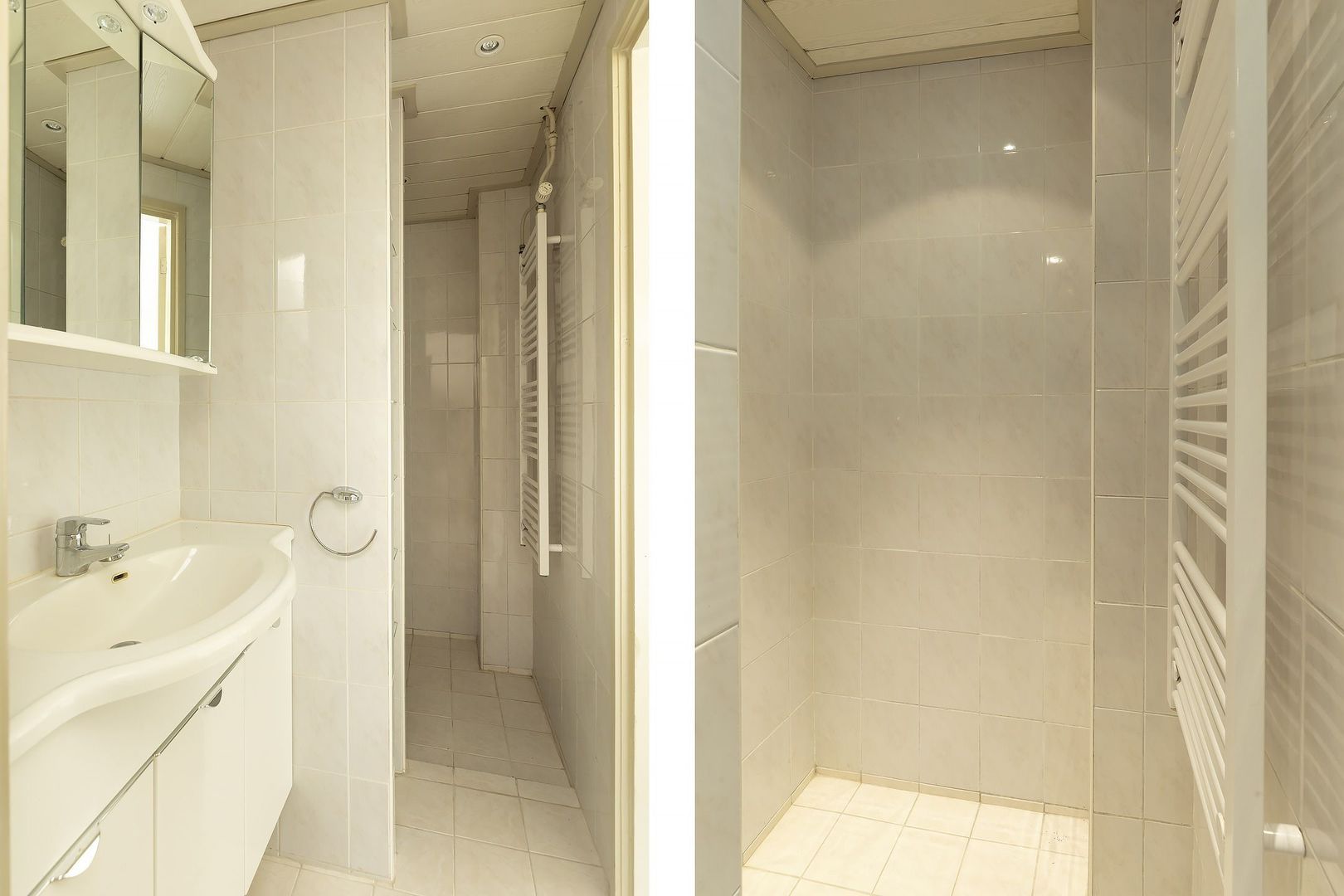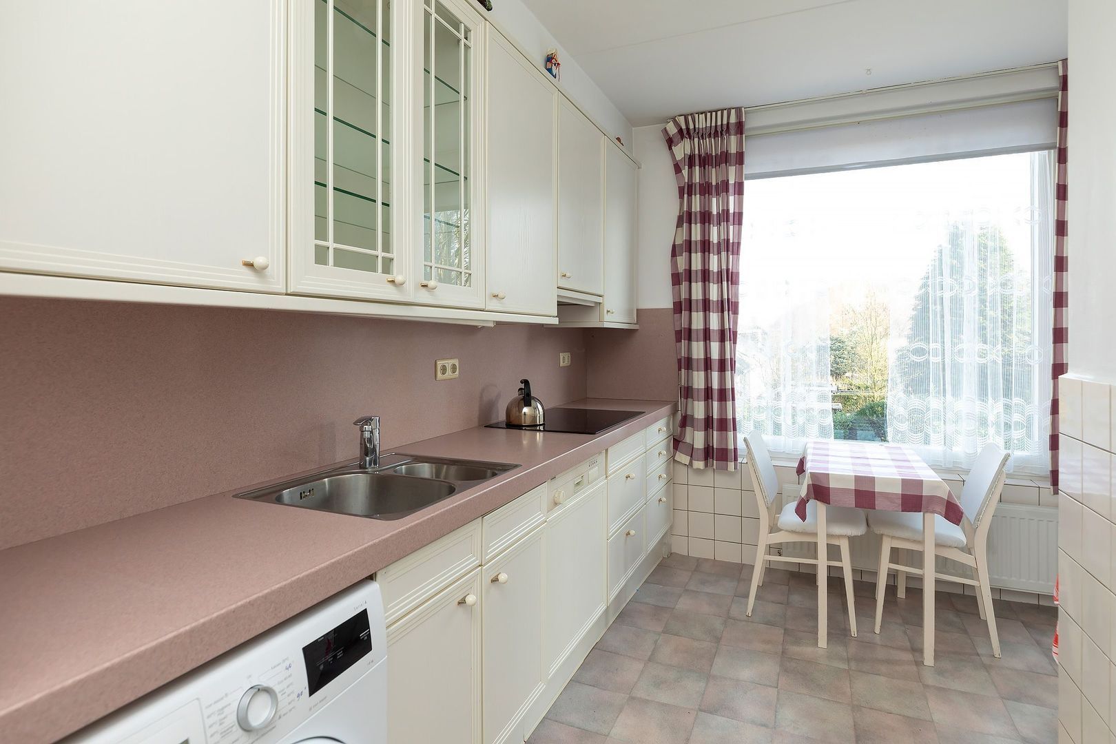 Entree, ruime hal met meterkast, cv-kast en toilet met fonteintje. Royale en lichte woonkamer met grote raampartijen en fraai uitzicht over het groen, met toegang tot het overdekte terras aan de westzijde, voorzien van zonnescherm. Nette keuken met inbouwapparatuur, waaronder inductiekookplaat, oven en vaatwasser, apothekerskast en een kast met aansluiting voor wasmachine, met deur naar het overdekte terras aan de oostzijde. Hoofdslaapkamer aan de achterzijde met eveneens toegang tot het oostelijk gelegen terras, voorzien van buitenkast en zonnescherm. Tweede slaapkamer of werkkamer aan de voorzijde. Badkamer met vlakke inloopdouche, wastafelmeubel, hangende wandkast en designradiator.