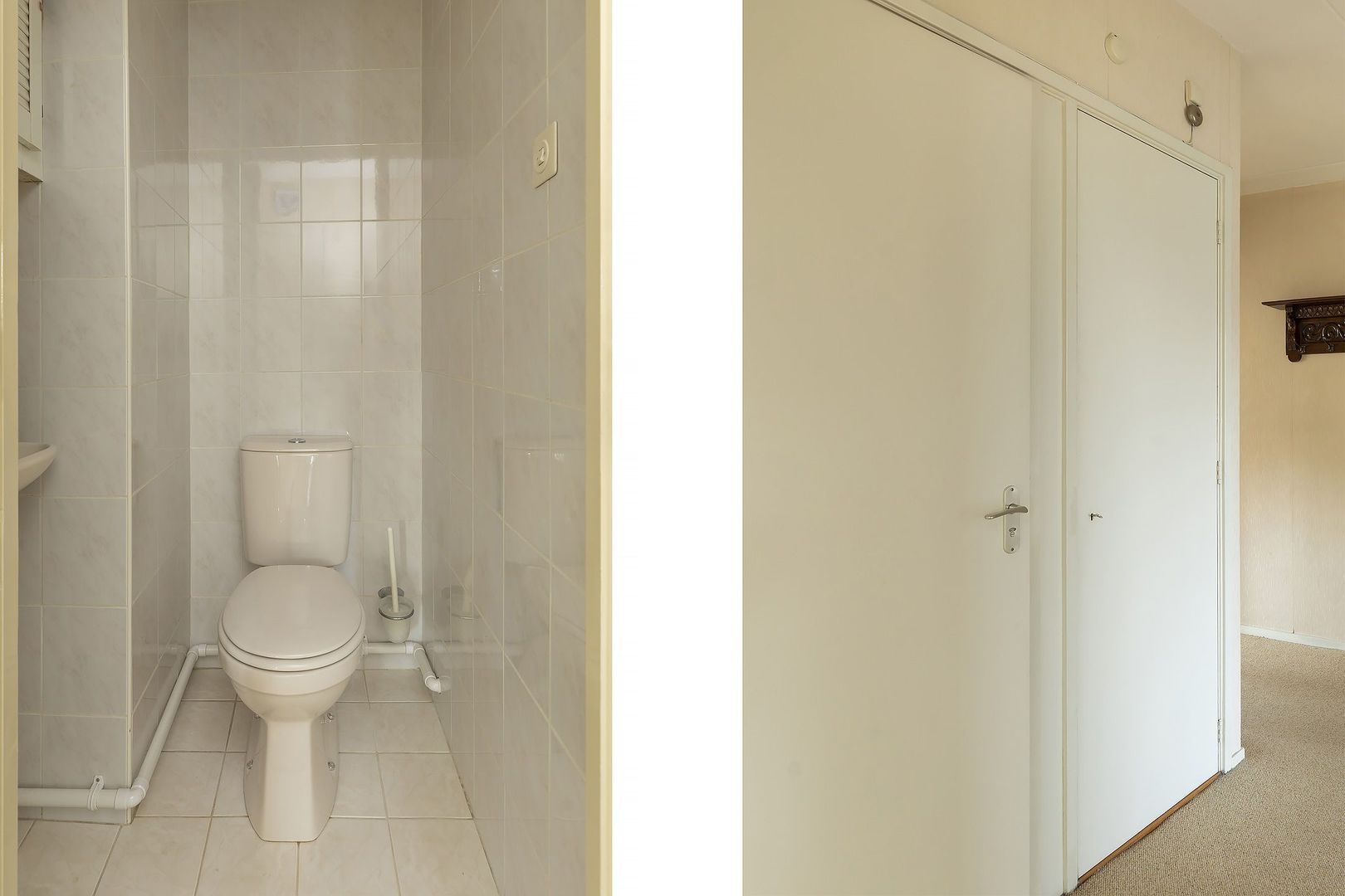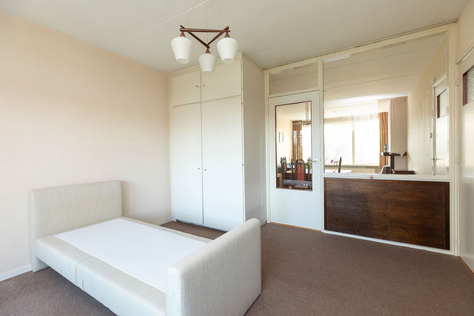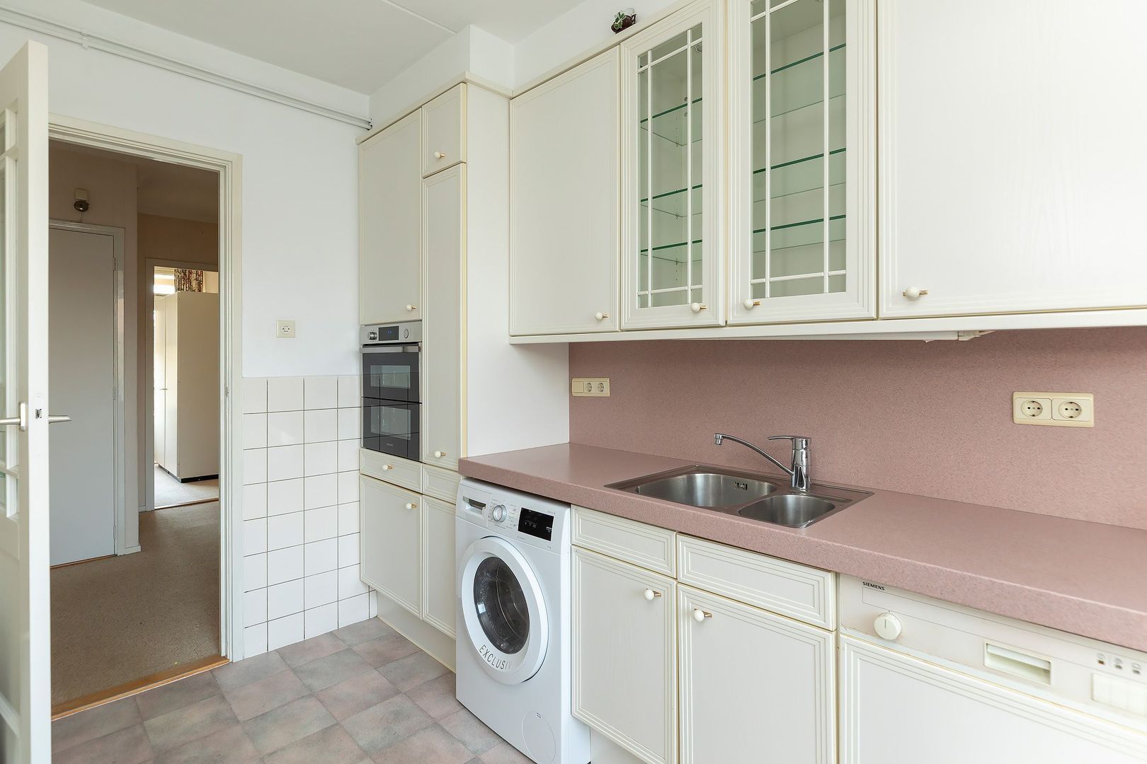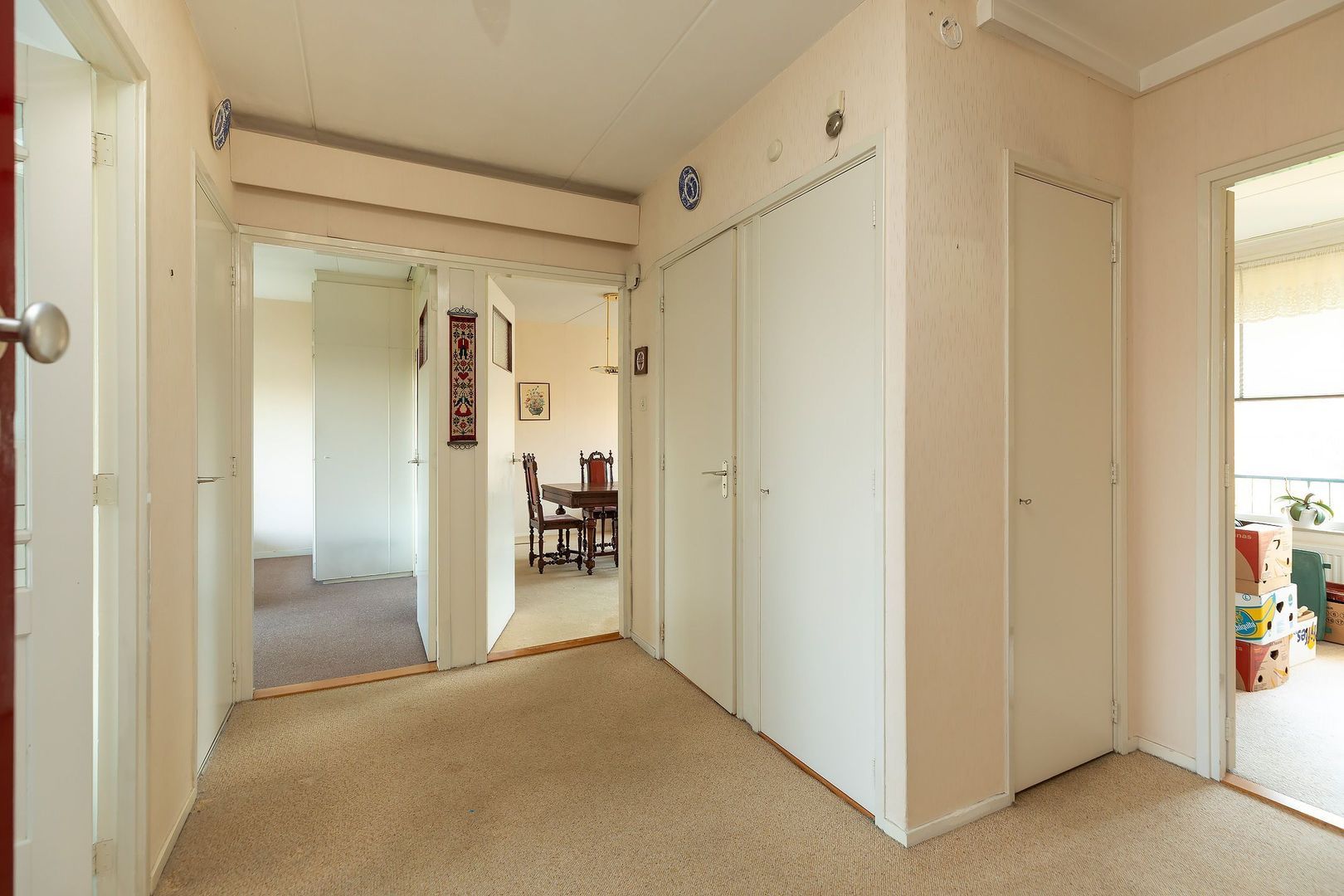 Entree, ruime hal met meterkast, cv-kast en toilet met fonteintje. Royale en lichte woonkamer met grote raampartijen en fraai uitzicht over het groen, met toegang tot het overdekte terras aan de westzijde, voorzien van zonnescherm. Nette keuken met inbouwapparatuur, waaronder inductiekookplaat, oven en vaatwasser, apothekerskast en een kast met aansluiting voor wasmachine, met deur naar het overdekte terras aan de oostzijde. Hoofdslaapkamer aan de achterzijde met eveneens toegang tot het oostelijk gelegen terras, voorzien van buitenkast en zonnescherm. Tweede slaapkamer of werkkamer aan de voorzijde. Badkamer met vlakke inloopdouche, wastafelmeubel, hangende wandkast en designradiator.